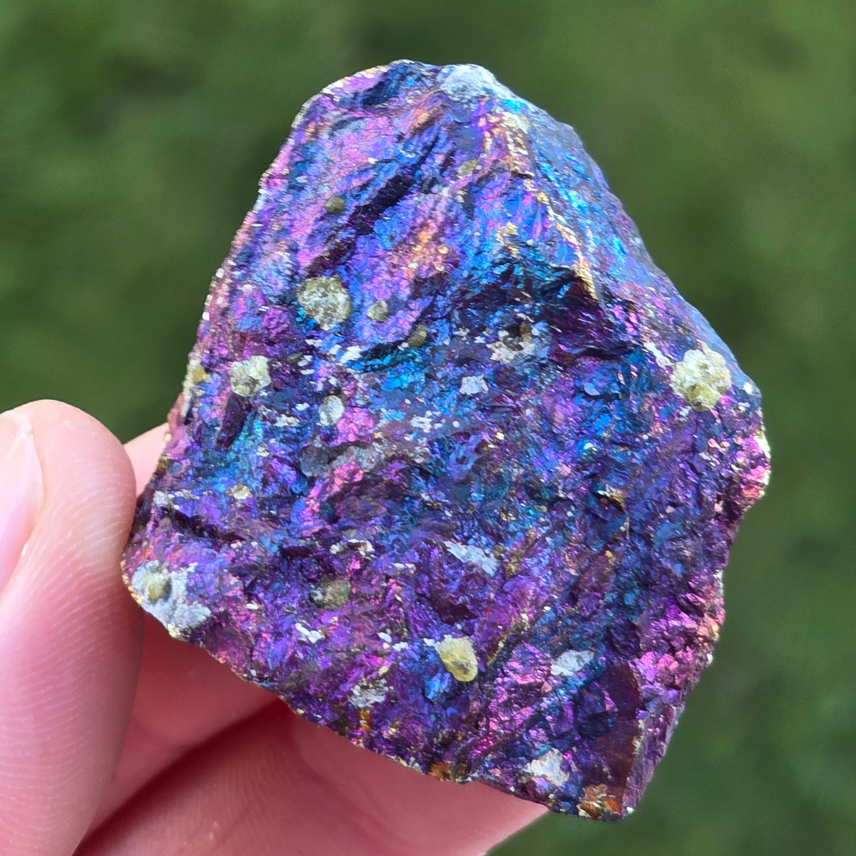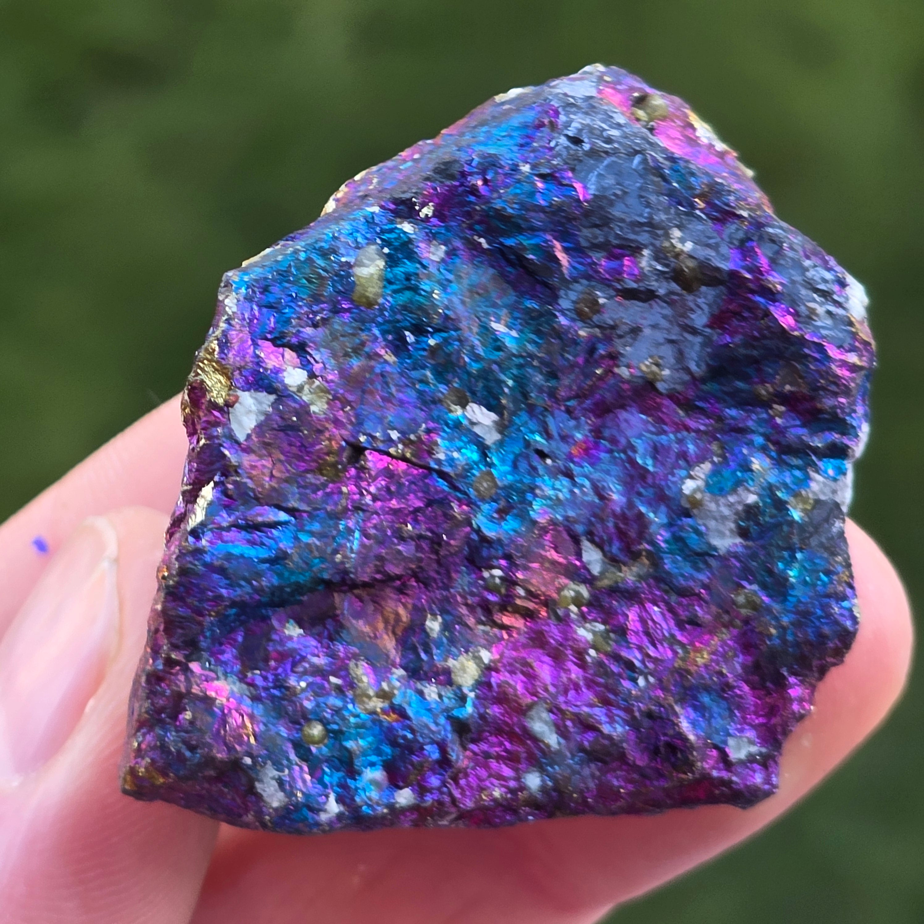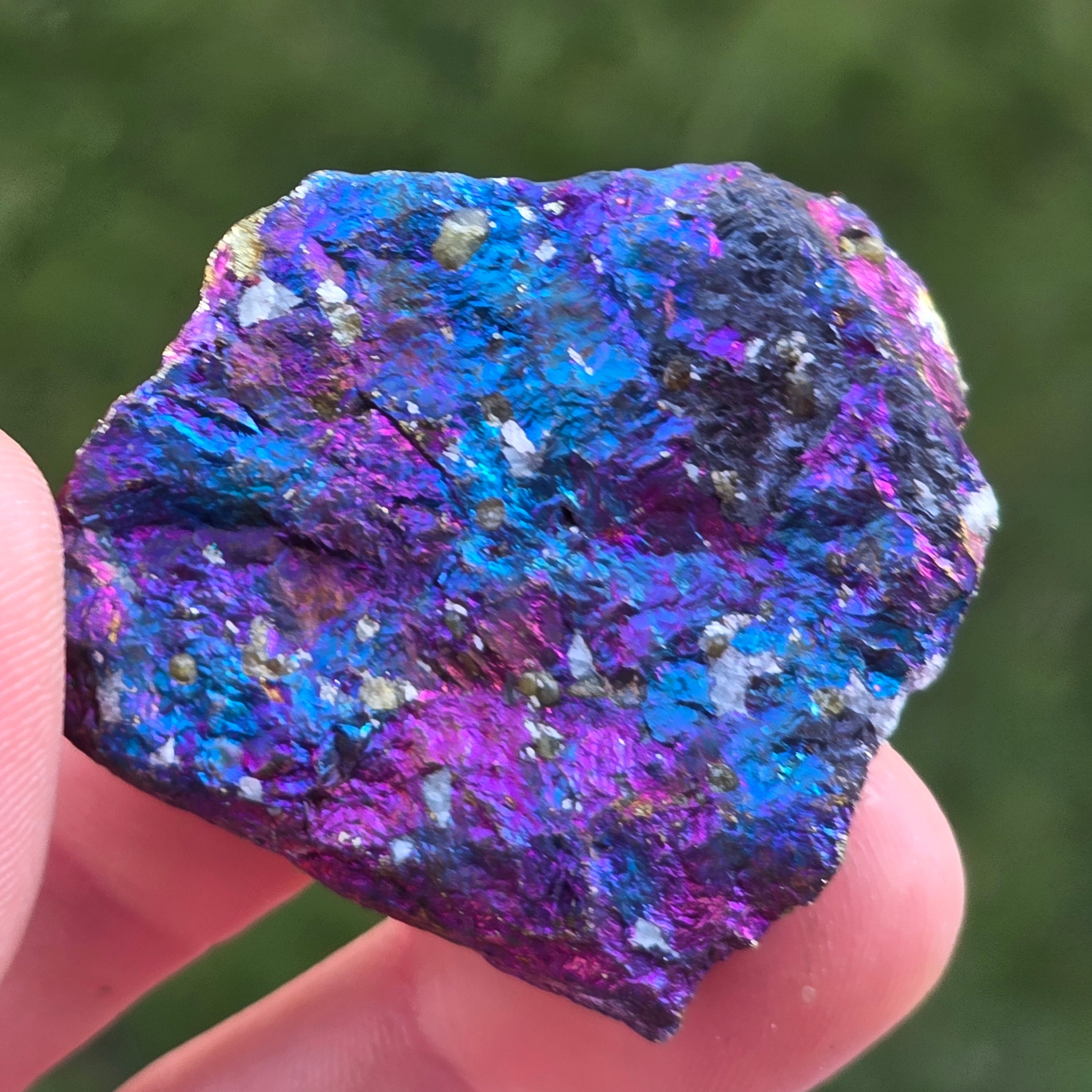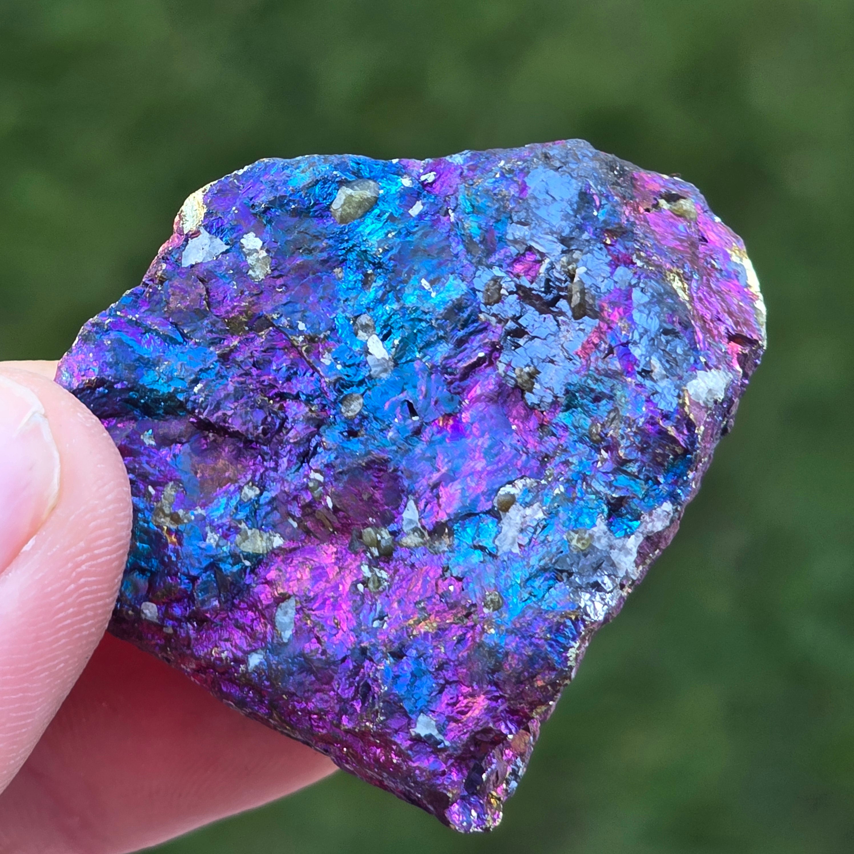 Ο μπλε χαλακοπυρίτης, γνωστός και ως ιριδίζων χαλακοπυρίτηςείναι ένας τύπος χαλακοπυρίτη που εμφανίζει λαμπερές αποχρώσεις του μπλε, μωβ, πράσινου ή άλλων ιριδιστευόντων χρωμάτων. Αυτή η ιριδισμός προκαλείται από μια λεπτή στρώση οξείδωσης στην επιφάνεια του ορυκτού, μια φυσική διαδικασία που συμβαίνει όταν ο χαλακοπυρίτης εκτίθεται στον αέρα και την υγρασία για μεγάλο χρονικό διάστημα.