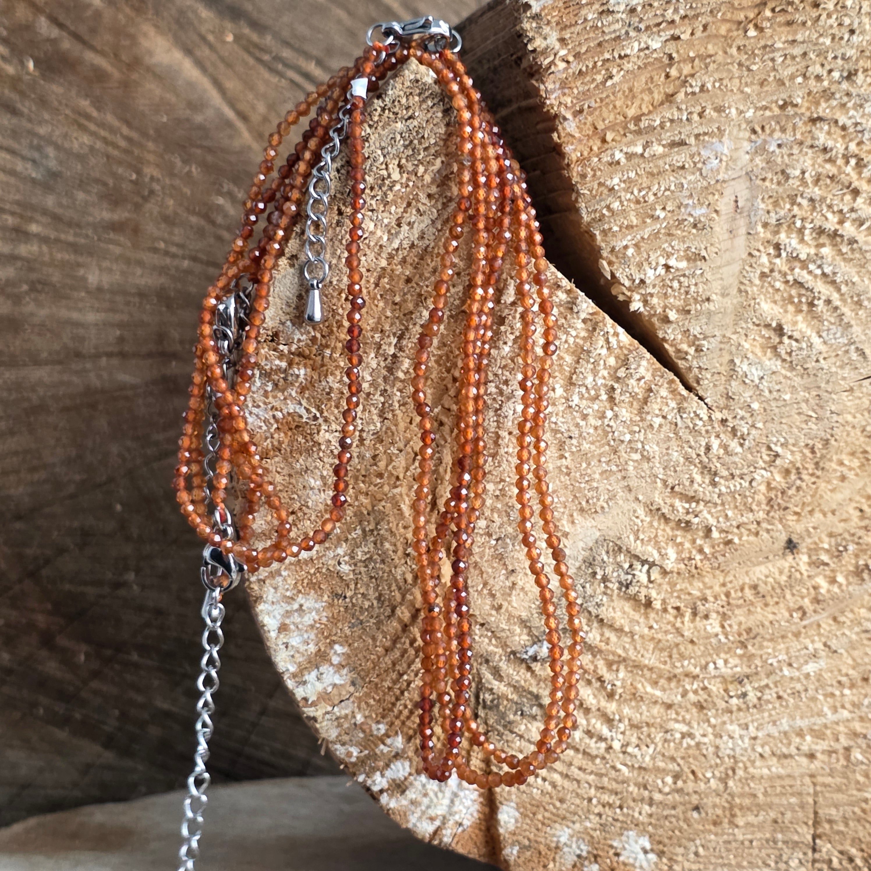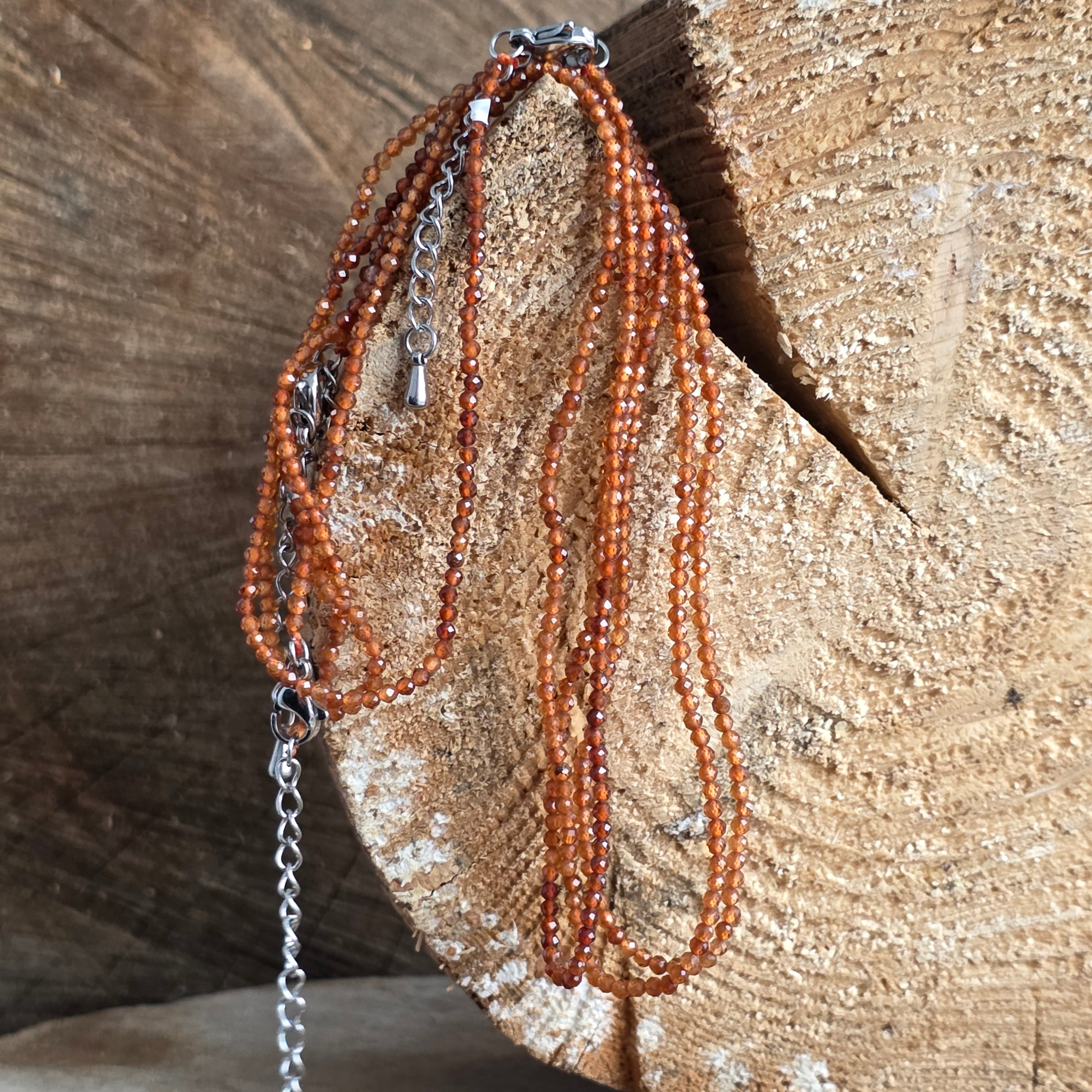 2 mm σφαίρα γρανάτη κολιέ, μέγεθος: 38 + 5 cm (αλυσίδα επέκτασης)