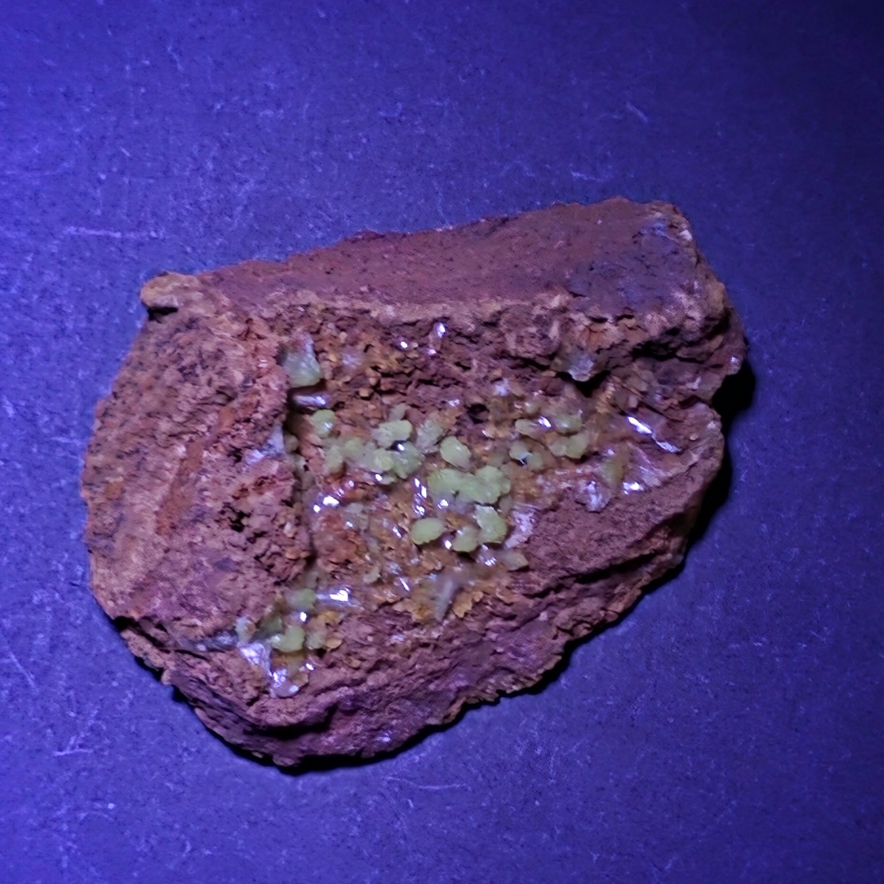 Acest specimen de adamit din Mexic, provenit din faimoasa Mina Ojuela, Mapimí – Durango, este o piesă mineralogică de colecție, extrem de apreciată pentru culoarea sa intensă, verde-gălbuie, și pentru fluorescența spectaculoasă sub lumină UV. Mina Ojuela este considerată una dintre cele mai importante localități clasice din lume pentru adamit, piesele de aici fiind de referință pentru acest mineral.
