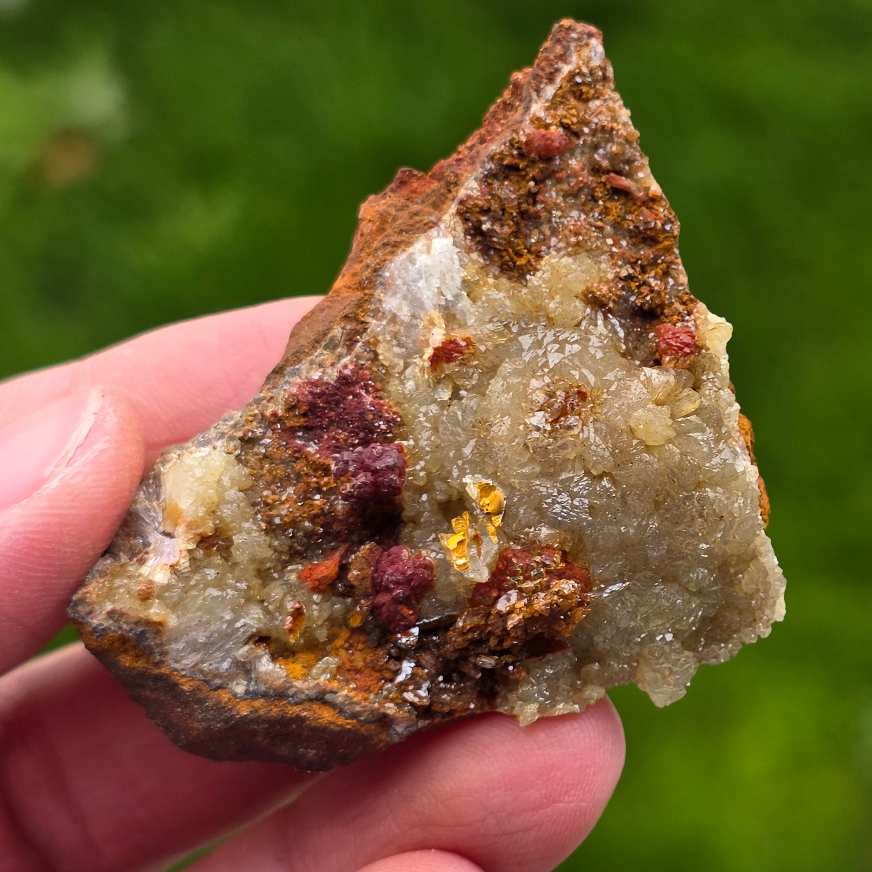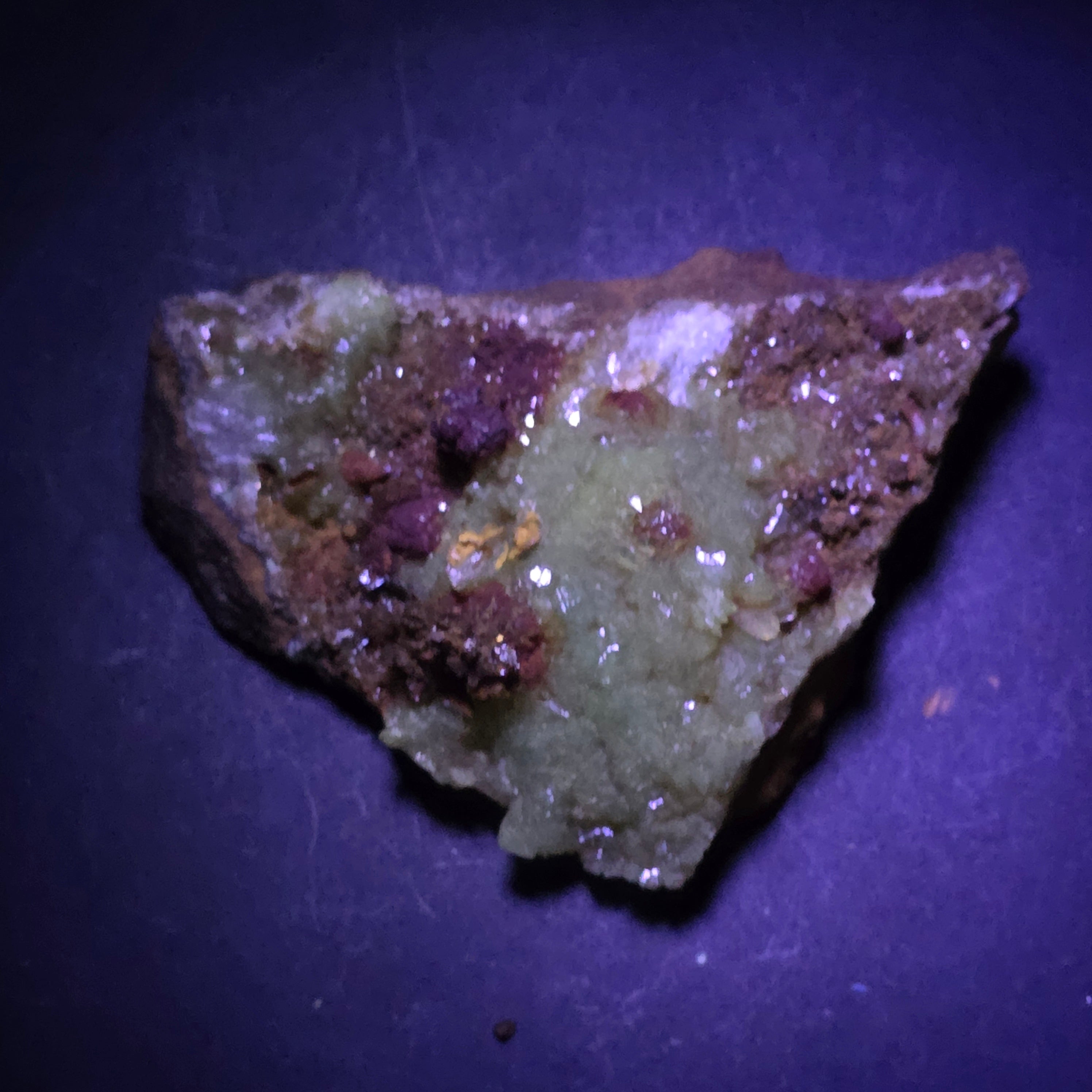 Acest specimen de adamit din Mexic, provenit din faimoasa Mina Ojuela, Mapimí – Durango, este o piesă mineralogică de colecție, extrem de apreciată pentru culoarea sa intensă, verde-gălbuie, și pentru fluorescența spectaculoasă sub lumină UV. Mina Ojuela este considerată una dintre cele mai importante localități clasice din lume pentru adamit, piesele de aici fiind de referință pentru acest mineral.