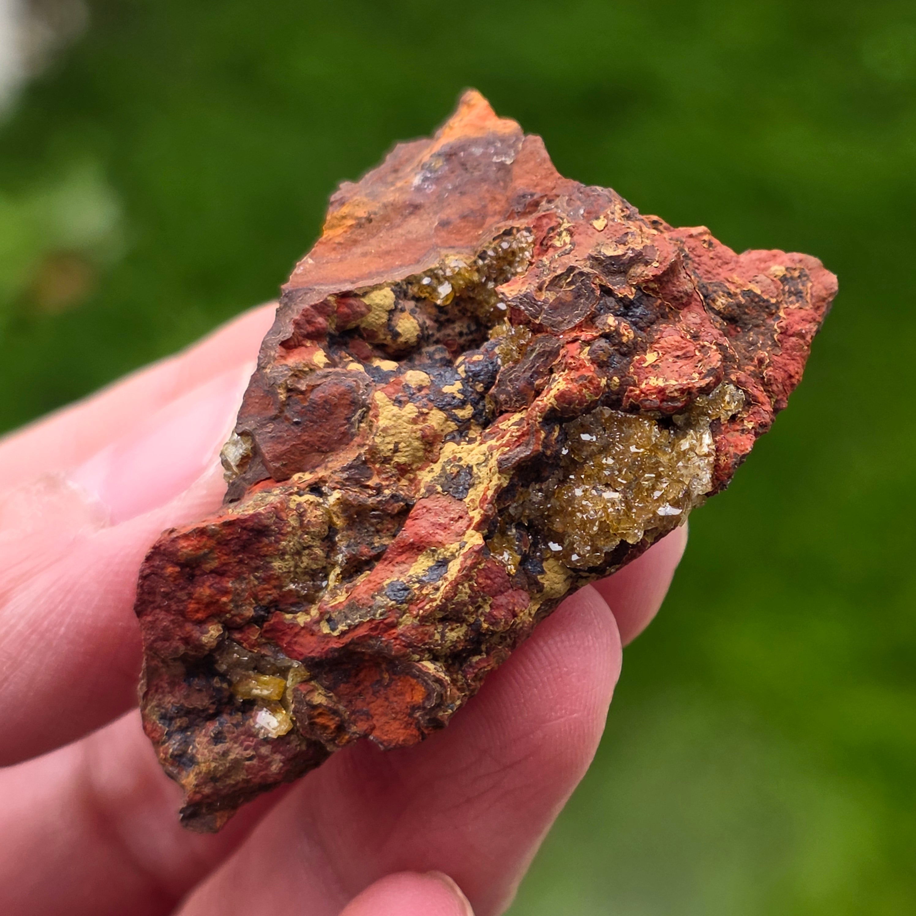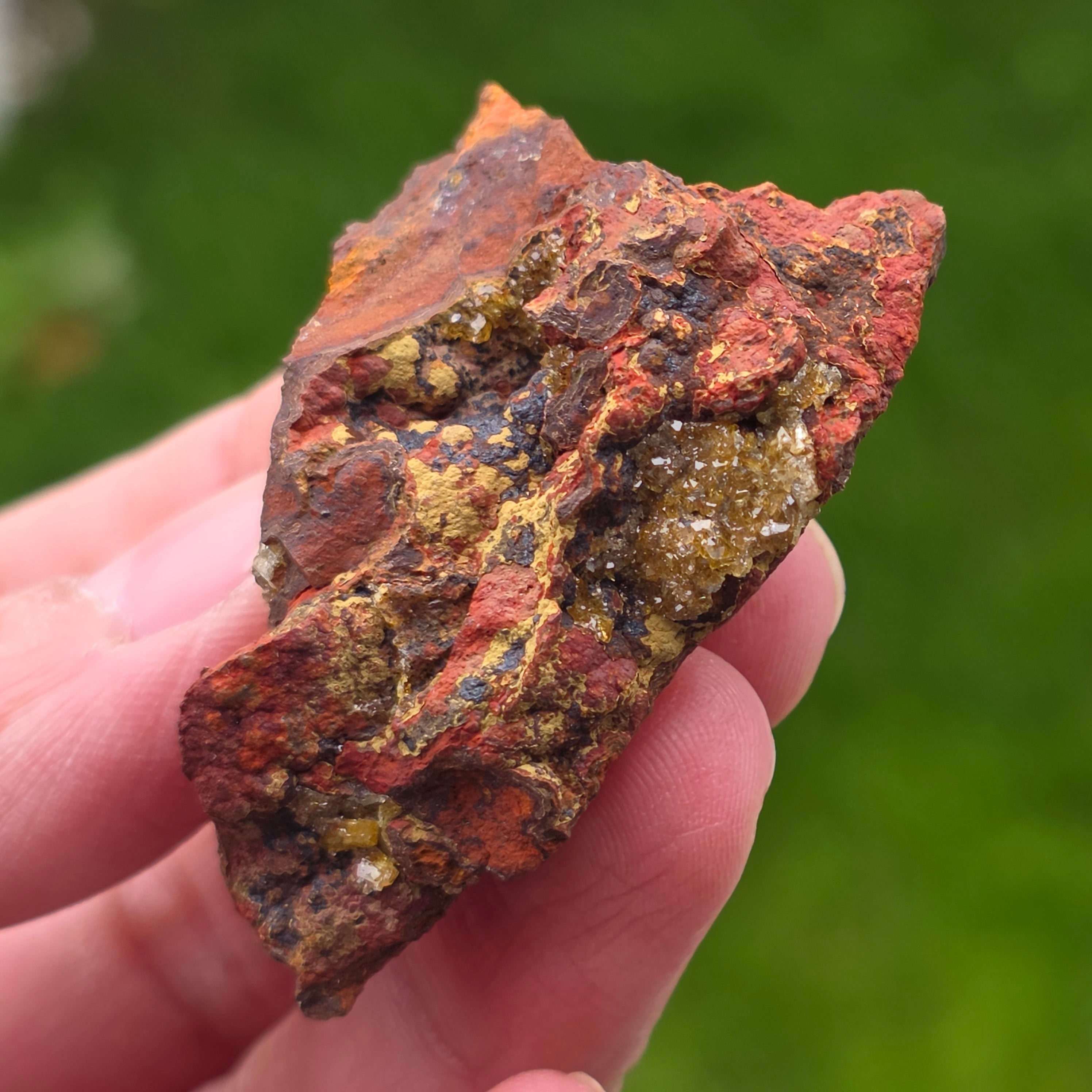 Acest specimen de adamit din Mexic, provenit din faimoasa Mina Ojuela, Mapimí – Durango, este o piesă mineralogică de colecție, extrem de apreciată pentru culoarea sa intensă, verde-gălbuie, și pentru fluorescența spectaculoasă sub lumină UV. Mina Ojuela este considerată una dintre cele mai importante localități clasice din lume pentru adamit, piesele de aici fiind de referință pentru acest mineral.