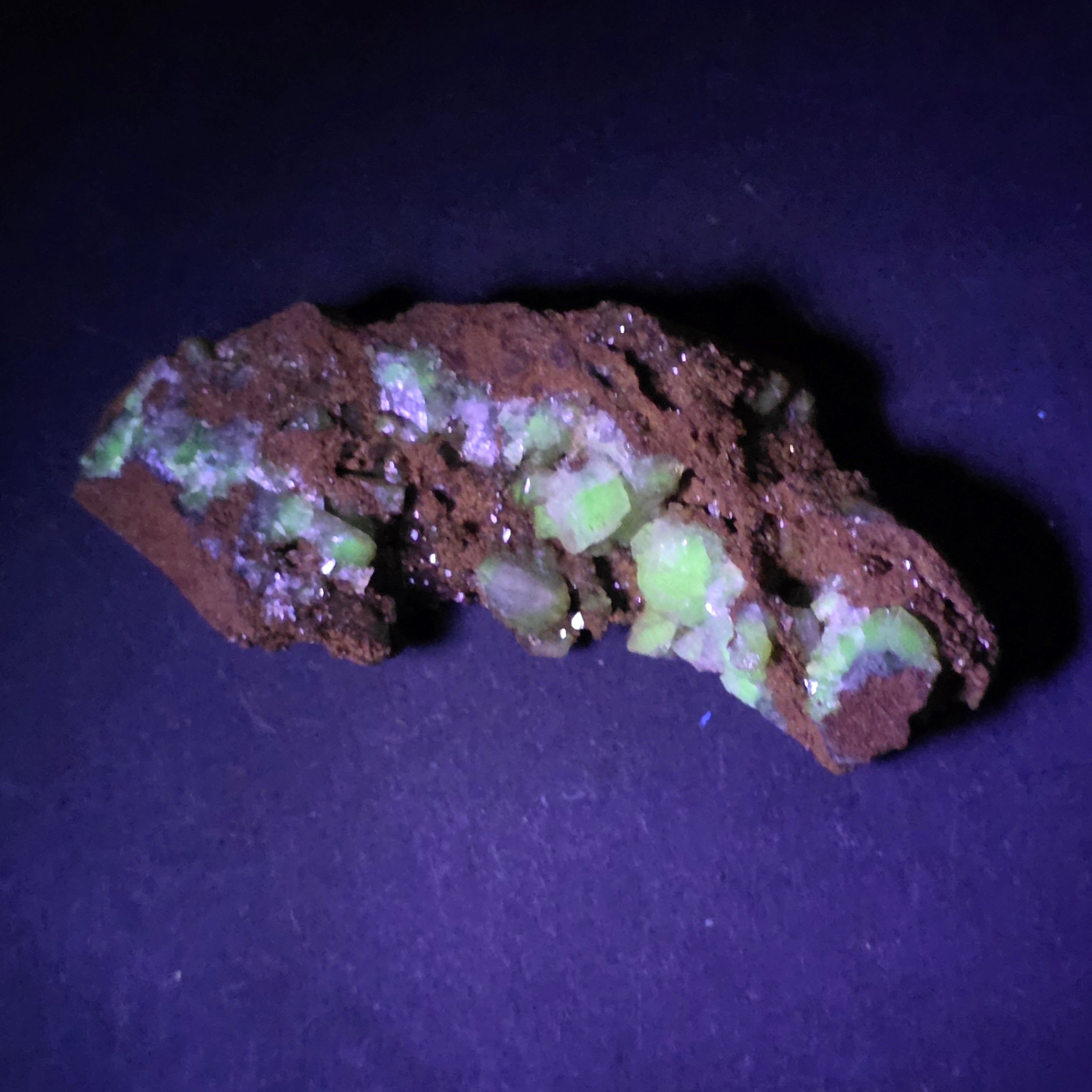 Acest specimen de adamit din Mexic, provenit din faimoasa Mina Ojuela, Mapimí – Durango, este o piesă mineralogică de colecție, extrem de apreciată pentru culoarea sa intensă, verde-gălbuie, și pentru fluorescența spectaculoasă sub lumină UV. Mina Ojuela este considerată una dintre cele mai importante localități clasice din lume pentru adamit, piesele de aici fiind de referință pentru acest mineral.