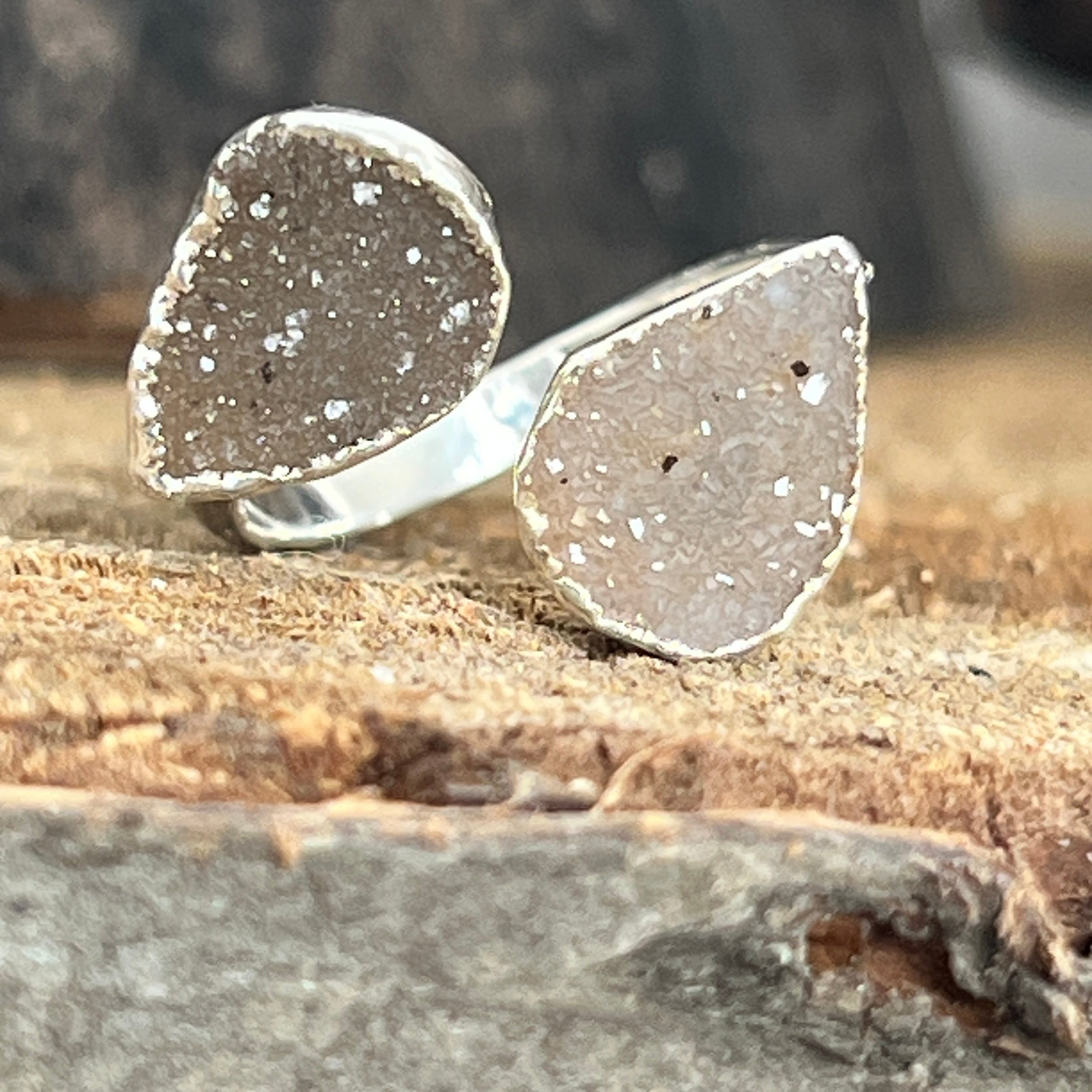 AGAT Ρυθμιζόμενο δακτύλιο Druzy Polated με ασήμι από τη Βραζιλία Μοντέλο 2