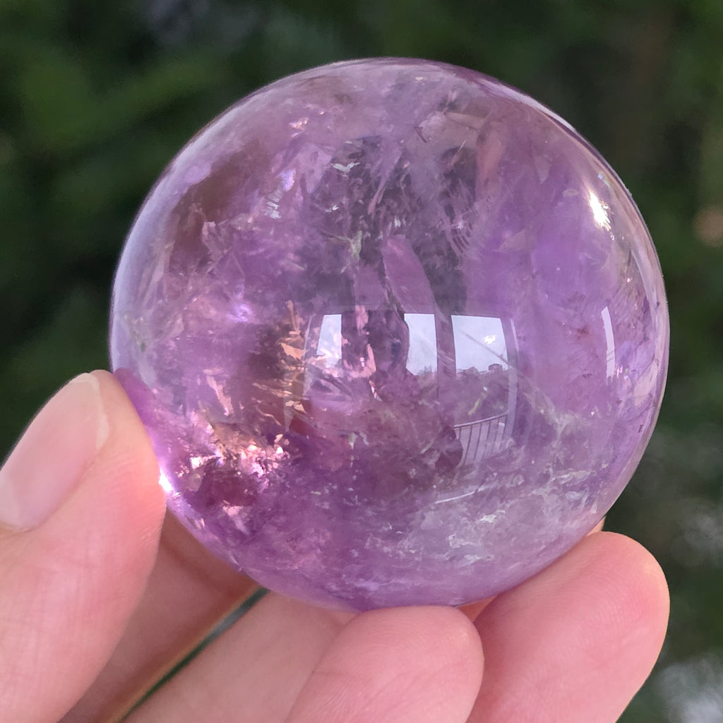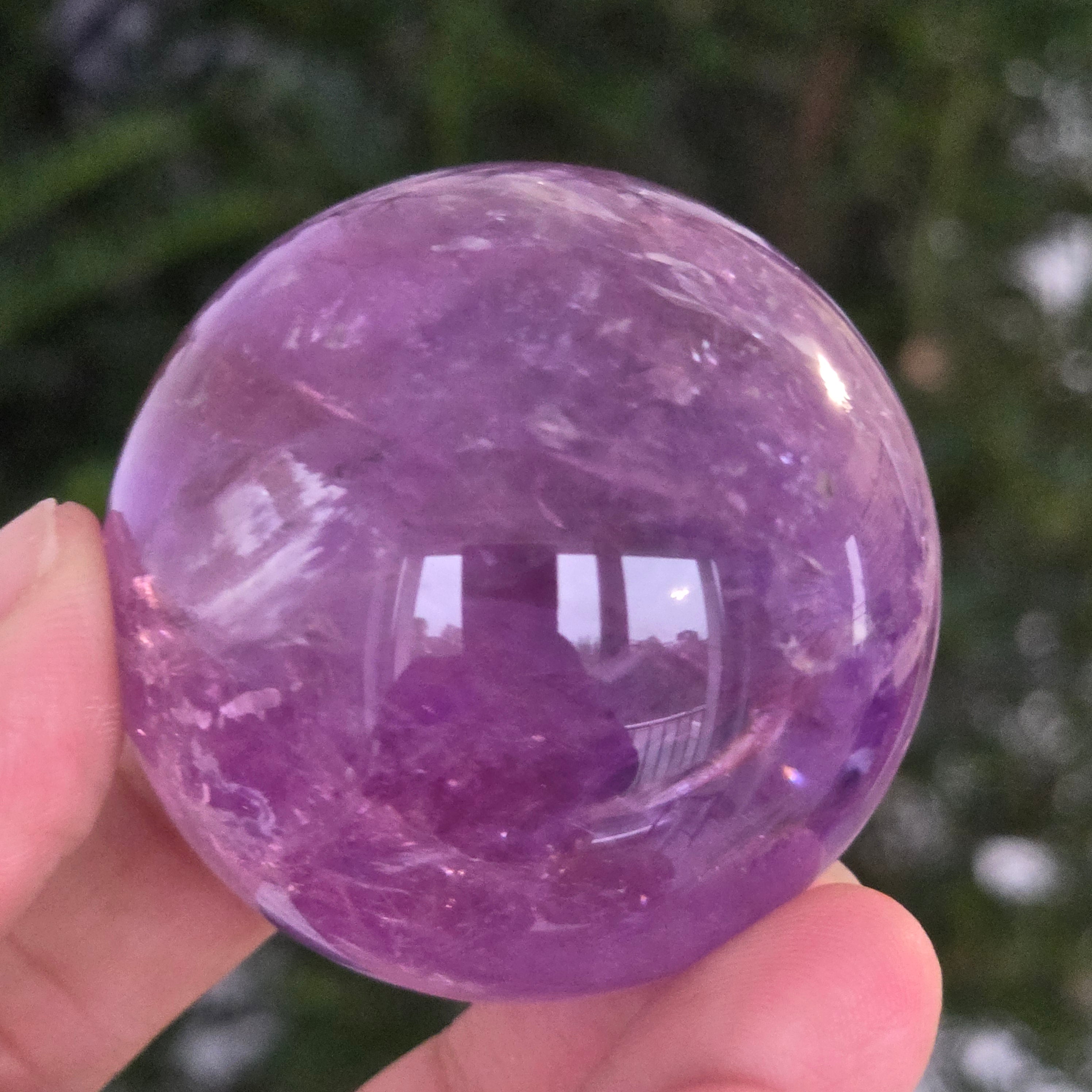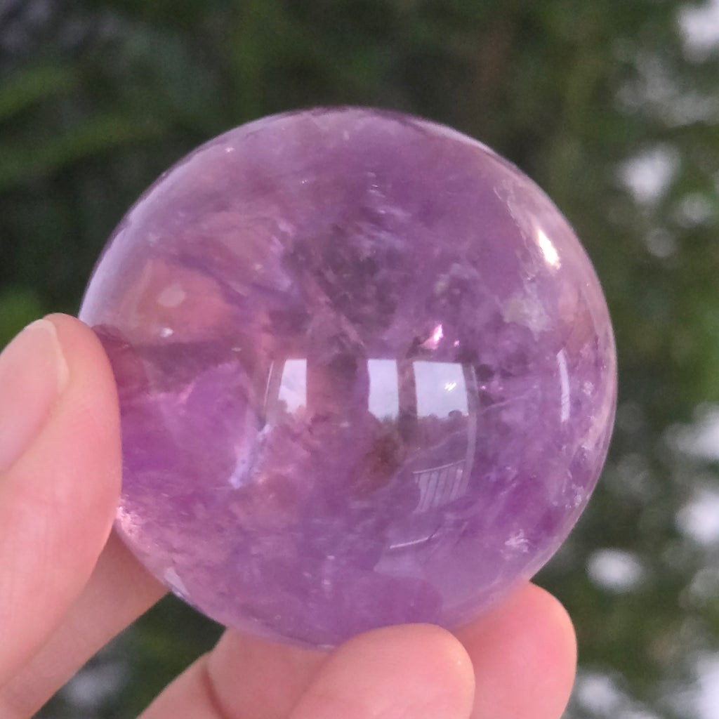 Μια σφαίρα που φαίνεται να έχει αιχμαλωτίσει την ουσία του ουρανού του ηλιοβασιλέματος. Αυτός μοναδικό κομμάτι φυσικού αμέθυστου ΑΑ από τη Βραζιλία, αποπνέει μια βαθιά, ημιδιαφανή λάμψη, με αποχρώσεις βασιλικού μωβ, λιλά και λεβάντας σκιές που παίζουν στο φως. Το τέλεια γυαλισμένο φινίρισμα αναδεικνύει την καθαρότητα του κρυστάλλου και τη φινέτσα της φυσικής του υφής – ένα ορυκτό κόσμημα κλασικής και ισορροπημένης ομορφιάς.
