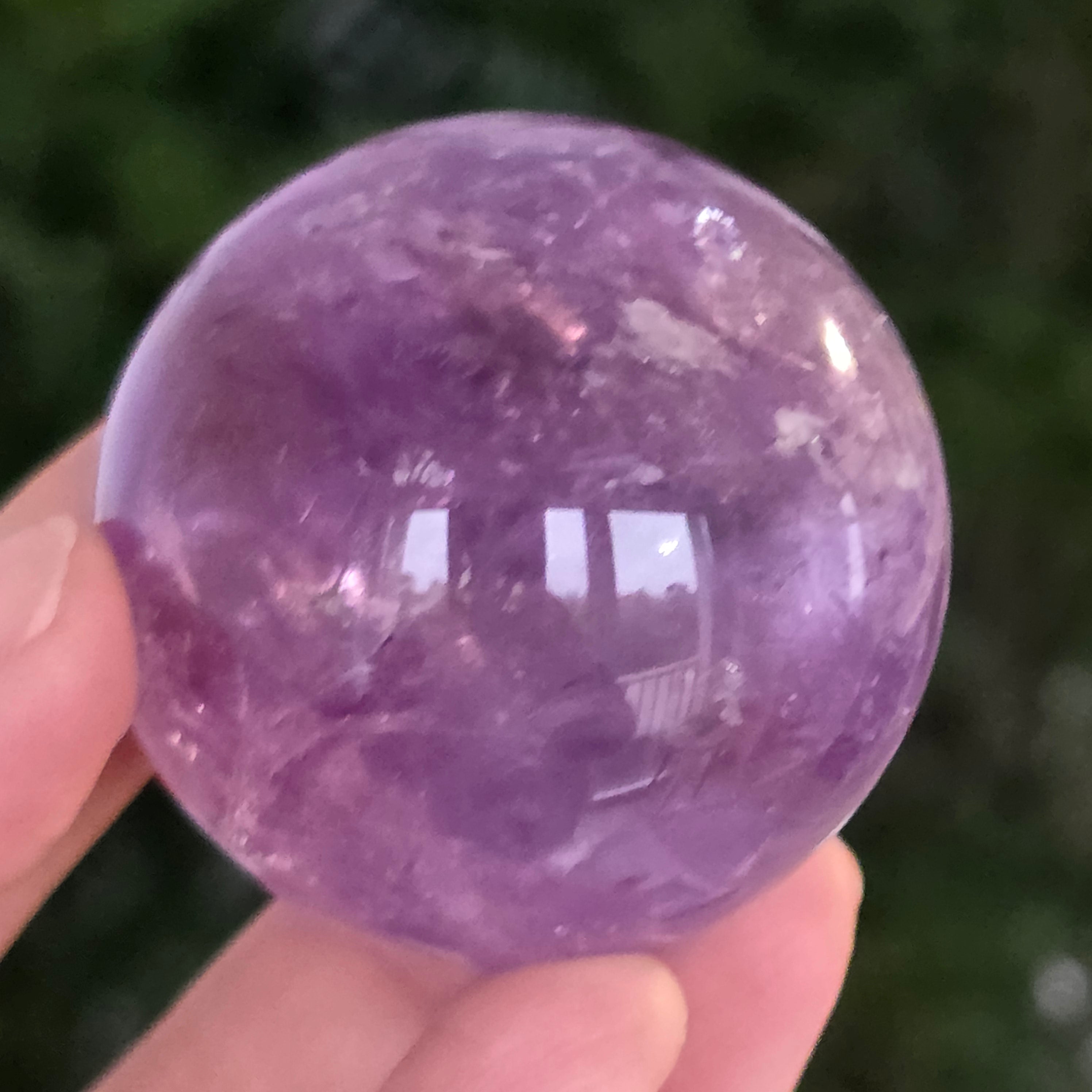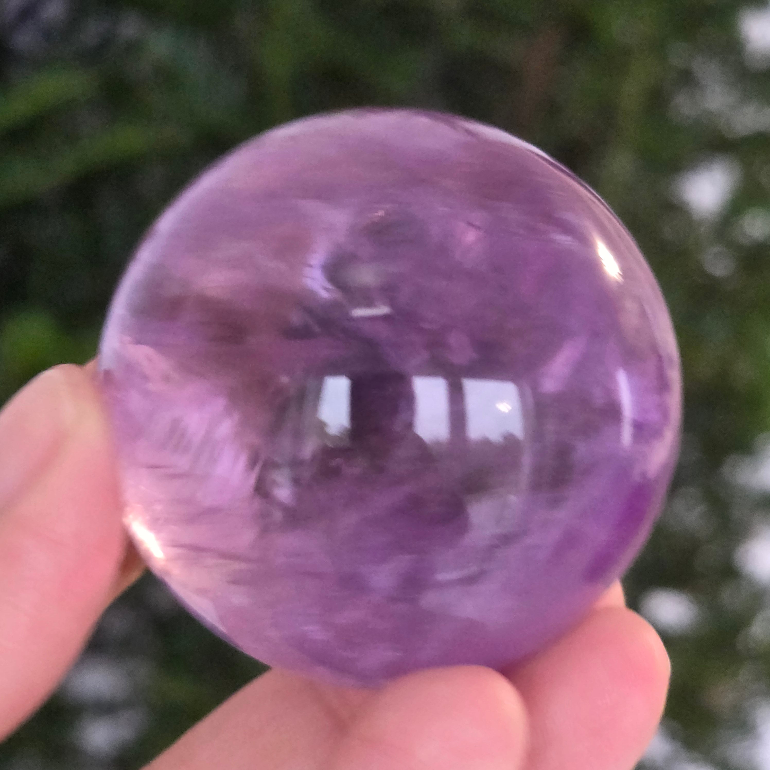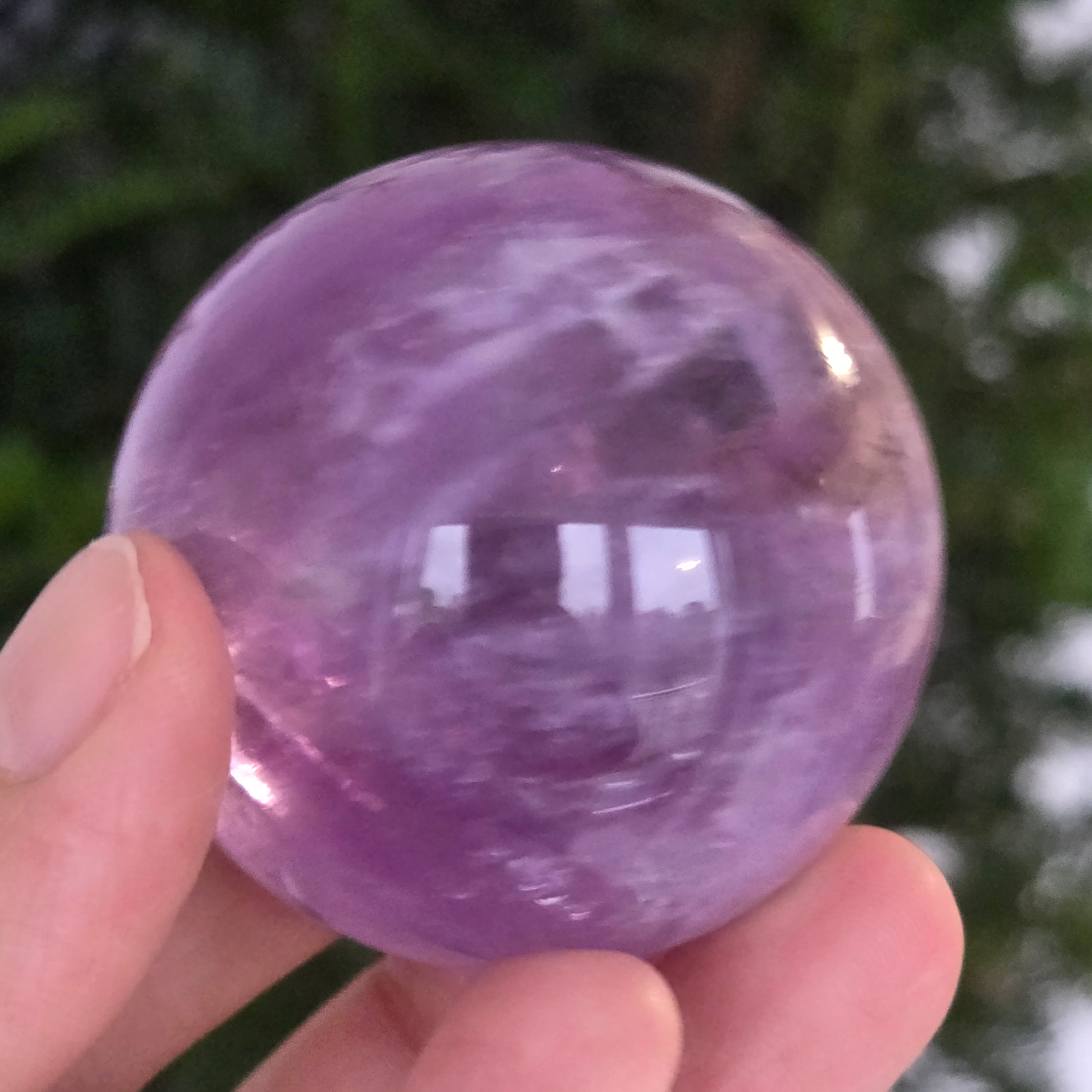 Μια σφαίρα που φαίνεται να έχει αιχμαλωτίσει την ουσία του ουρανού του ηλιοβασιλέματος. Αυτός μοναδικό κομμάτι φυσικού αμέθυστου ΑΑ από τη Βραζιλία, αποπνέει μια βαθιά, ημιδιαφανή λάμψη, με αποχρώσεις βασιλικού μωβ, λιλά και λεβάντας σκιές που παίζουν στο φως. Το τέλεια γυαλισμένο φινίρισμα αναδεικνύει την καθαρότητα του κρυστάλλου και τη φινέτσα της φυσικής του υφής – ένα ορυκτό κόσμημα κλασικής και ισορροπημένης ομορφιάς.