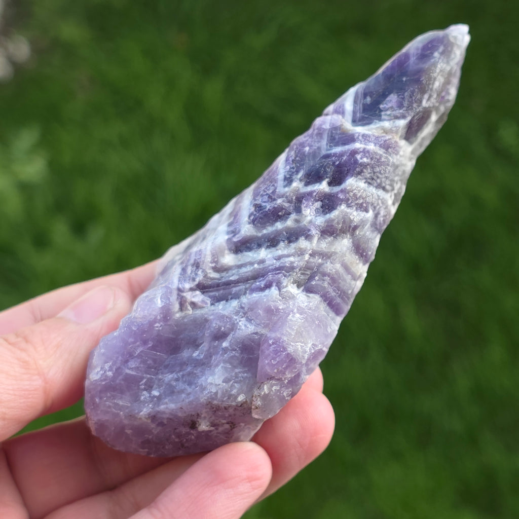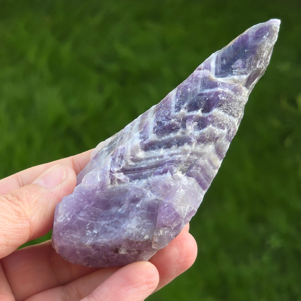 Το Amethyst Chevron μπορεί να χρησιμοποιηθεί στο διαλογισμό, ως κόσμημα ή για να προσθέσει μια φυσική και κομψή ματιά στο σπίτι ή στο γραφείο.