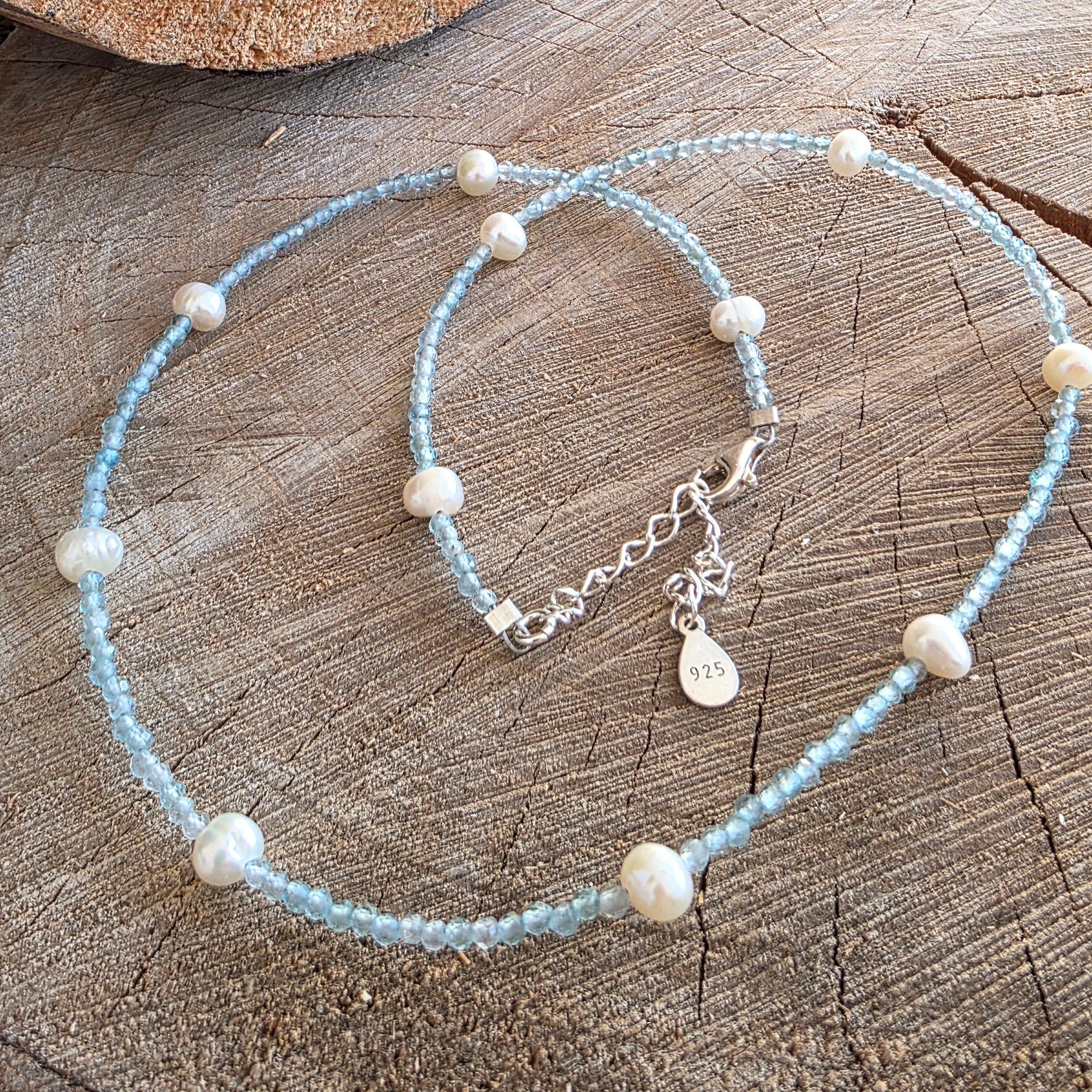 Apatit μπλε κολιέ και μαργαριτάρια καθαρή φωνή #68