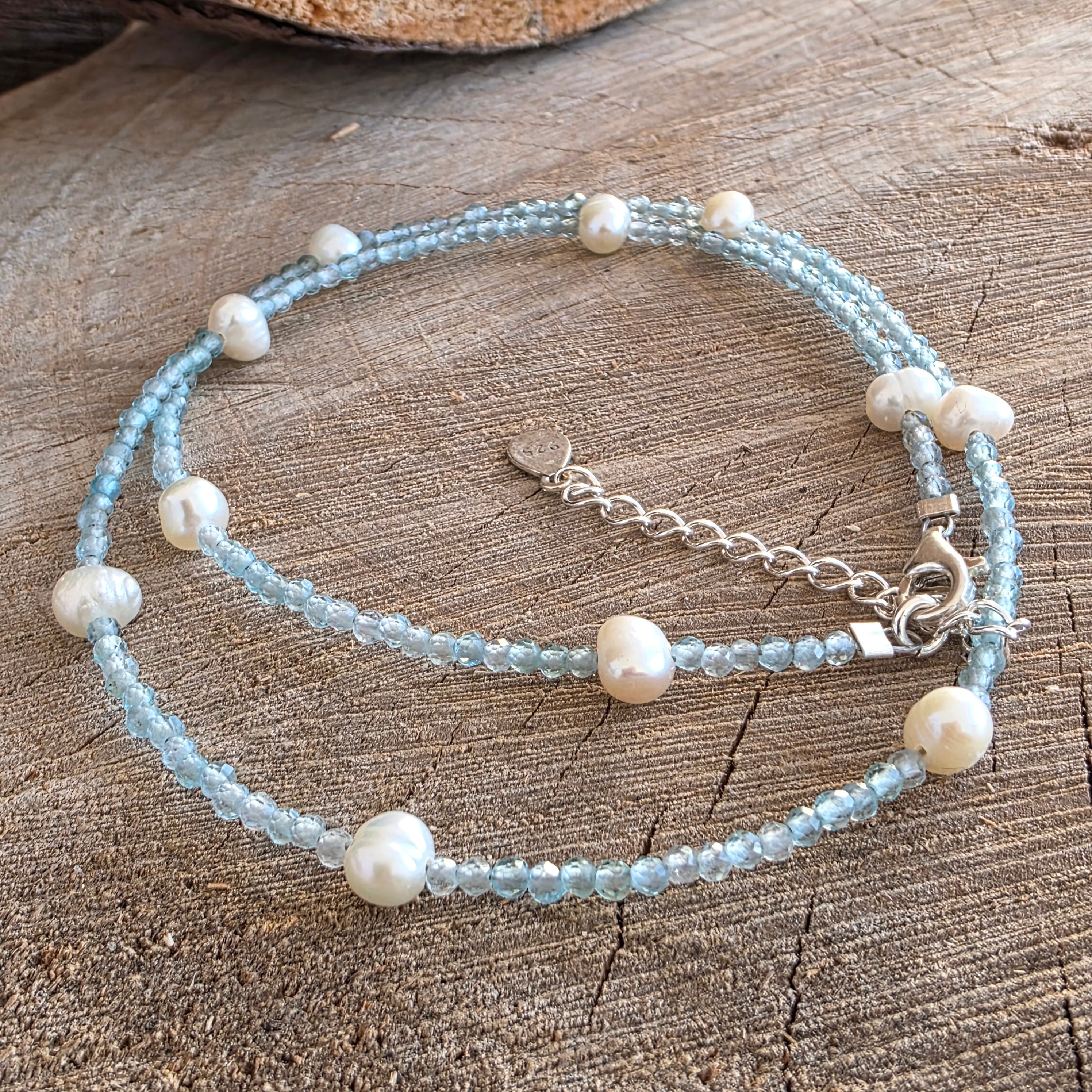Υλικά: Apatit Blue Facet 2,5 mm, φυσικά μαργαριτάρια ~ 5 mm, ασήμι 925