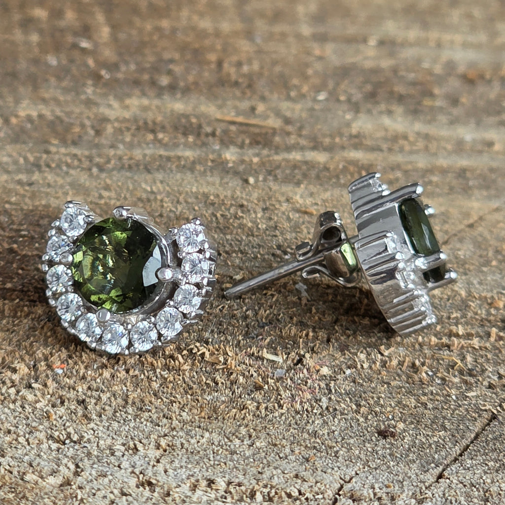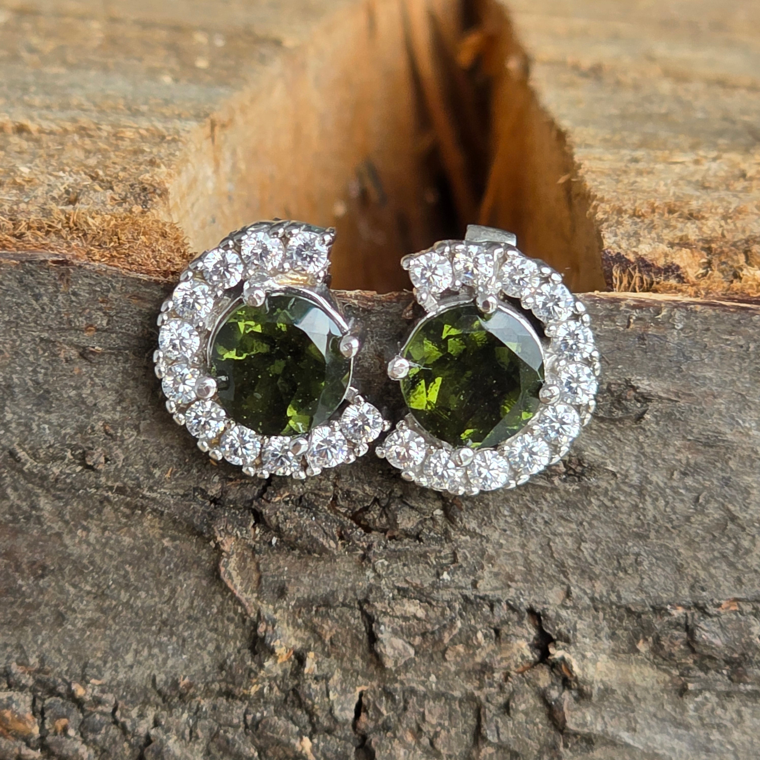 Αυτά τα εκλεπτυσμένα ασημένια σκουλαρίκια 925 υπογραμμίζουν τη σπάνια ομορφιά του φυσικού καλολτήρα, κεντρικά τοποθετημένα και περιβάλλεται από ένα στέμμα από λαμπερά ζιρκόνια με στυλ φωτοστέφανος. Ο κομψός σχεδιασμός υπογραμμίζει την έντονη πράσινη απόχρωση του Moldavit, φέρνοντας επιπλέον φωτεινότητα και κομψότητα. Είναι κατάλληλα για τις ημέρας και τις ειδικές περιστάσεις, είναι μια εξαιρετική επιλογή για τους λάτρεις των σπάνιων πέτρινων και διαχρονικών κοσμημάτων.