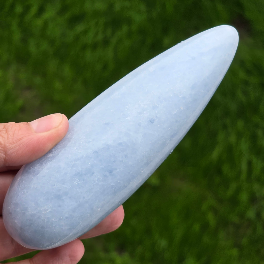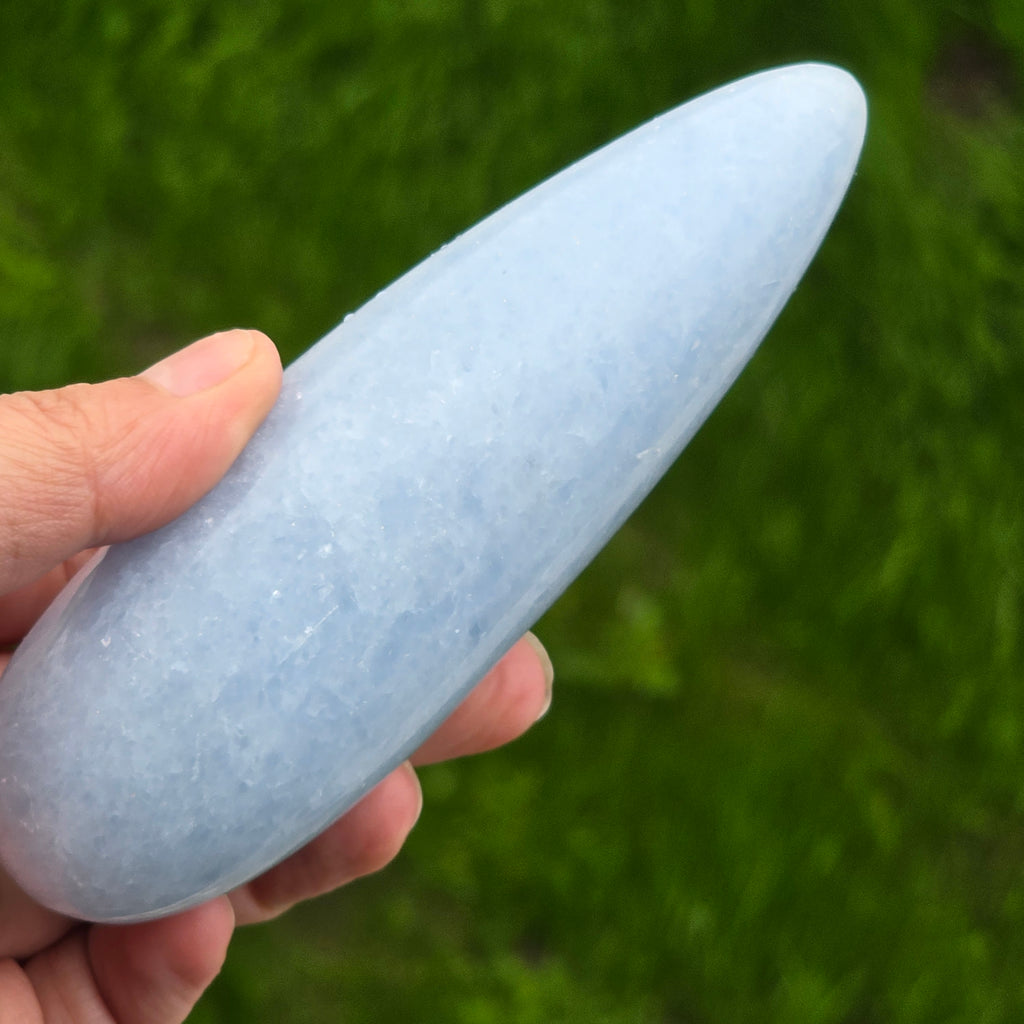 Calcitul albastru este recunoscut pentru efectul calmant asupra intregului camp energetic, acesta avand si un rol puternic protector.
