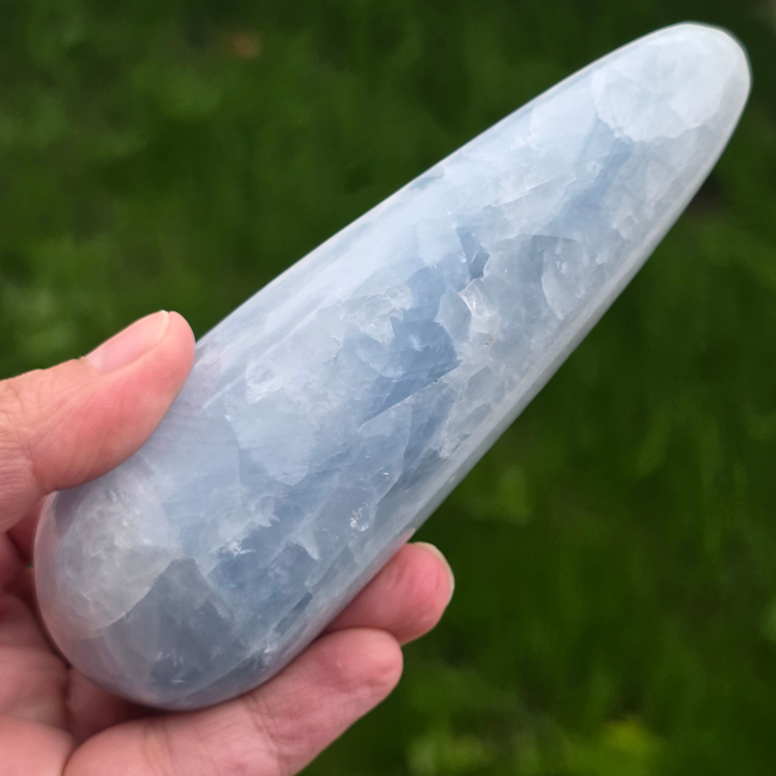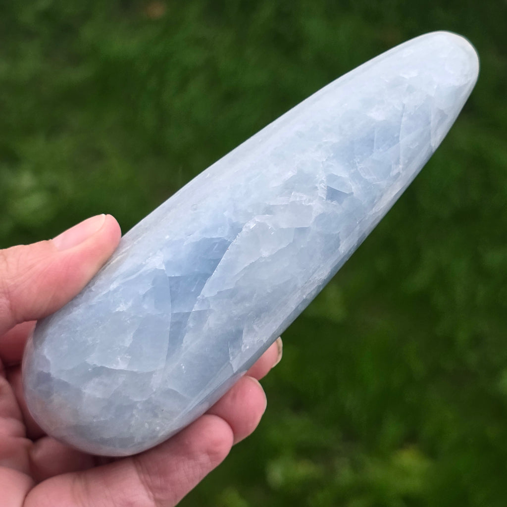 Calcitul albastru este recunoscut pentru efectul calmant asupra intregului camp energetic, acesta avand si un rol puternic protector.