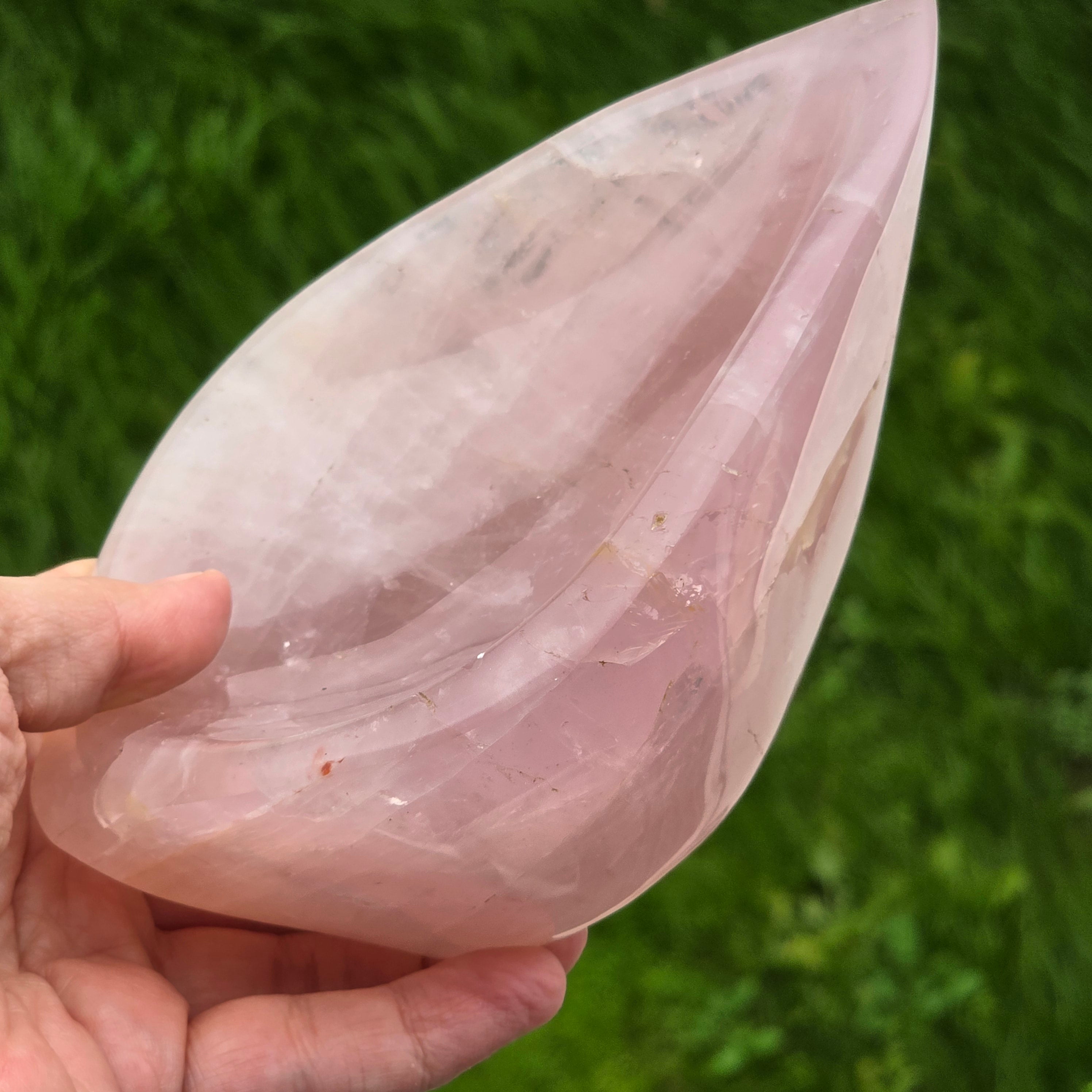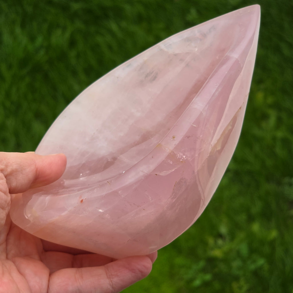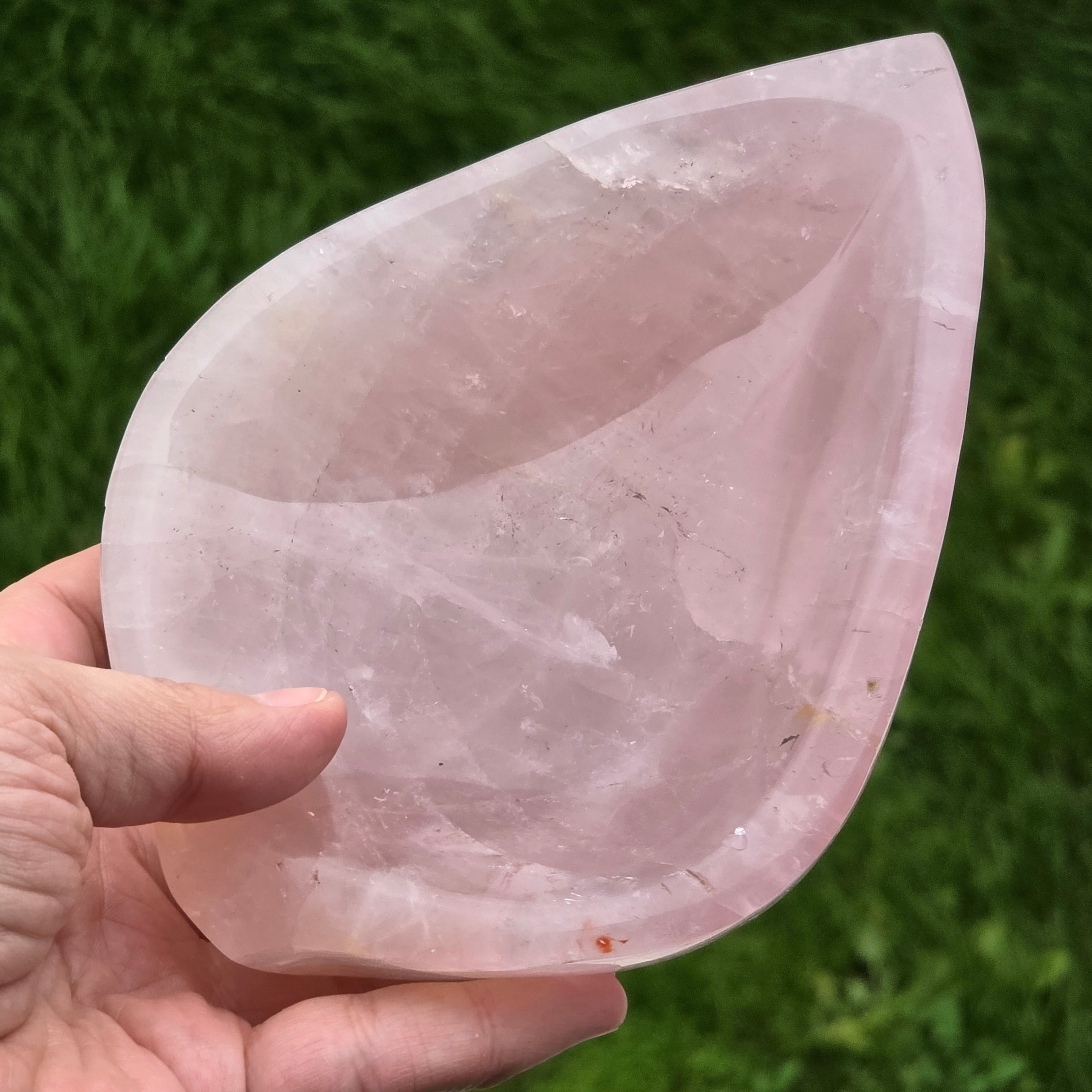 Bolul din Cuarț Roz model Leaf este o piesă delicată și plină de căldură, sculptată manual într-o formă organică ce amintește de o frunză proaspăt atinsă de lumină. Cuarțul roz, cu nuanțele sale blânde de petală, aduce o vibrație calmă, tandră și ușor luminoasă, transformând orice colț al casei într-un spațiu mai cald, mai primitor și mai armonios.