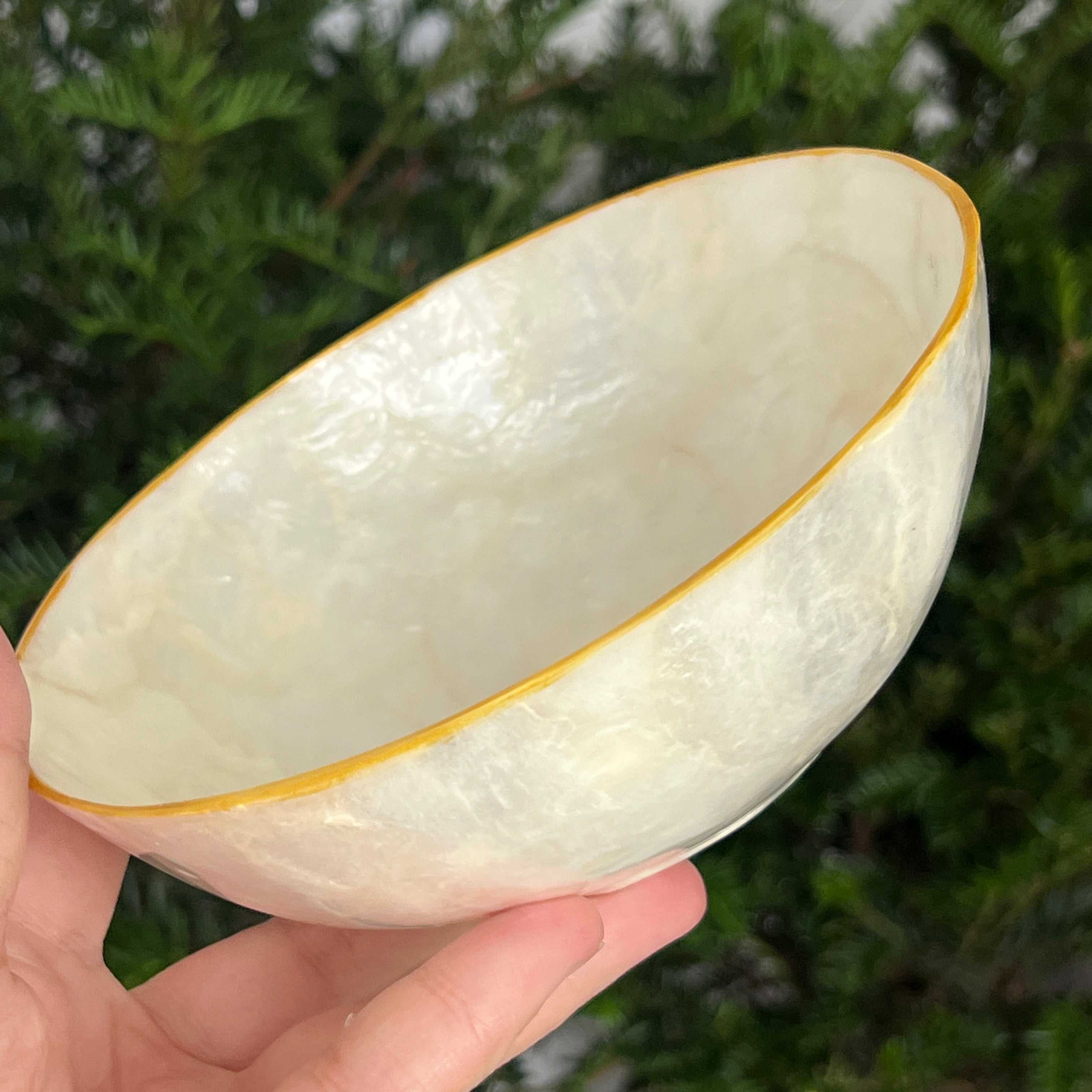 Bolul din scoică abalone este o piesă decorativă naturală, care îmbină căldura pământului cu strălucirea mării. Reflexele sidefate amintesc de adâncurile oceanului și aduc o notă elegantă oricărui spațiu. Ideal pentru colecționari, pentru decorarea altarului personal sau ca suport pentru cristale și bijuterii.