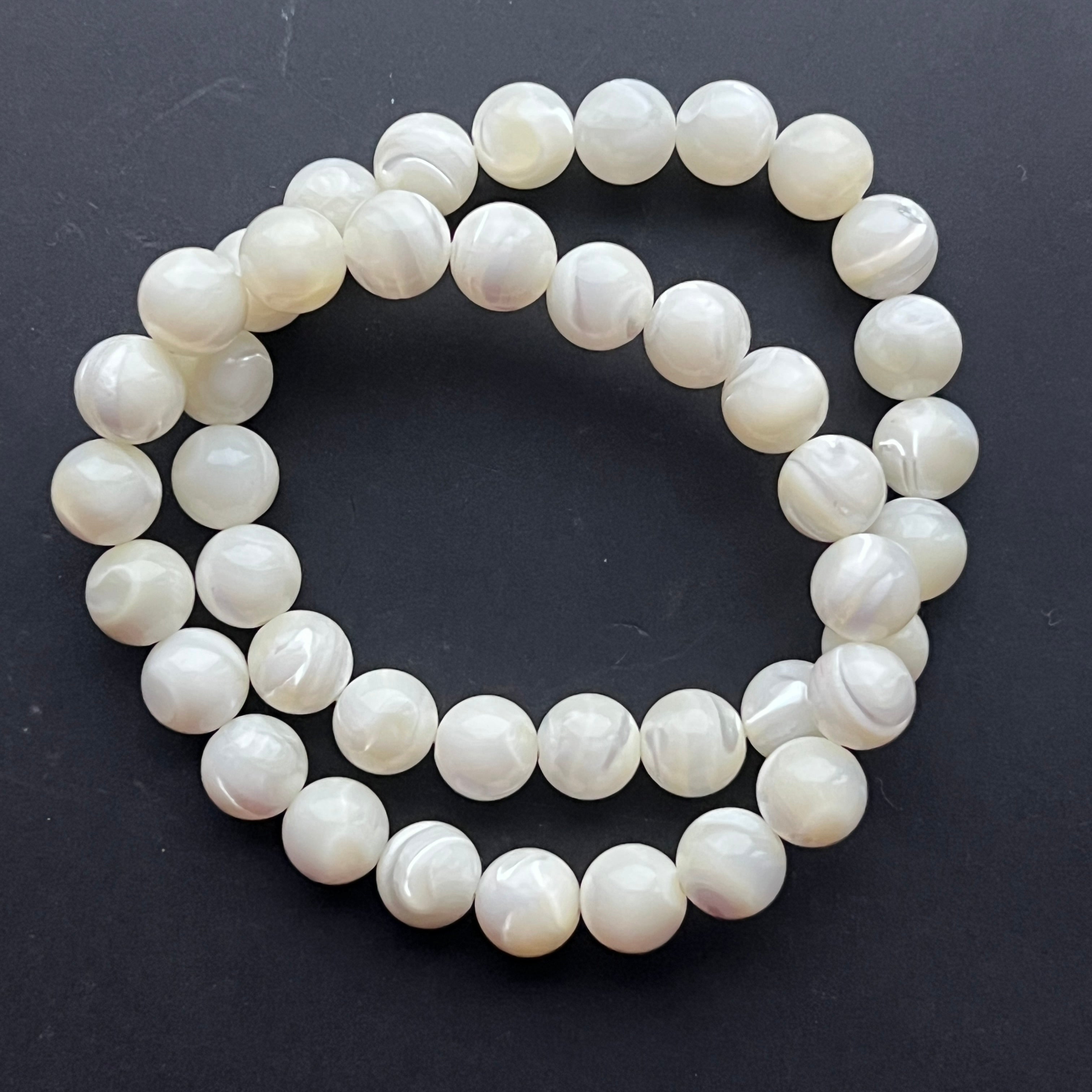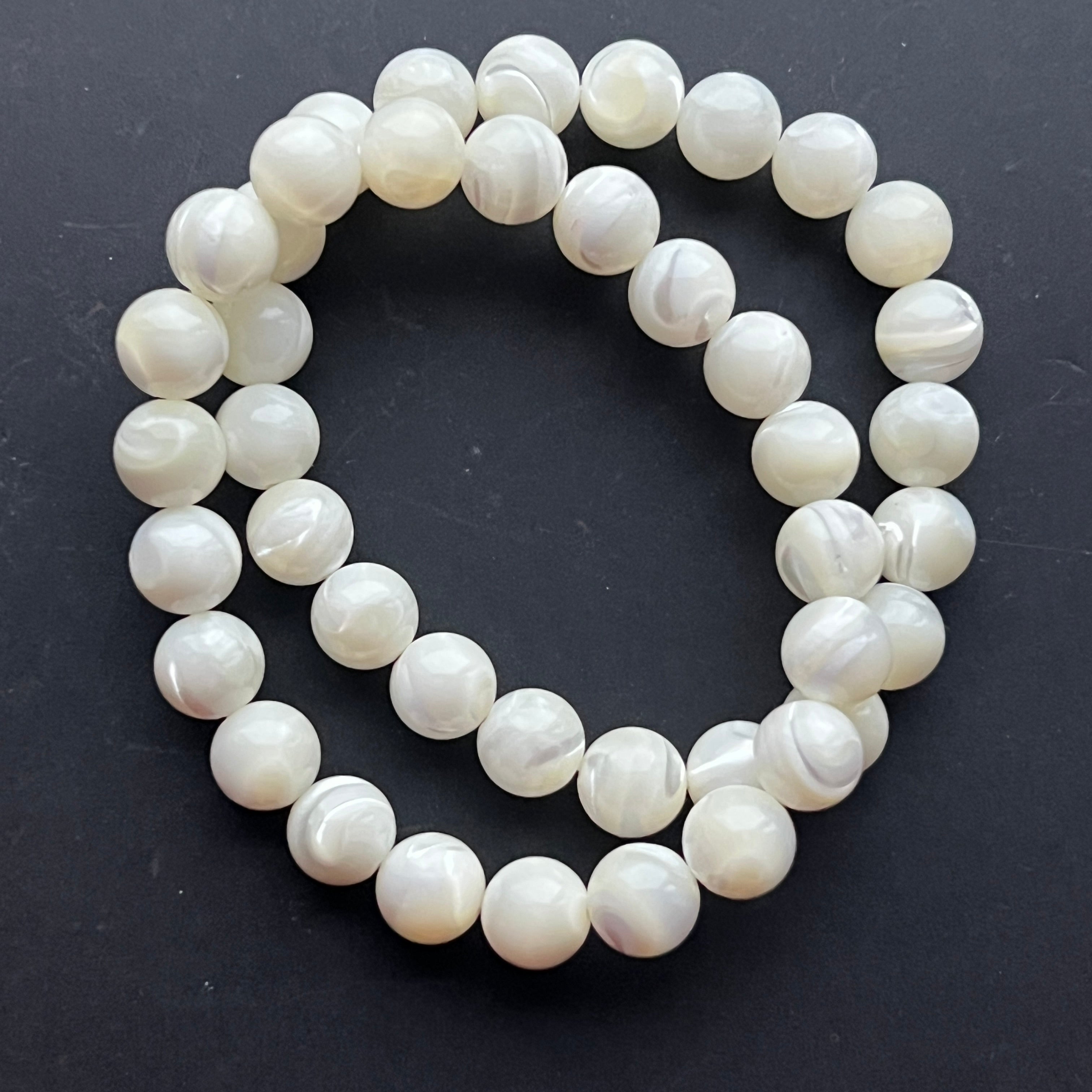 Această brățară din sidef, alcătuită din mărgele sferice de 8 mm, fascinează prin strălucirea sa delicată și reflexele perlate ce amintesc de frumusețea mării. Fiecare piesă este unică, cu variații subtile de nuanțe și irizații.