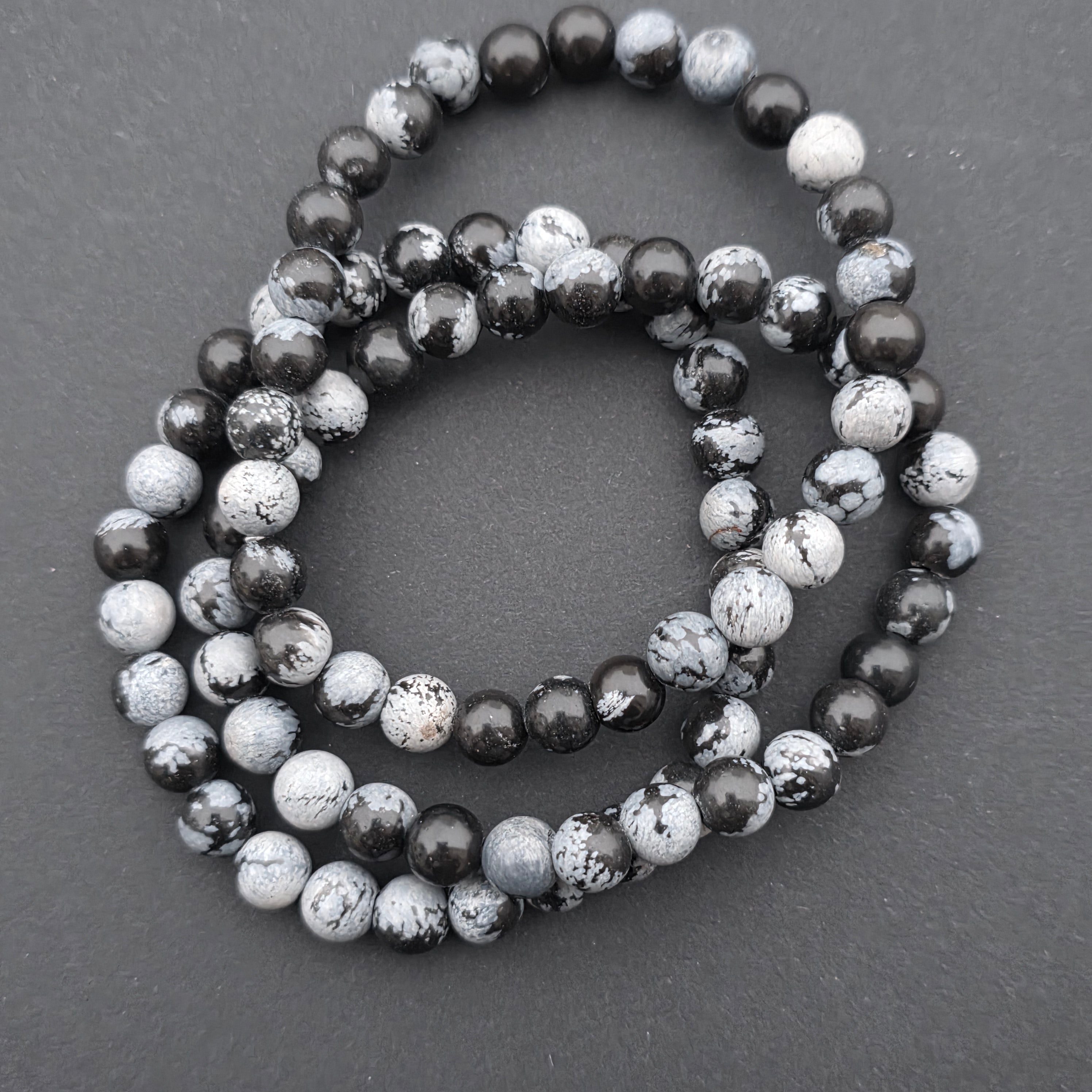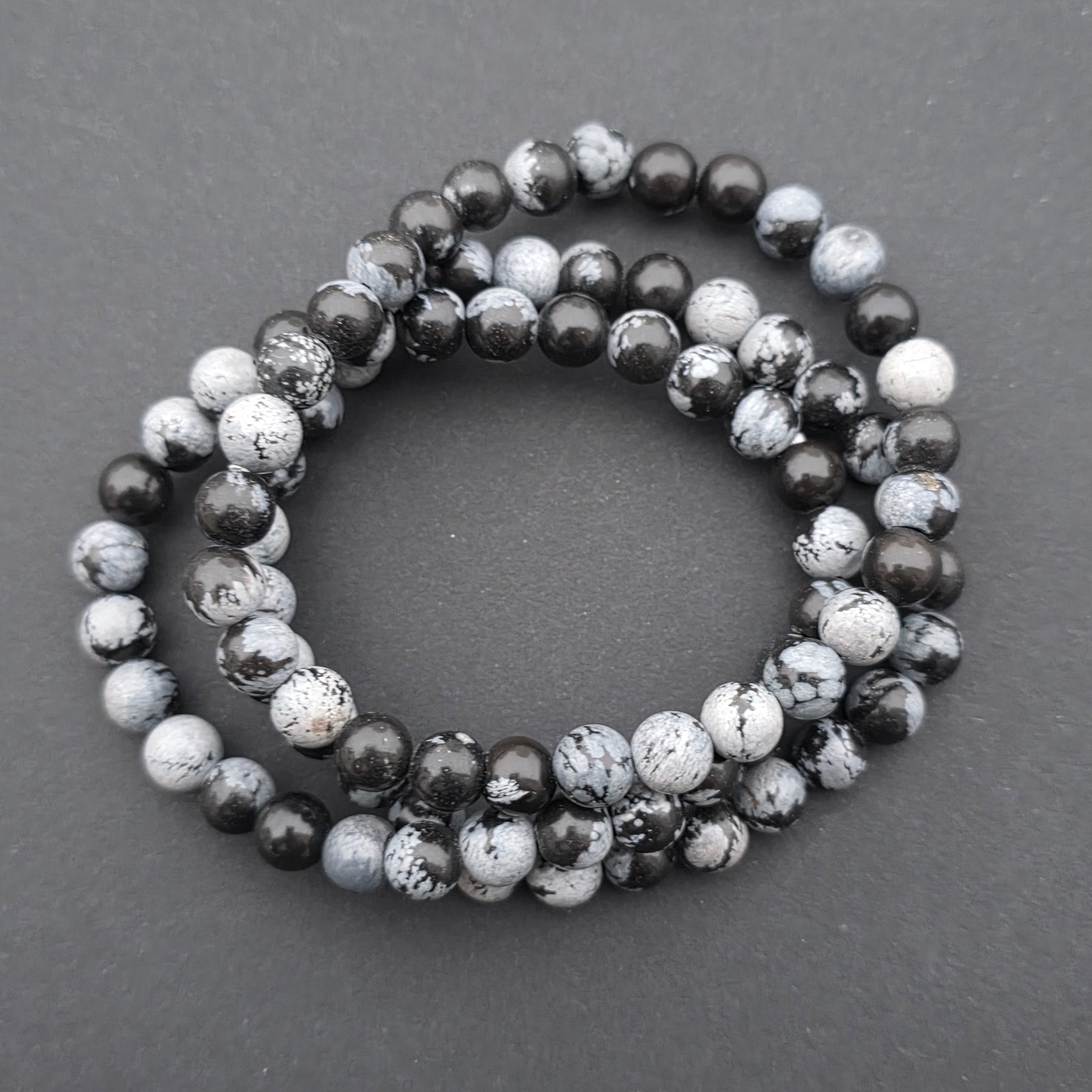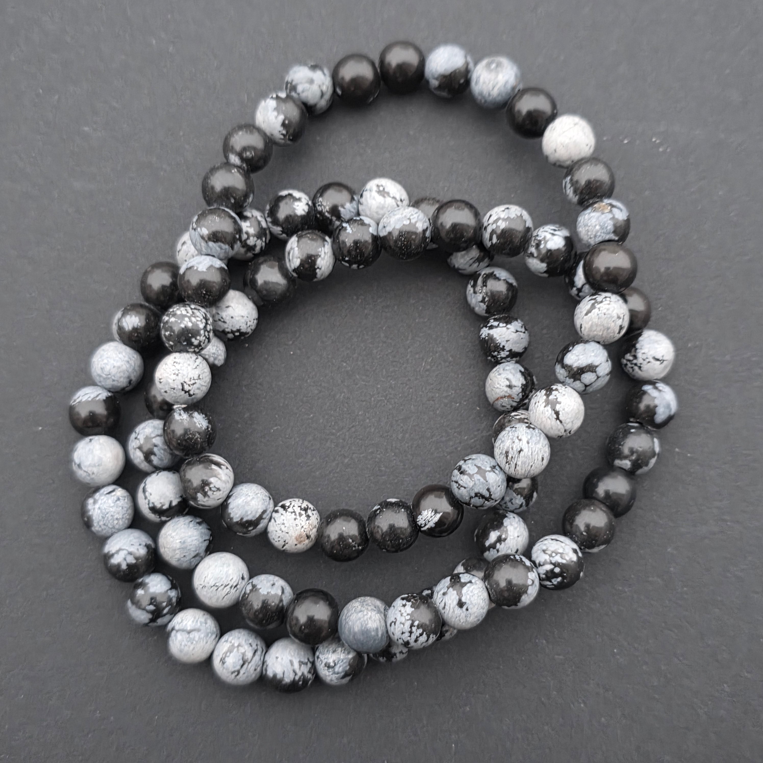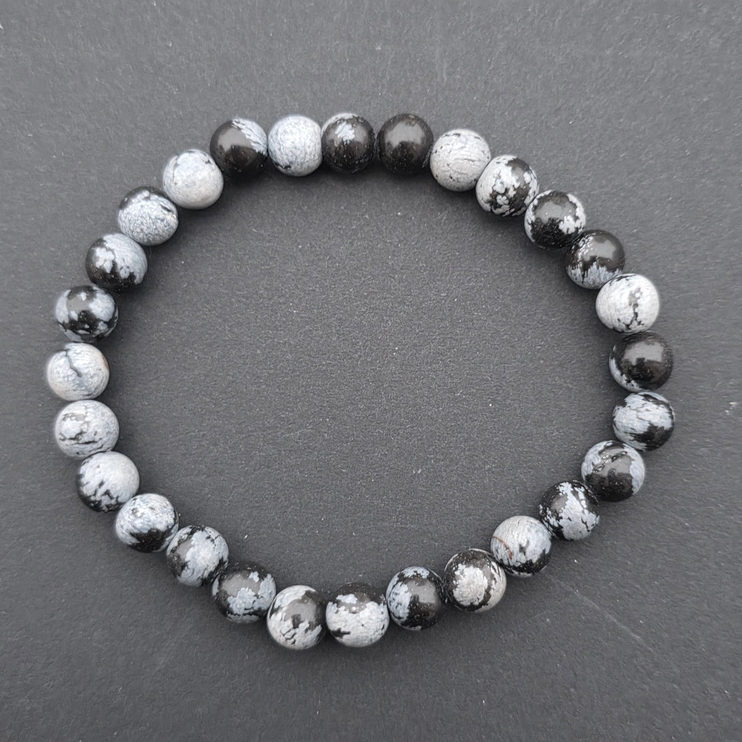 Περιγραφή - Brățară obisidian fulgi de zapada 6-7 mm
