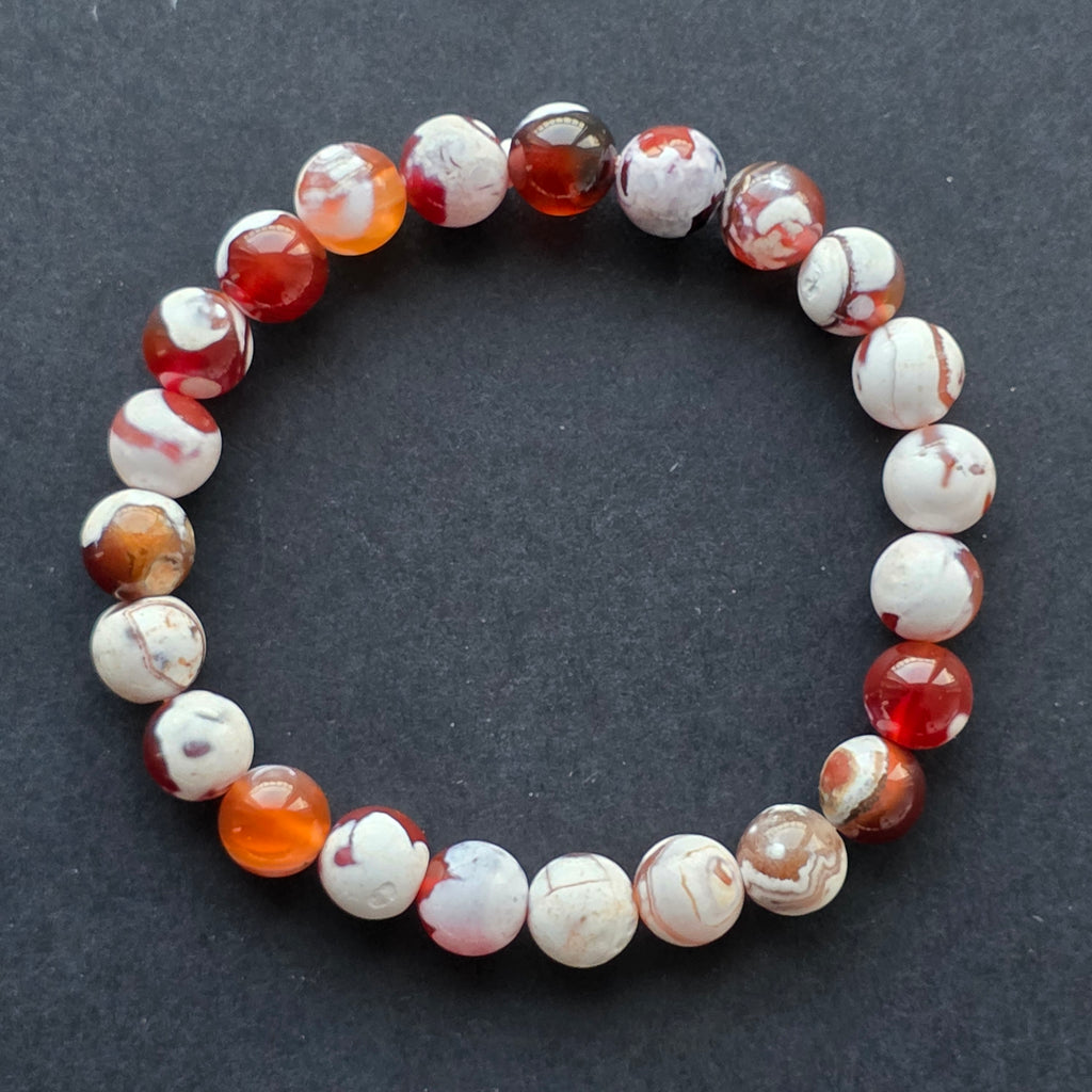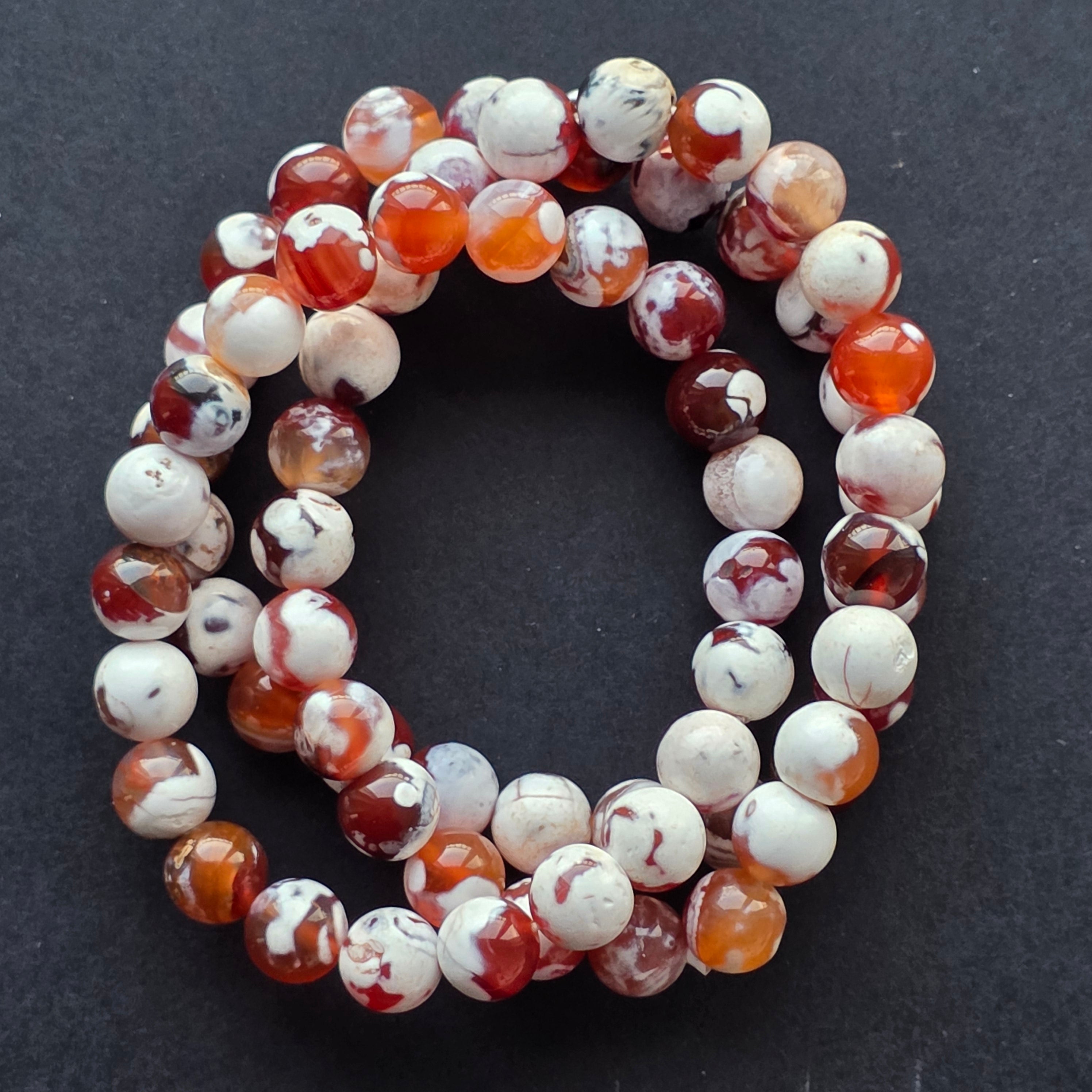 • Piatra: agat portocaliu (agate fire) – mărgele sferice 8–9 mm