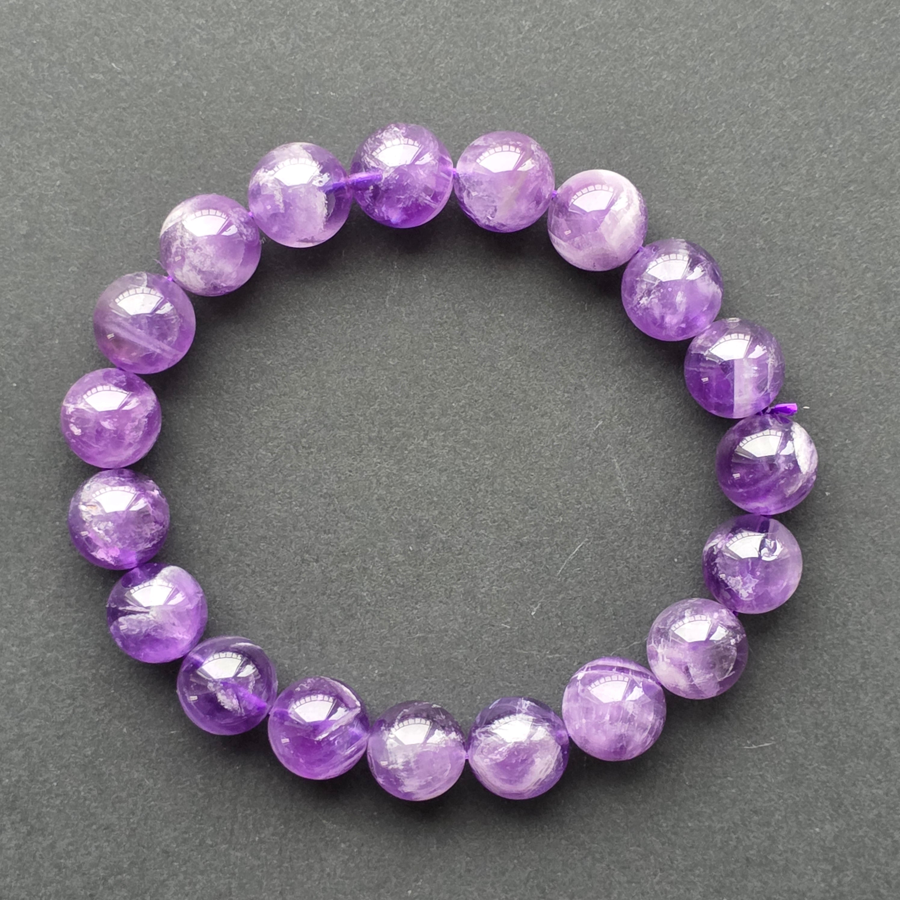 Brățara din ametist aduce la încheietură rafinamentul clasic al uneia dintre cele mai iubite pietre semiprețioase. Mărgelele mici și perfect rotunjite creează un șir delicat de nuanțe mov, într-un gradient natural care amintește de cerul serii sau de intensitatea unei flori de lavandă atinse de lumină.