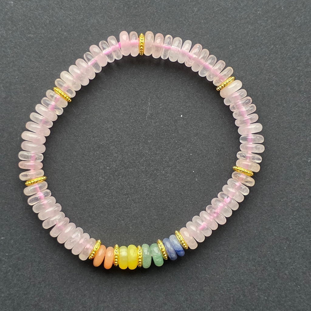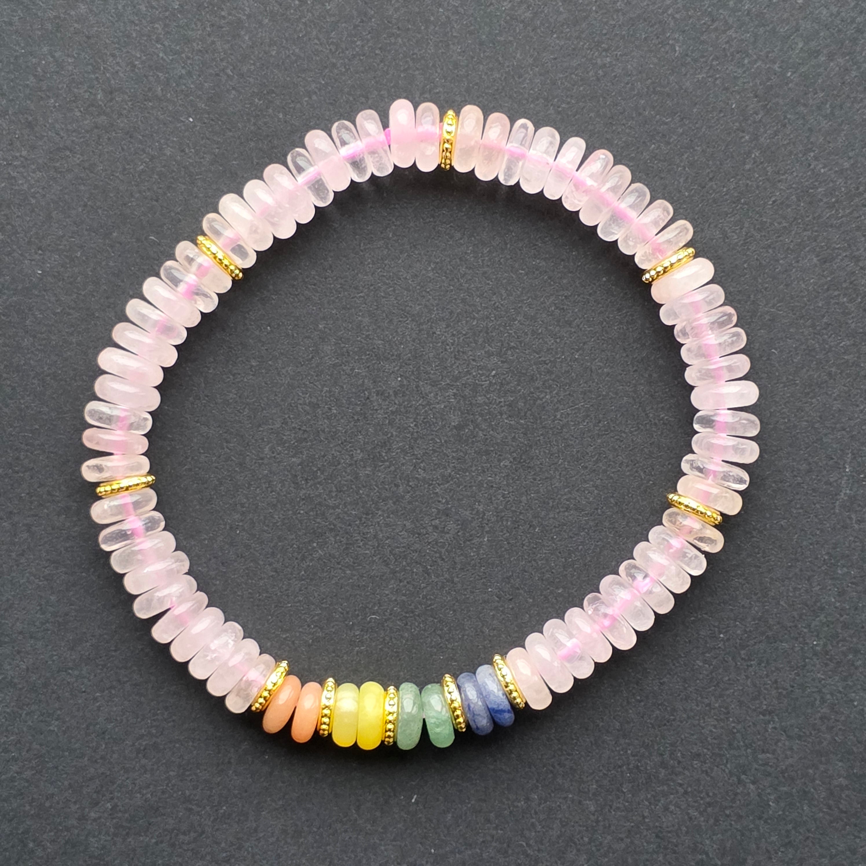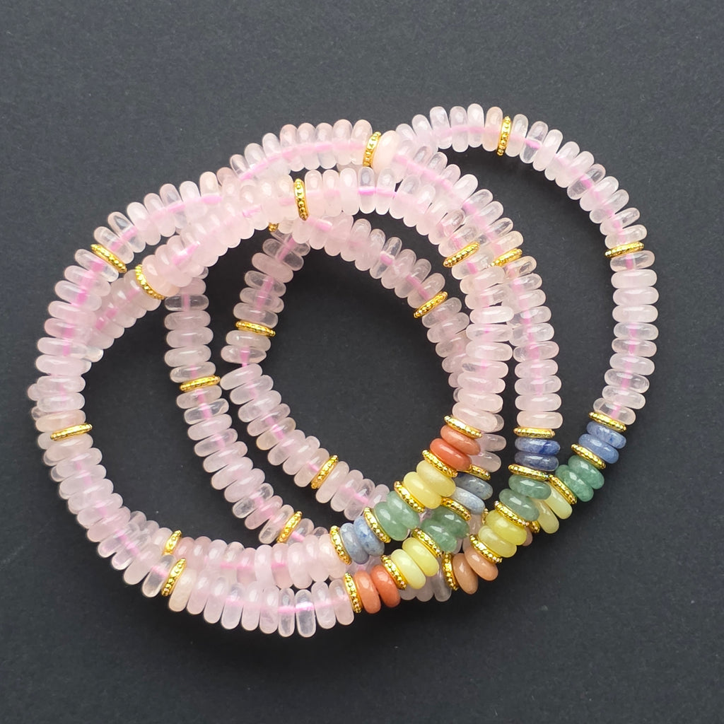 Περιγραφή - Bratara discuri cuart roz | 7 chakre
