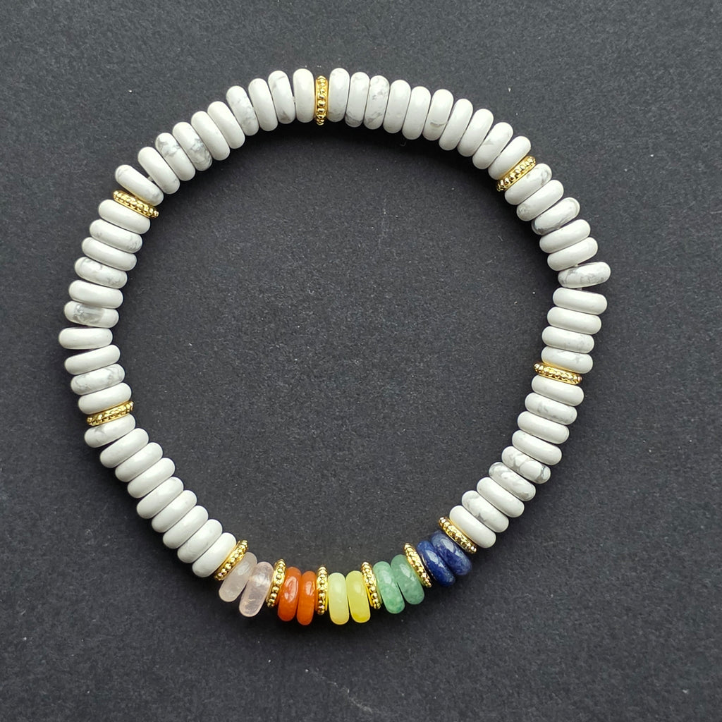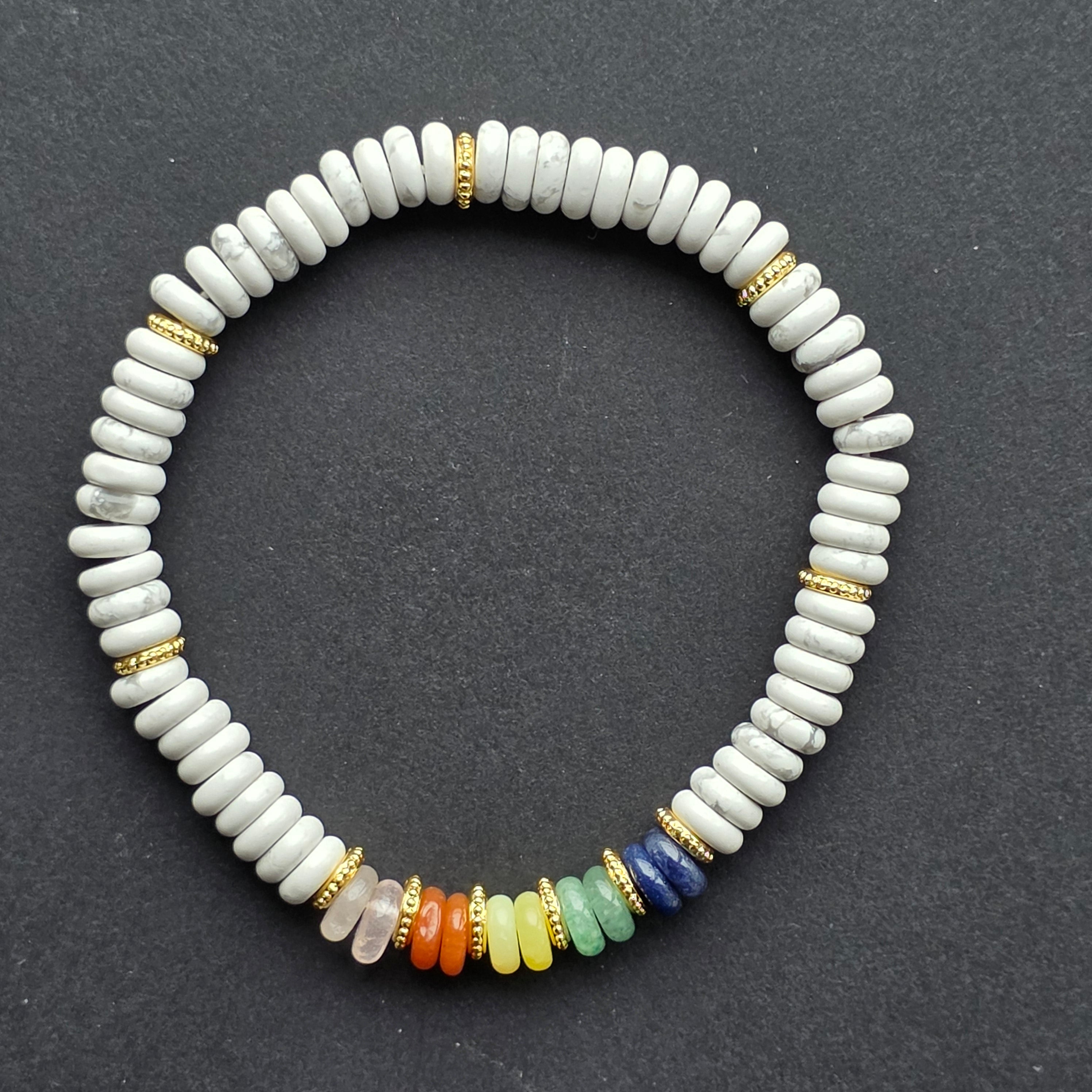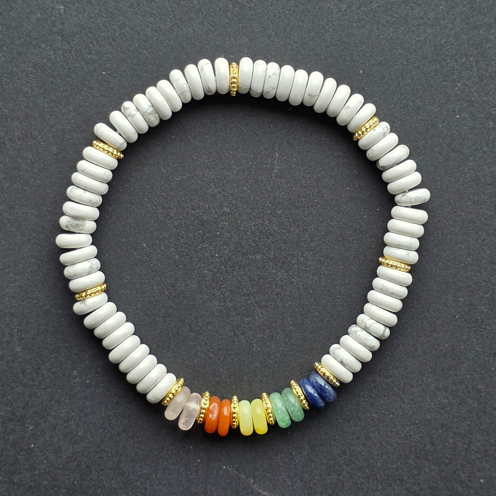 Bratara discuri howlit alb | 7 chakre