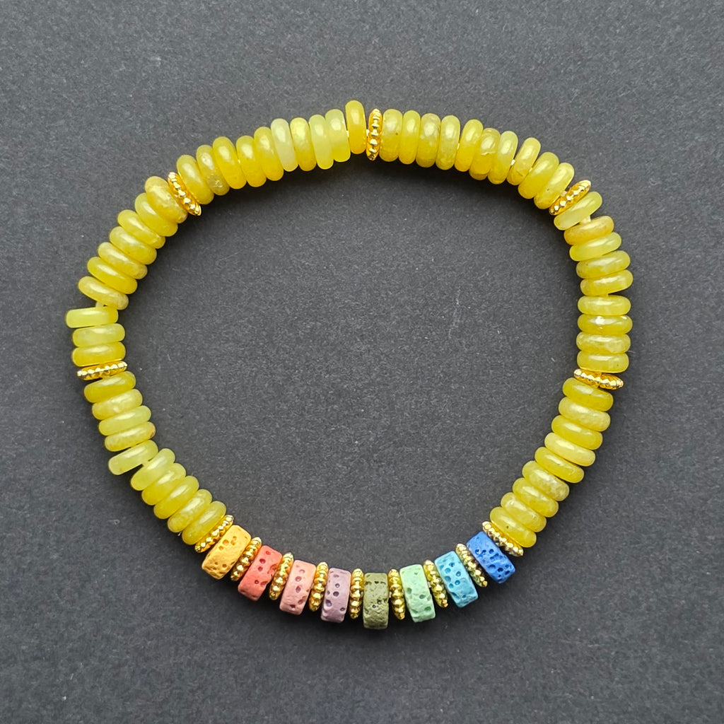 Περιγραφή - Bratara discuri jad galben | 7 chakre