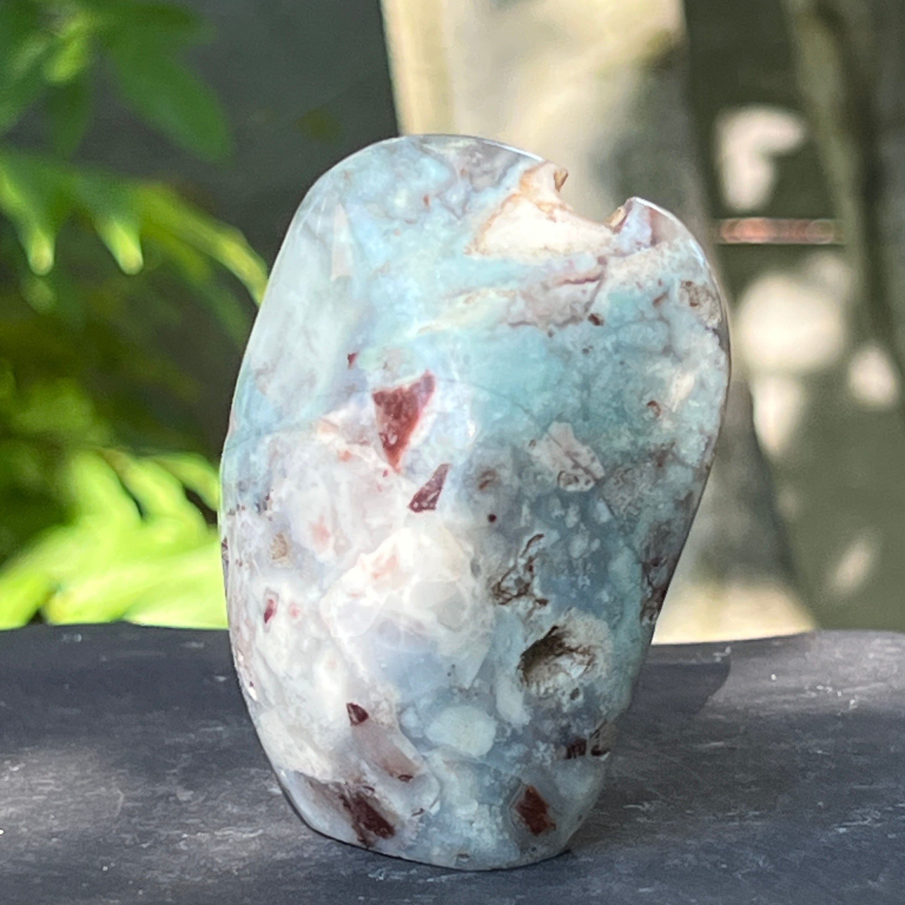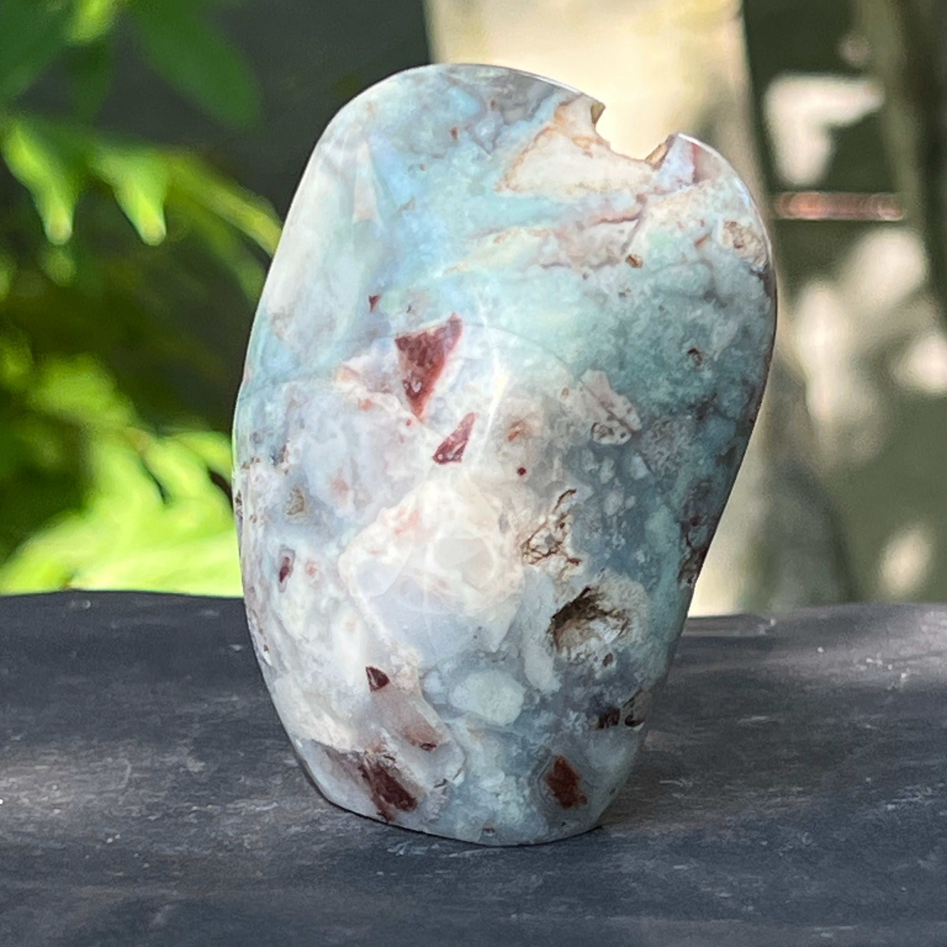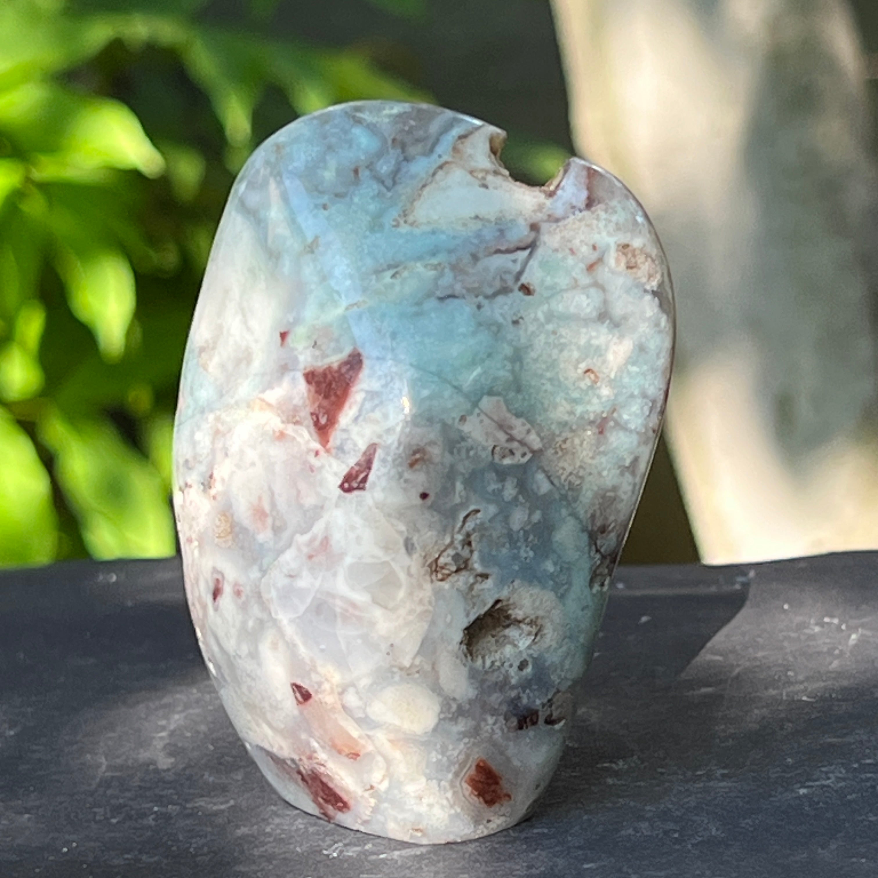 Η υφή του είναι ζωντανή-με τις Γαλαξία φλέβες Calcedon, διακριτά στελέχη και μήτρα σκουριάς-όλες τις μαρτυρίες ενός αργού σχηματισμού, σε ένα πολύπλοκο γεωλογικό περιβάλλον και γεμάτο εντάσεις.
