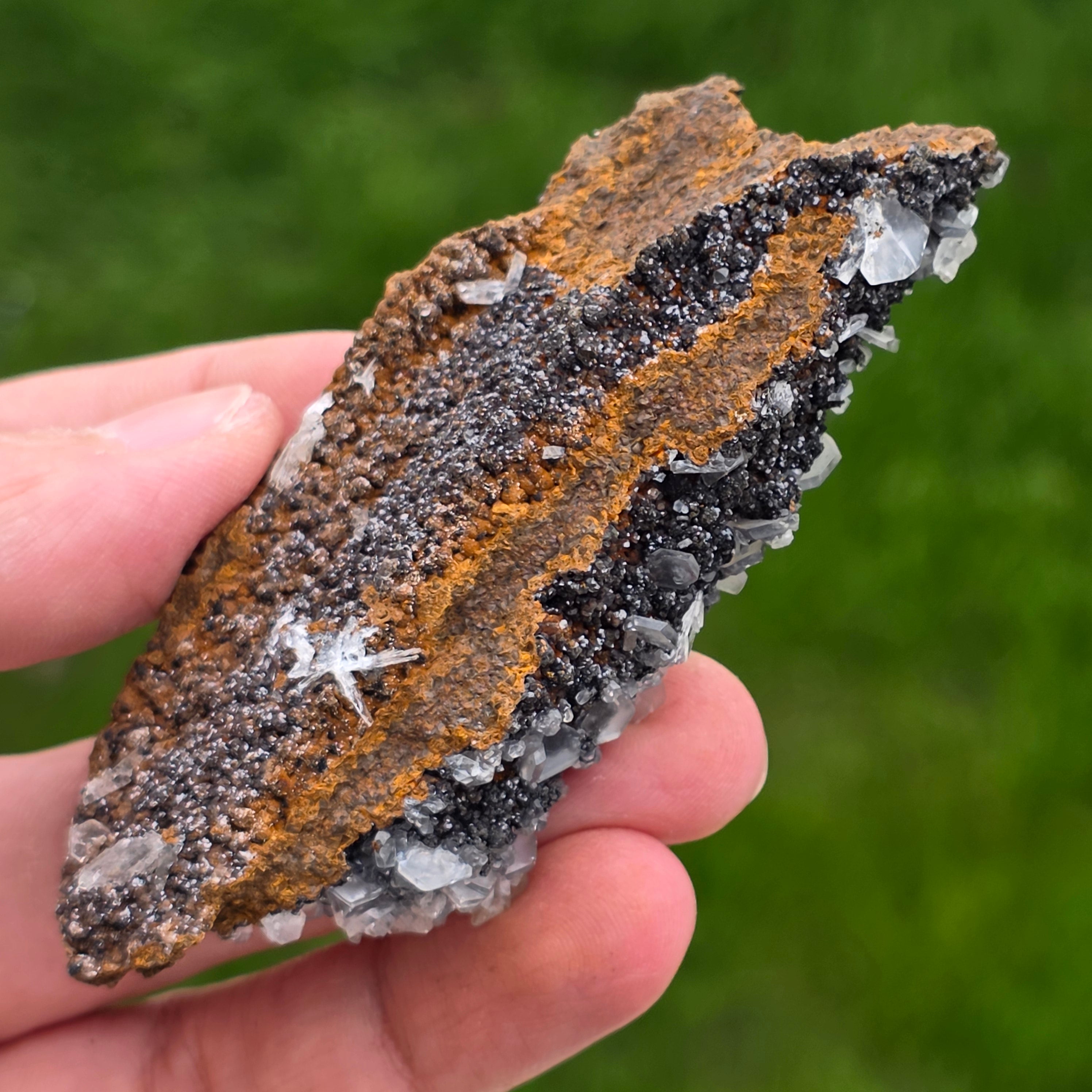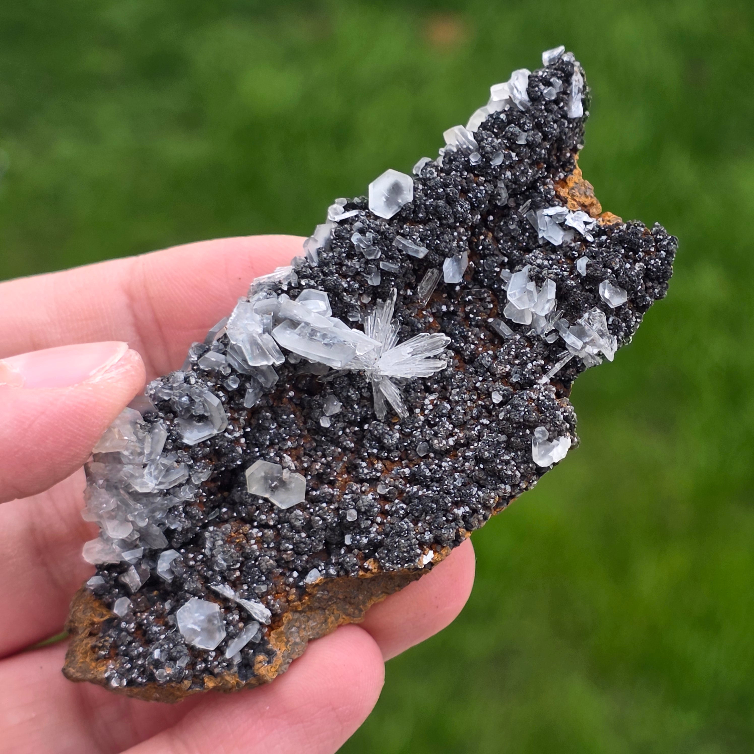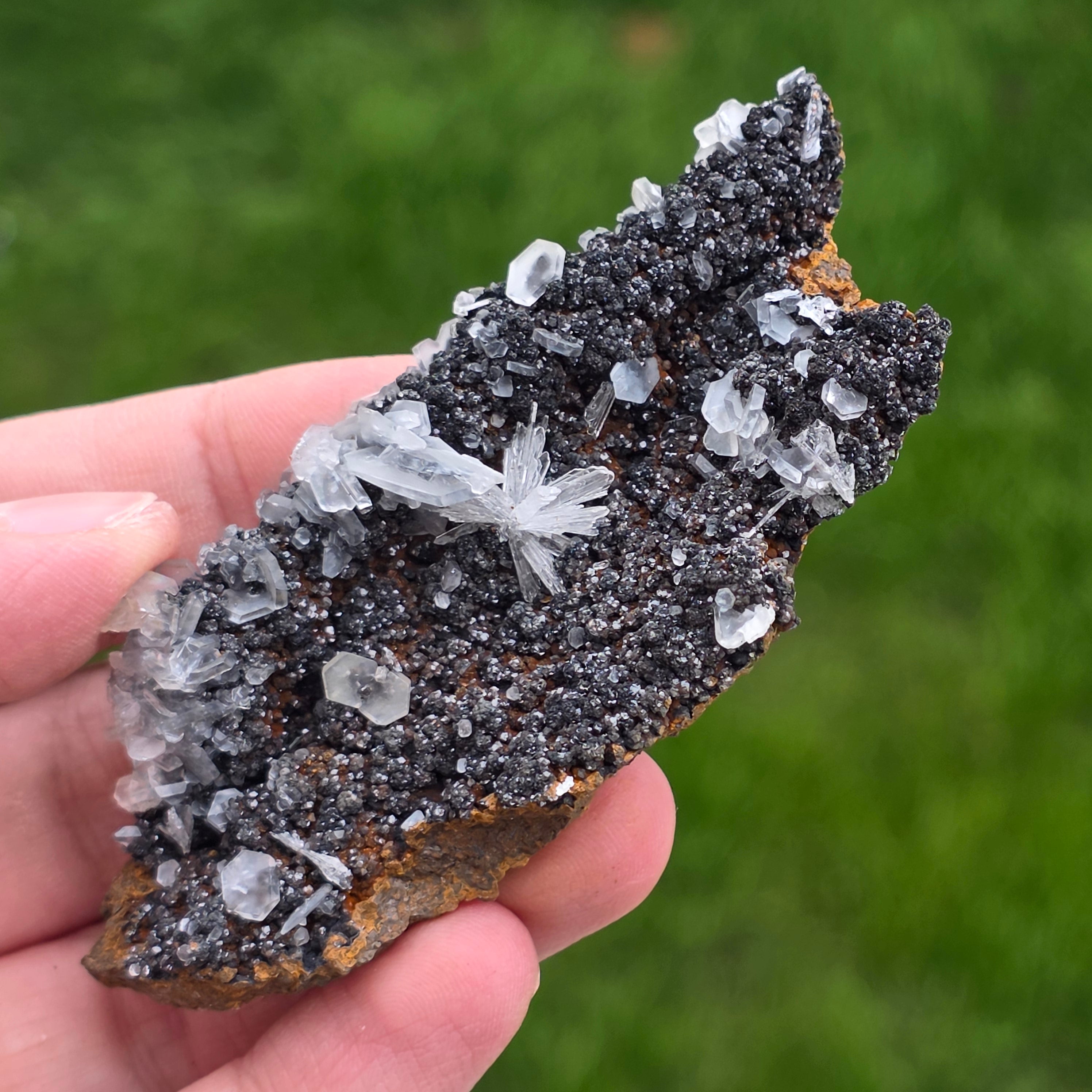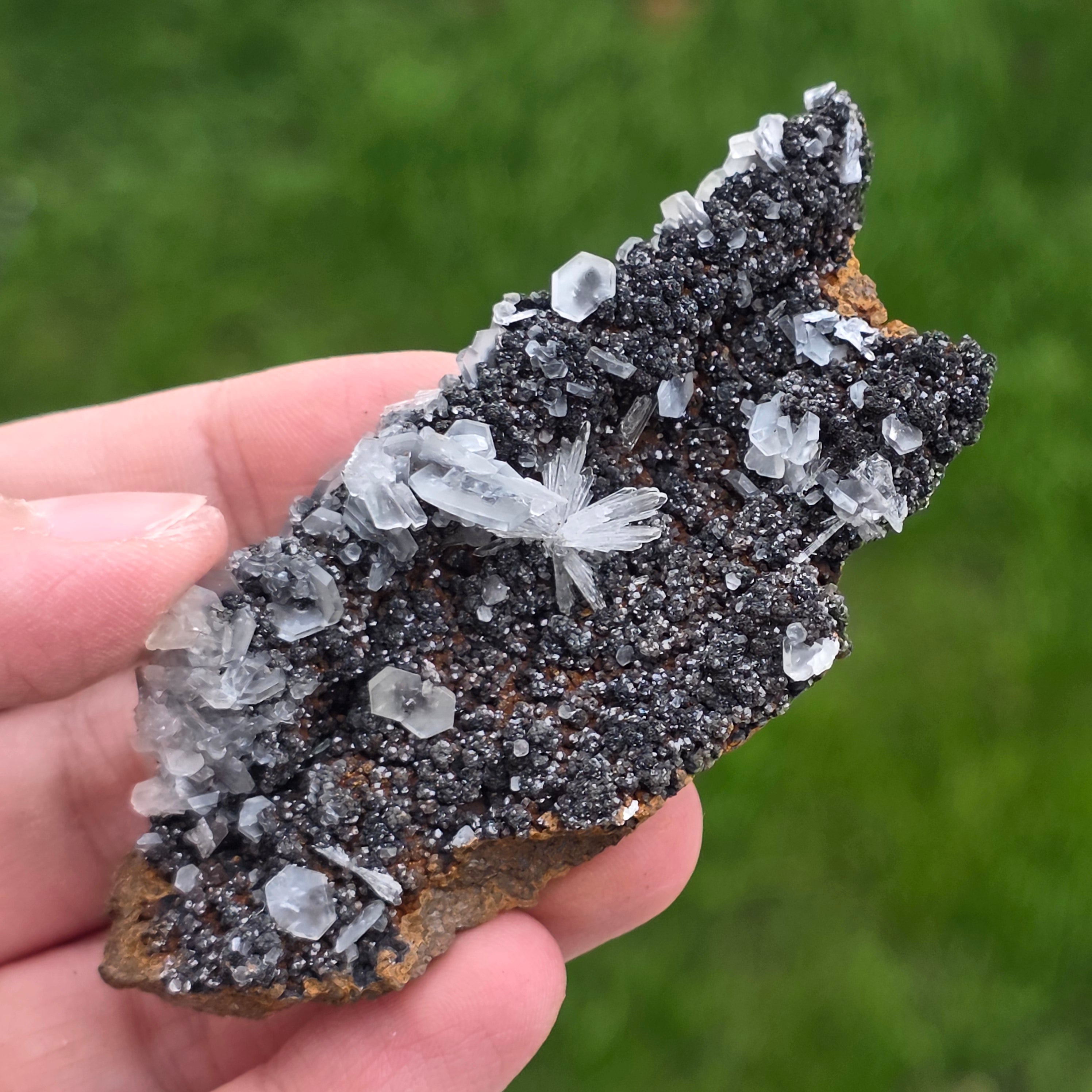 Acest calcit „Mouse Ear” din Mexic, provenit din renumita Mina Ojuela, Mapimí – Durango, este un specimen mineral natural foarte apreciat de colecționari datorită formei sale distinctive, delicate, care amintește de urechile unui șoricel – trăsătură ce a inspirat denumirea consacrată a acestui tip de calcit.