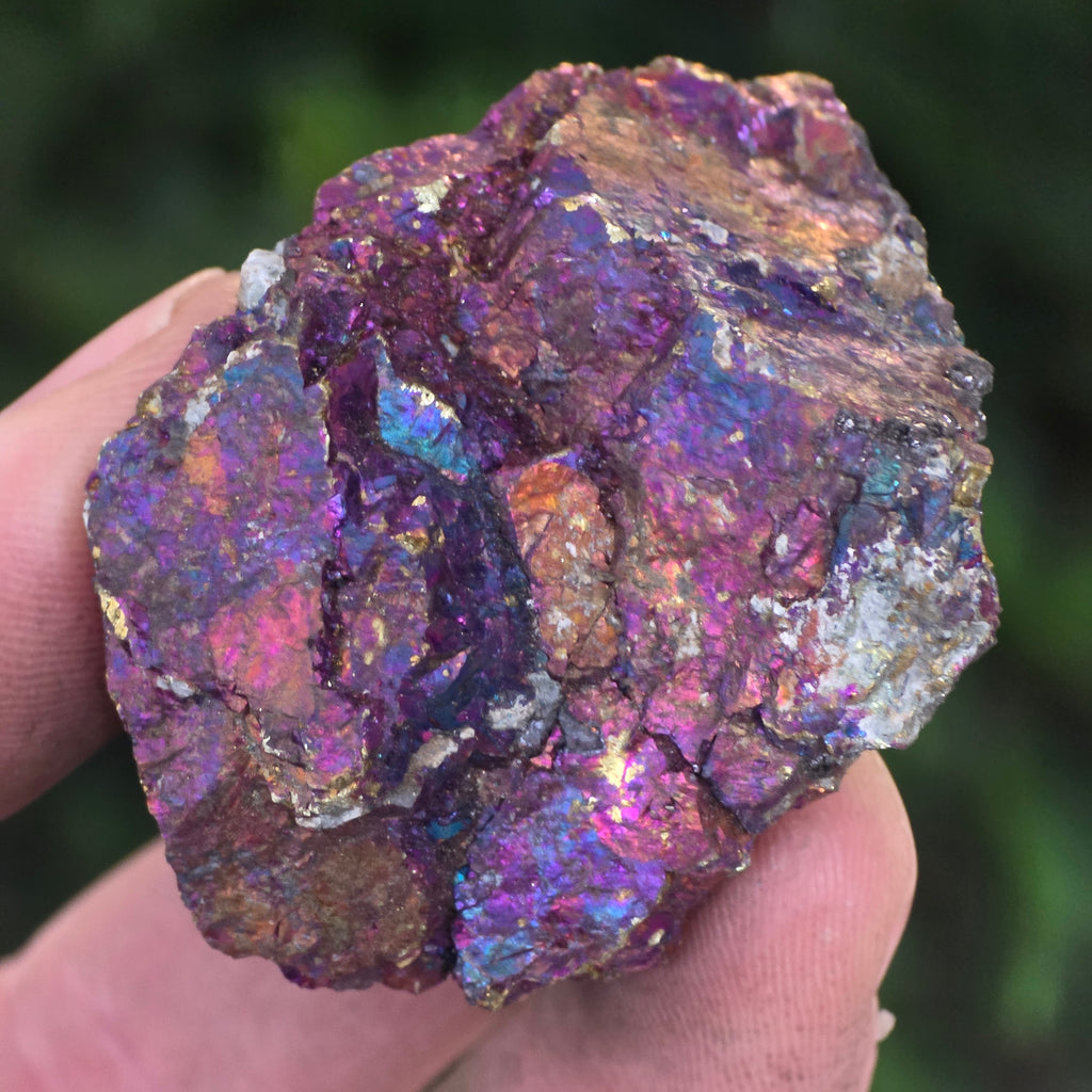 Calcopirita albastră și cea mov sunt asociate cu creșterea spirituală, intuiția și conectarea cu energiile superioare. Se crede că ajută la calmarea minții și stimularea creativității. Nuanțele sale irizate sunt legate simbolic de echilibru și armonie.