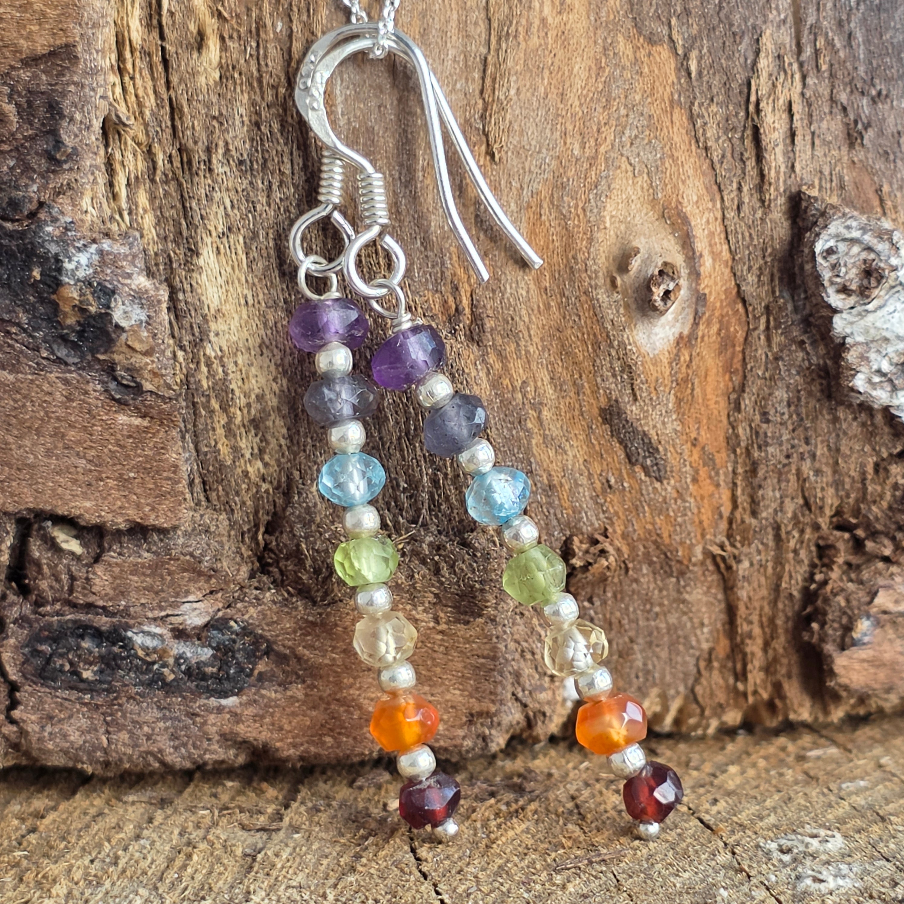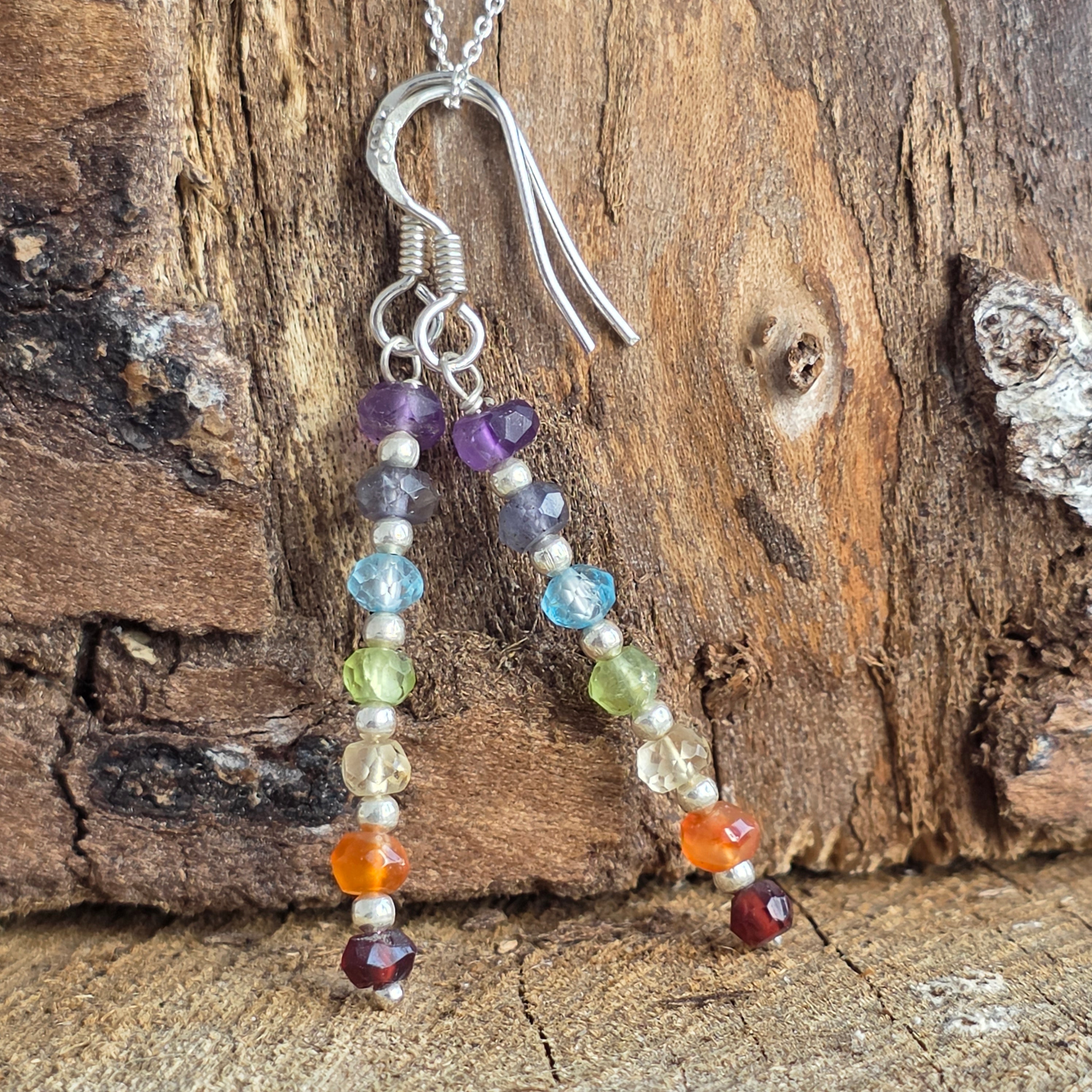 • Design: compoziție verticală cu 7 pietre colorate, separate de mici bile din argint