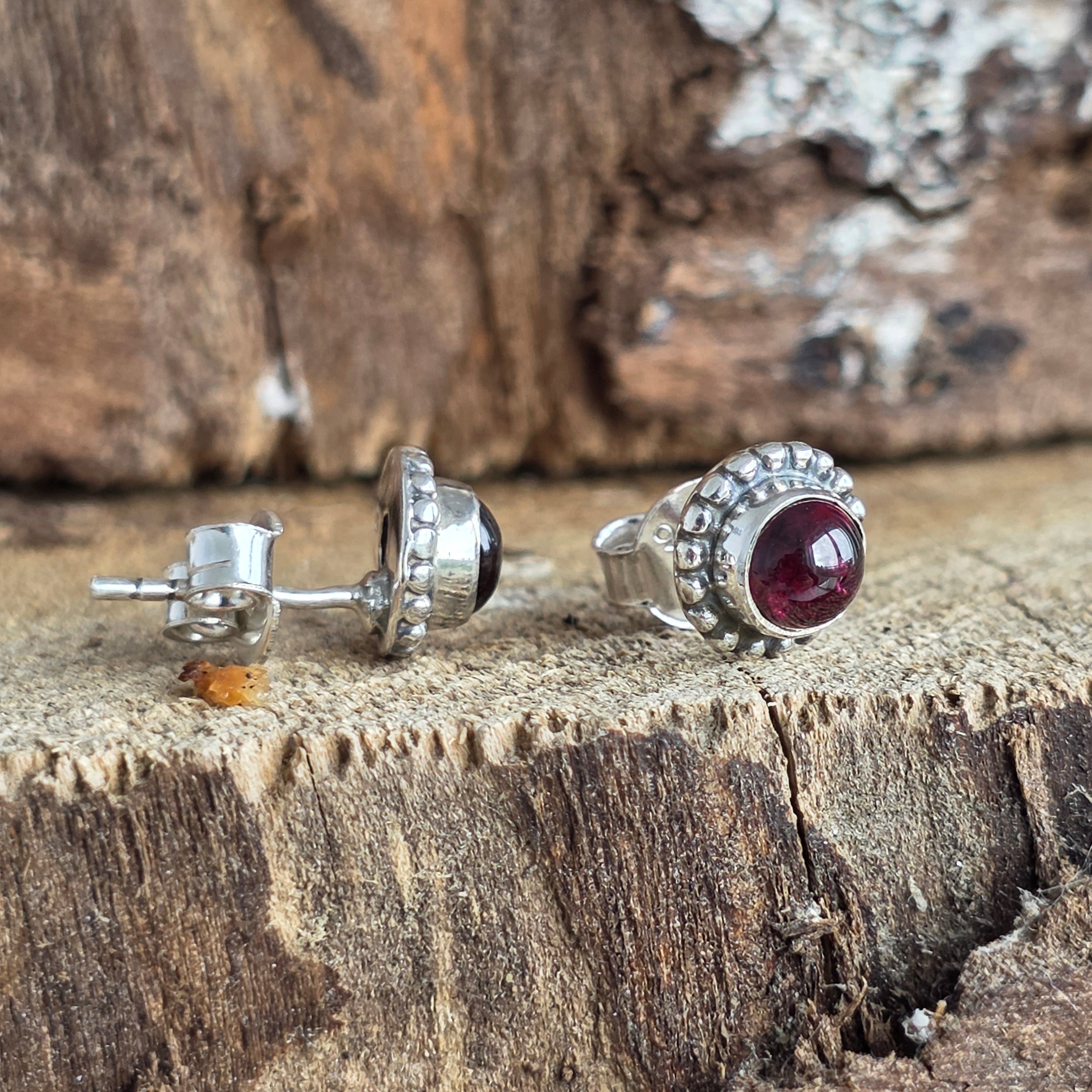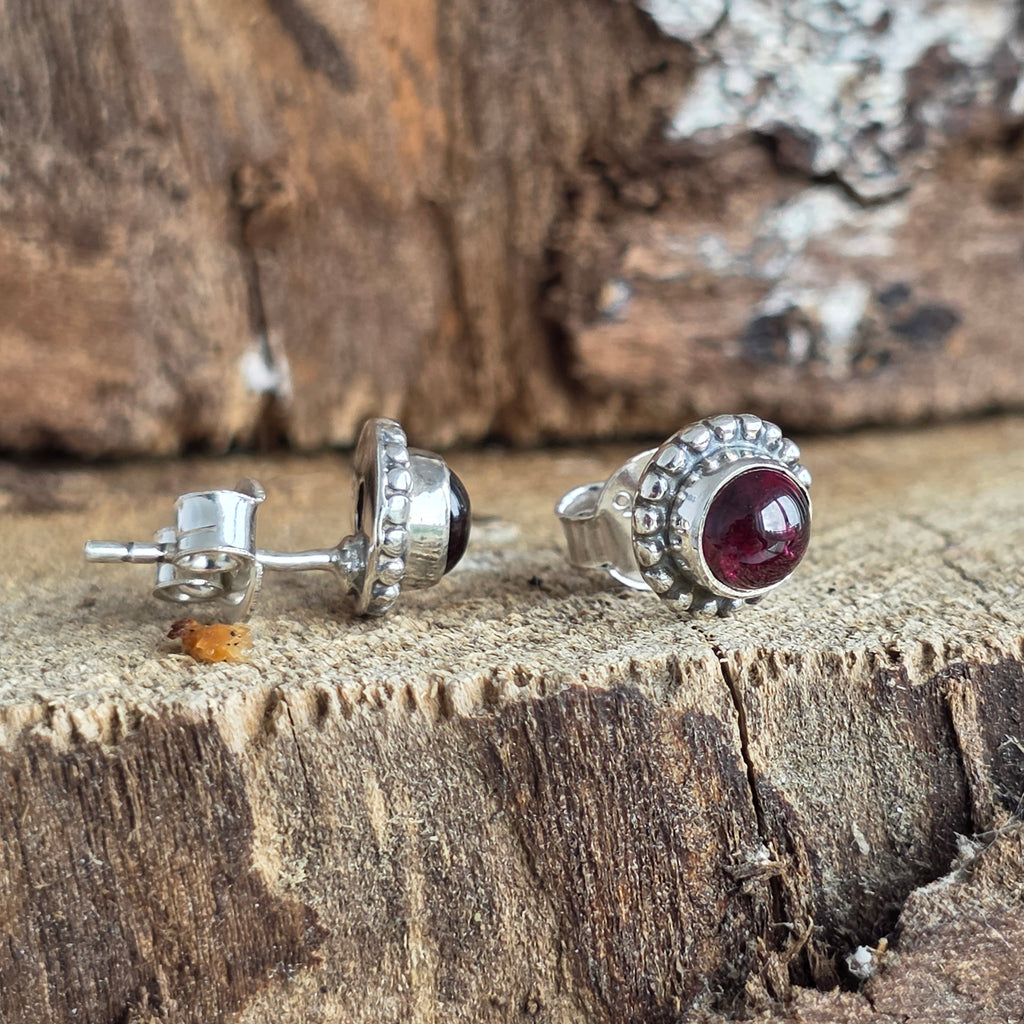 • Piatra: granat natural (nuanță roșu-rubiniu intens, translucid)