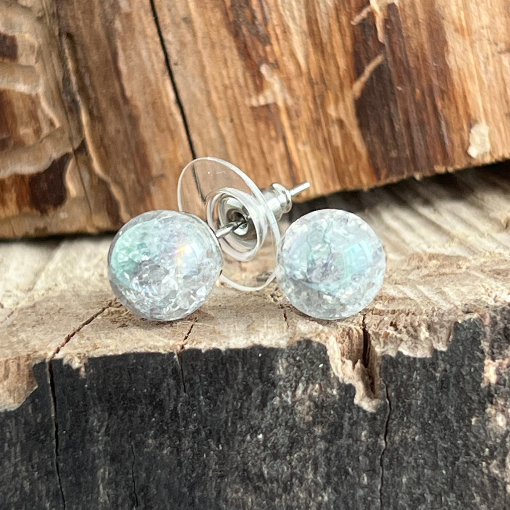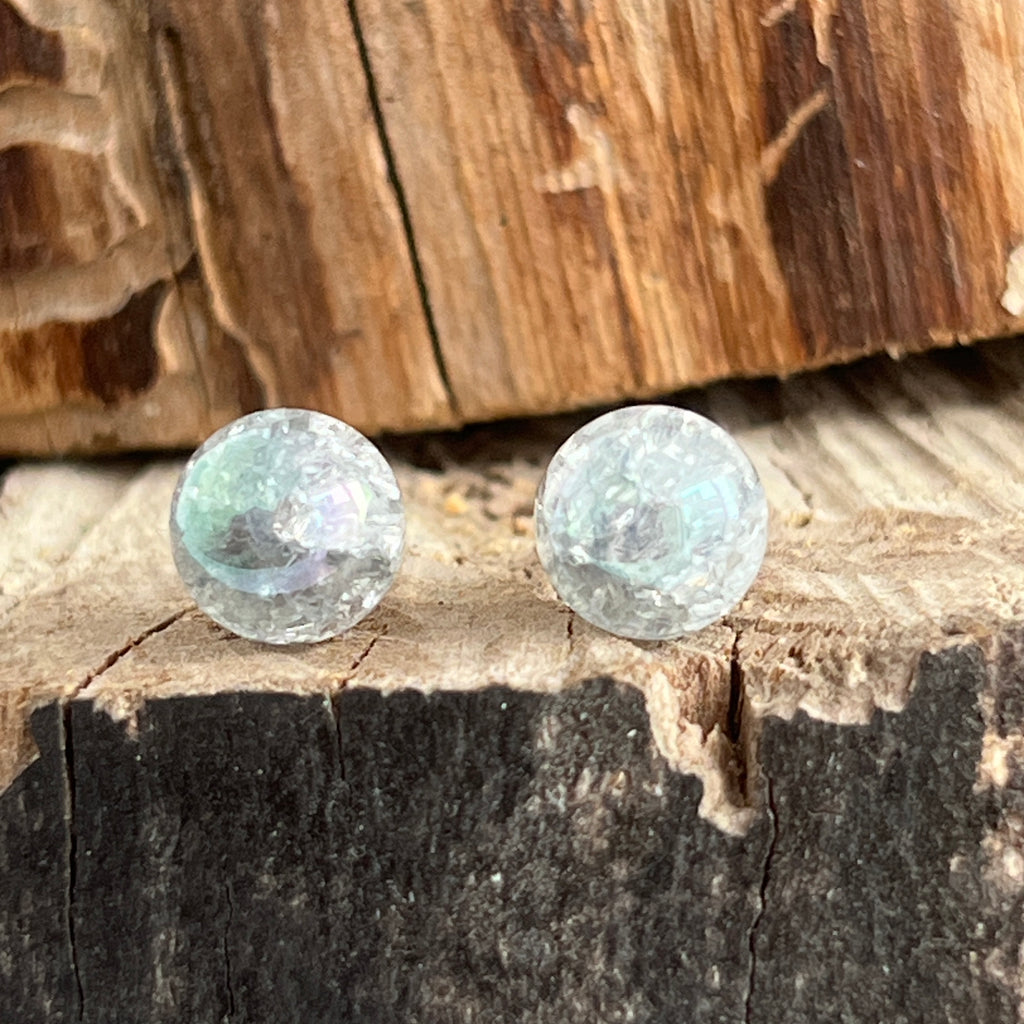 Περιγραφή - Cercei stud sfere cuart aura CRUSHED