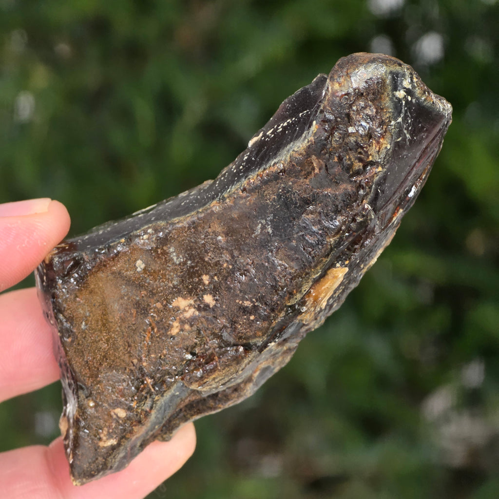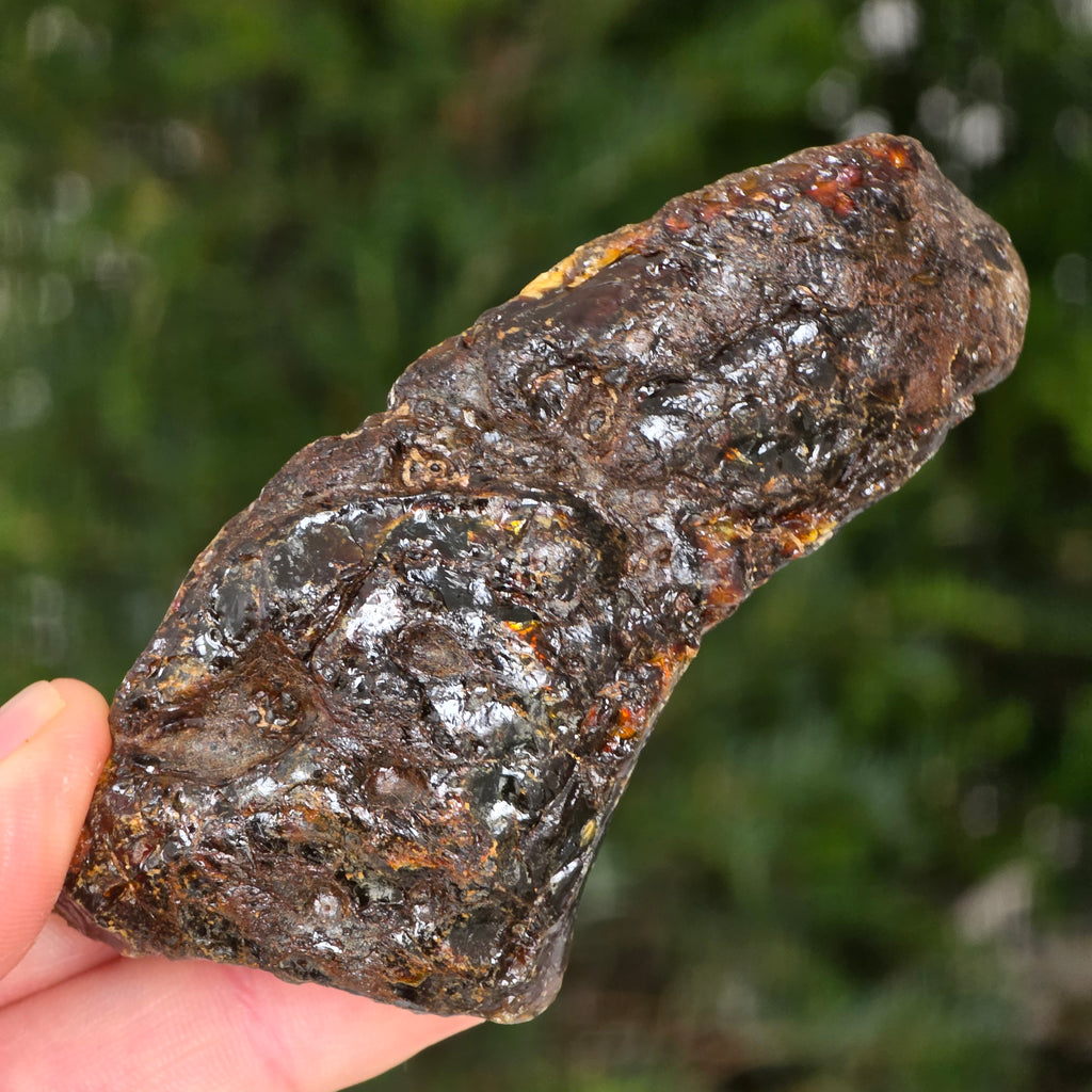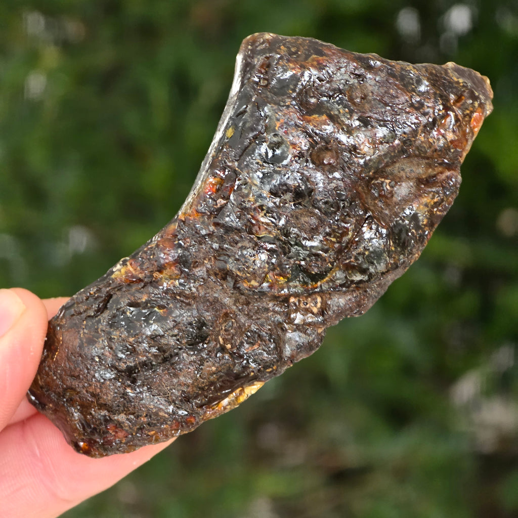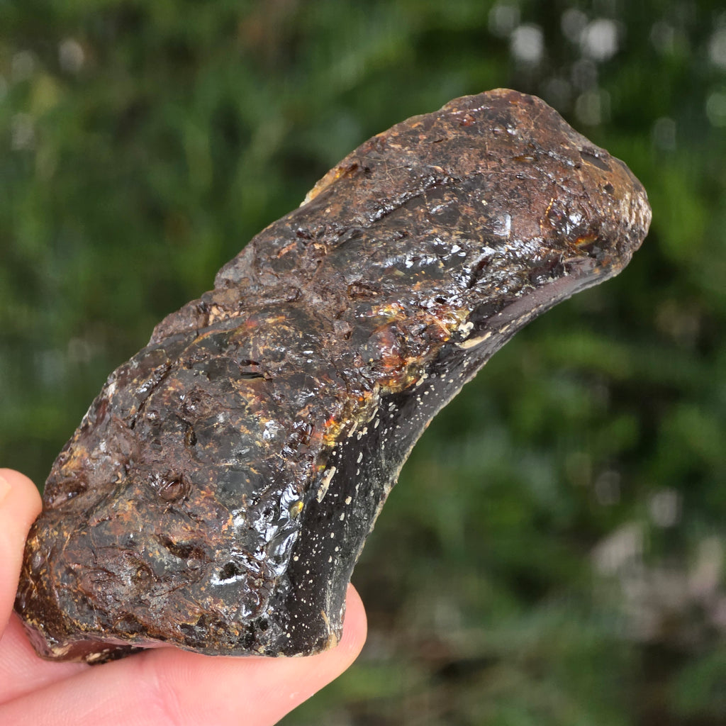 Φυσικό απολιθωμένο ακαθάριστο δείγμα κεχριμπάρι, από την περιοχή της Σουμάτρας, την Ινδονησία-μία από τις λίγες ενεργές πηγές κεχριμπάρι στη Νοτιοανατολική Ασία. Αυτή η τροπική περιοχή είναι γνωστή για τα εδάφη της πλούσια σε οργανικά ιζήματα και έντονη γεωλογική δραστηριότητα, ιδανικές συνθήκες για το σχηματισμό κεχριμπάρι.
