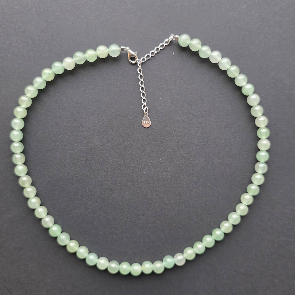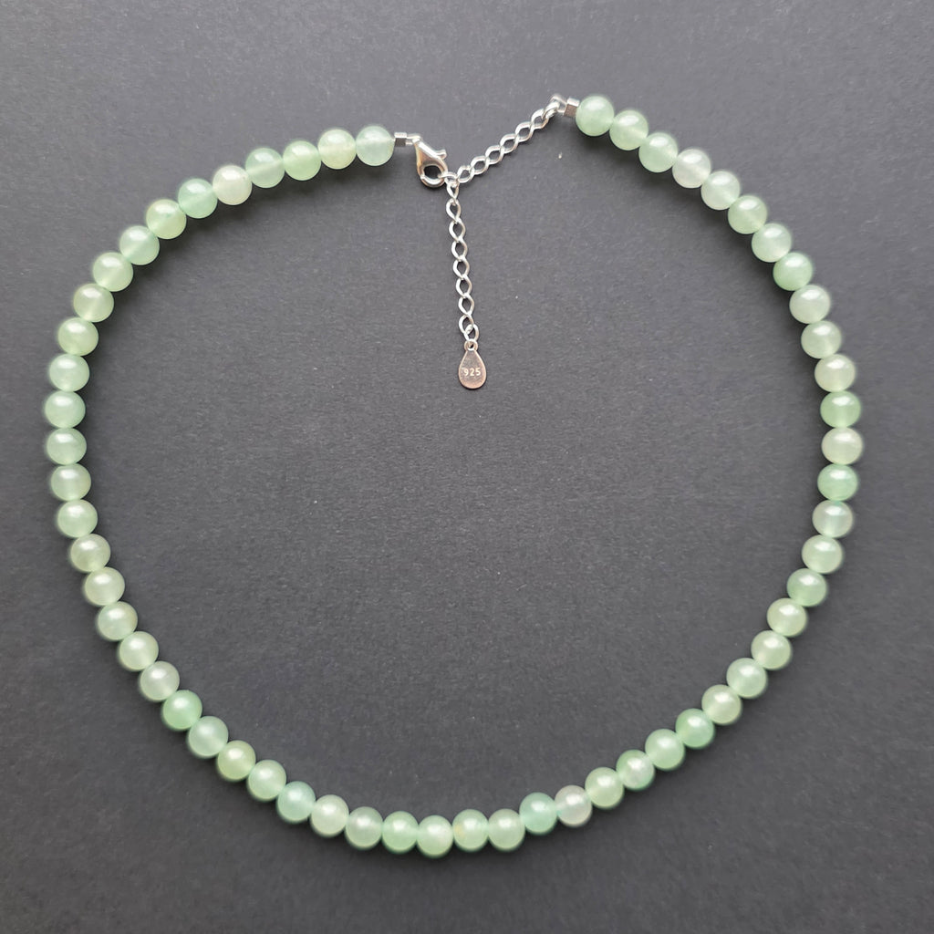 Un colier care poartă energia prospețimii și a norocului blând. Aventurinul verde natural de 6 mm radiază o lumină calmă și echilibrată, evocând frunzele tinere și liniștea naturii după ploaie. Suprafața netedă și lucioasă a pietrelor oferă o senzație de armonie vizuală, iar argintul 925 completează perfect designul cu o notă elegantă.