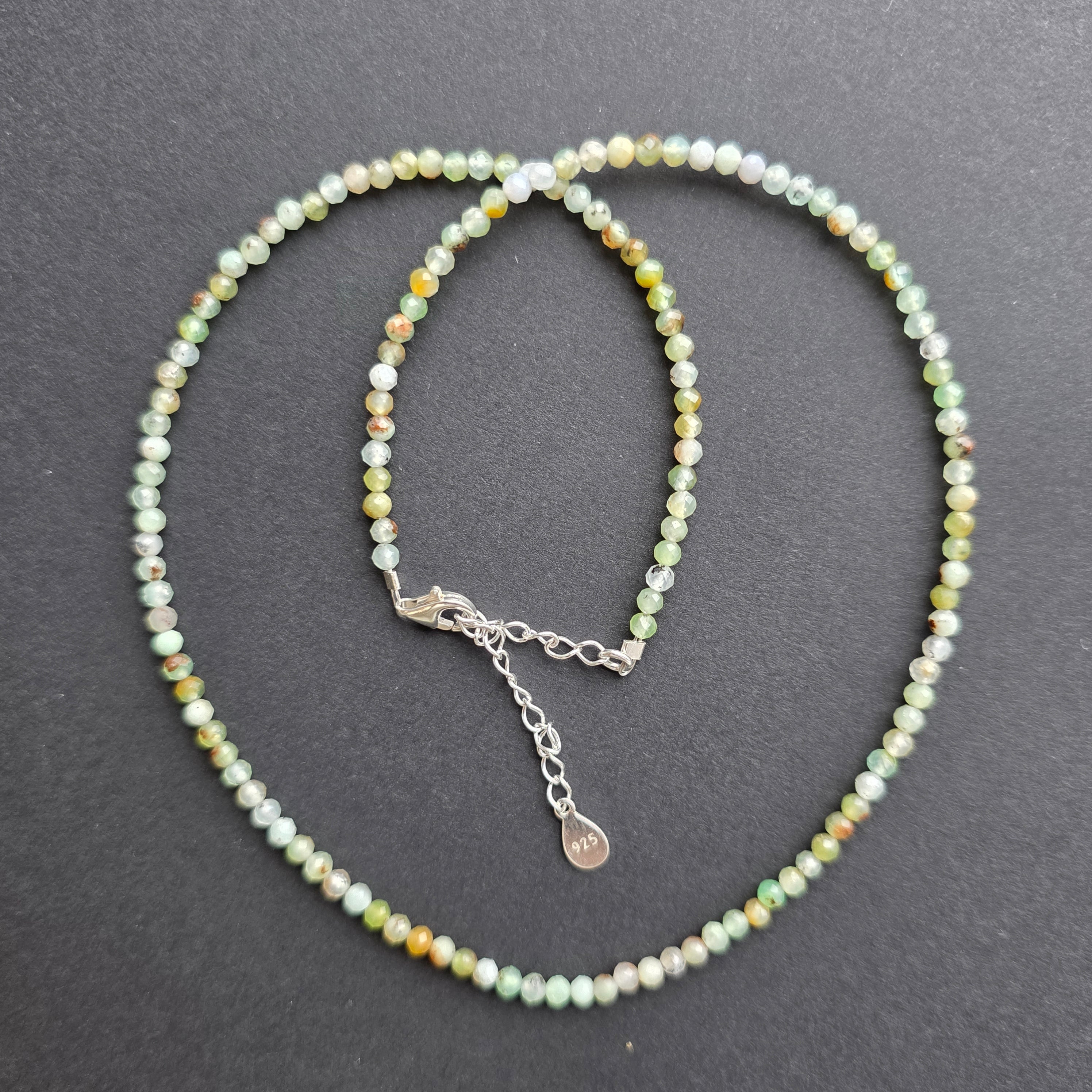 Materiale: crisopraz natural fațetat 3 mm, argint 925