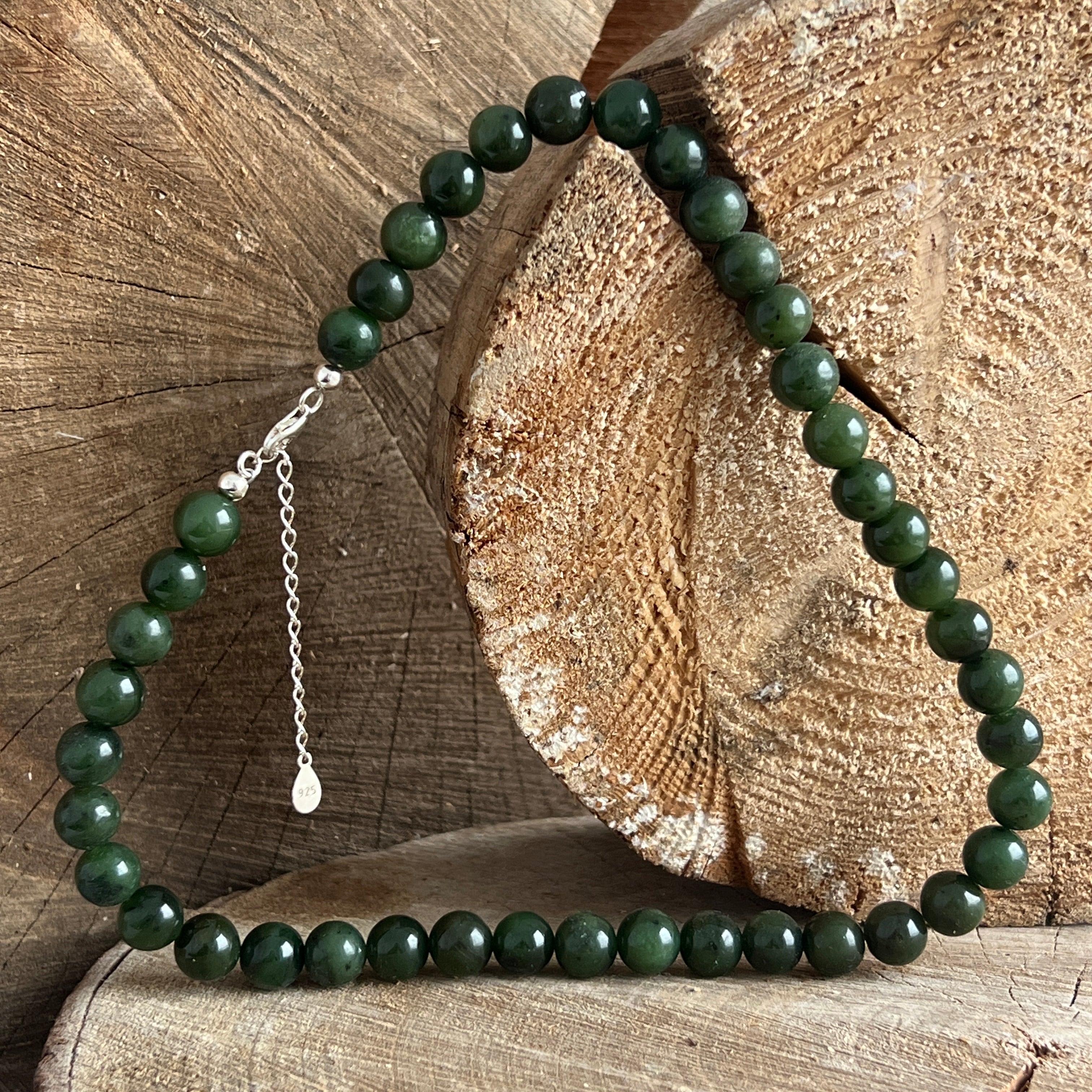 Ένα κολιέ με παρουσία, δύναμη και σιωπηλή ευγένεια - που δημιουργήθηκε από χάντρες στρογγυλής νεφρίτη Jade των 10 mm, το καθένα μετέφερε στο βάθος της την ήσυχη αναπνοή της φύσης και της παράδοσης.