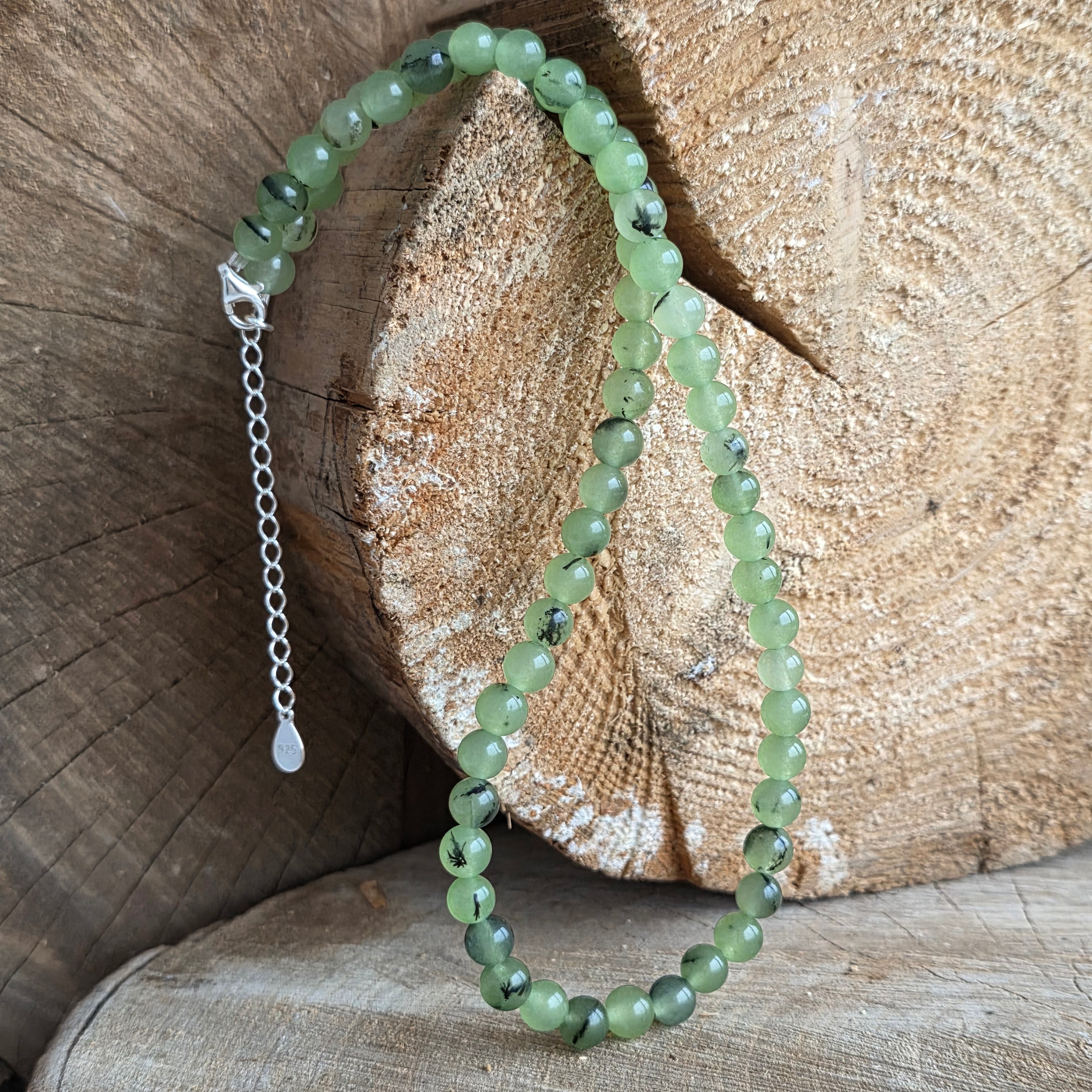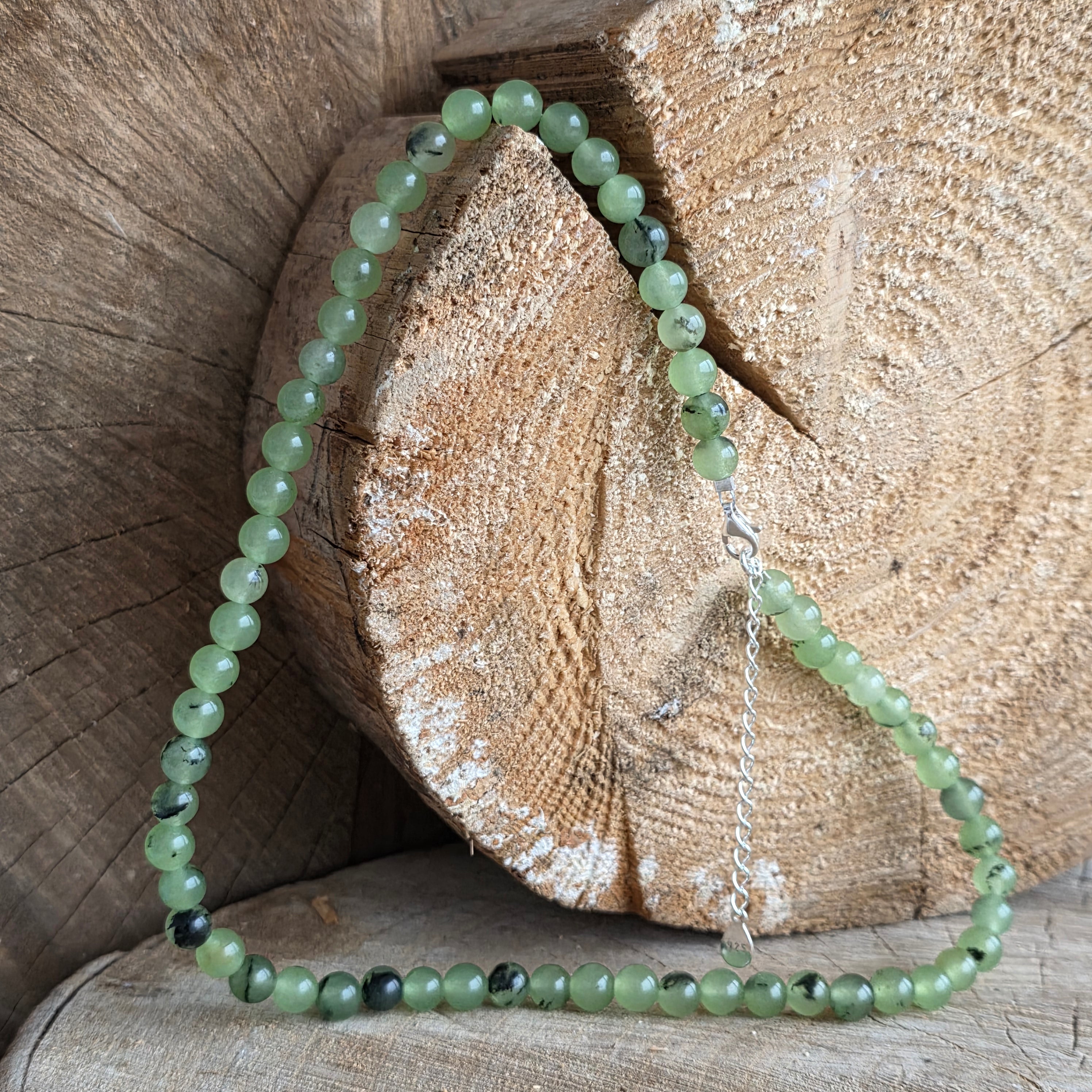 Un colier cu prezență, putere și noblețe tăcută – creat din mărgele rotunde de jad verde nefrit de 6 mm, fiecare purtând în profunzimea sa suflul liniștit al naturii și al tradiției.