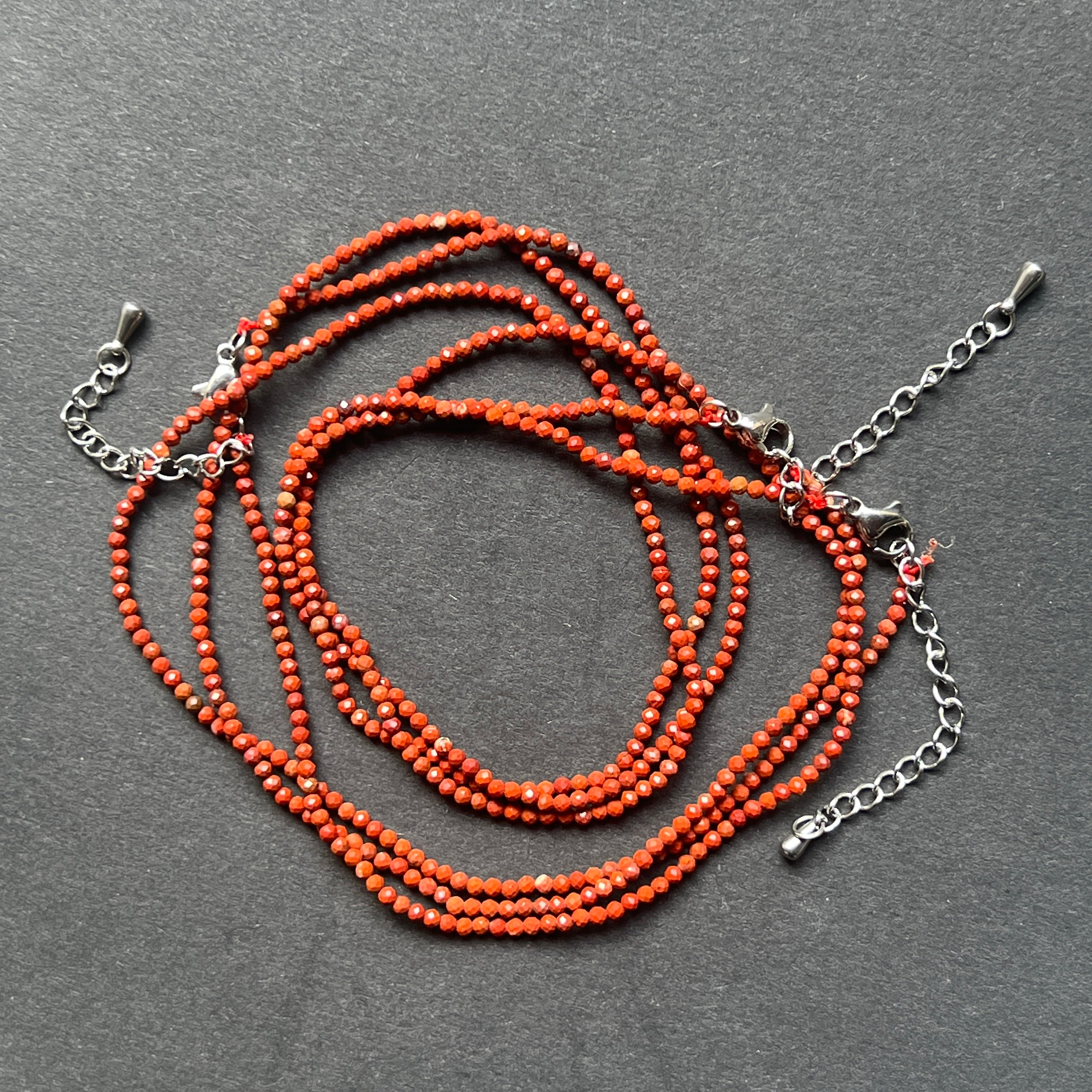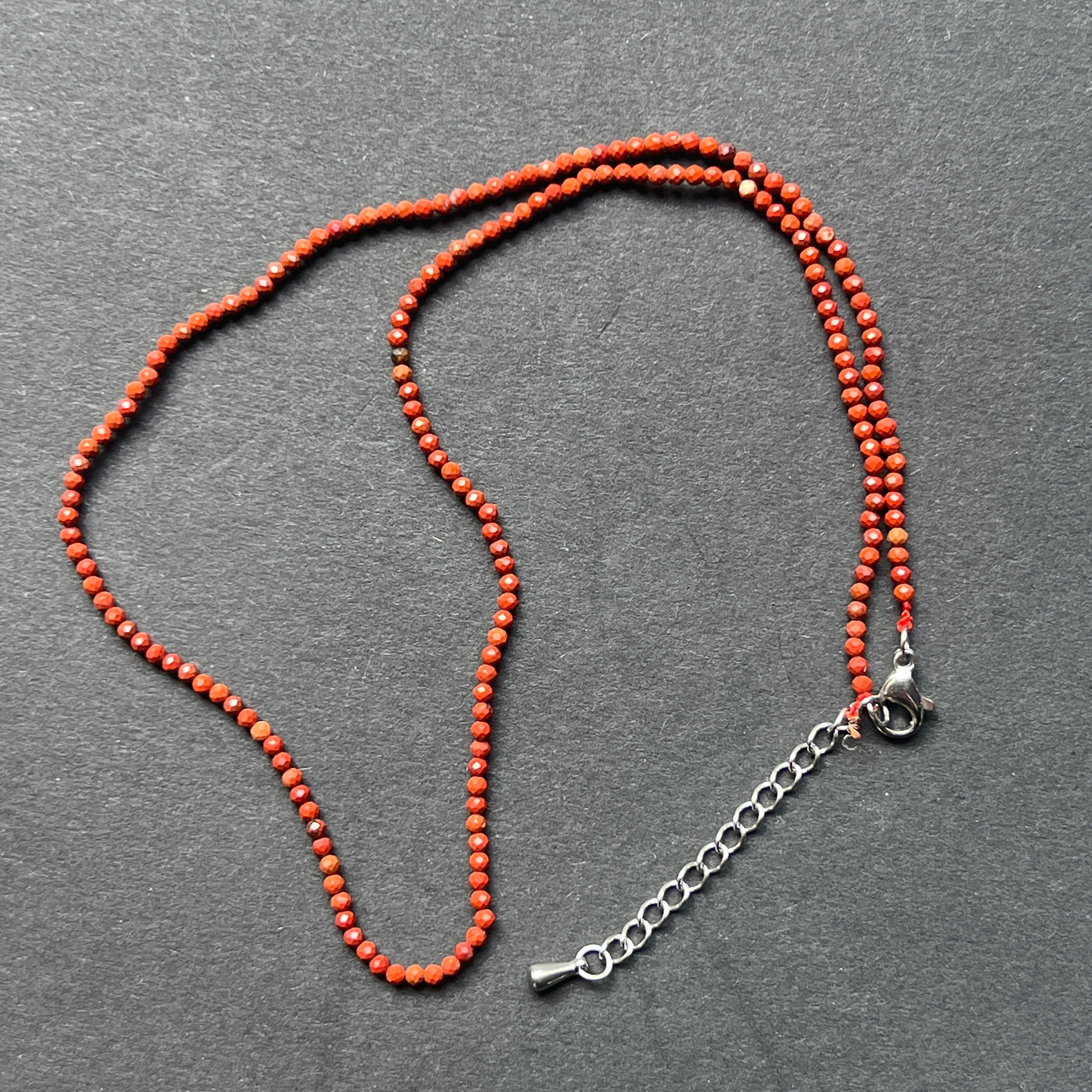 Κολιέ Red Jasp 2 mm σφαίρες, μέγεθος: 38 + 5 cm (αλυσίδα επέκτασης)