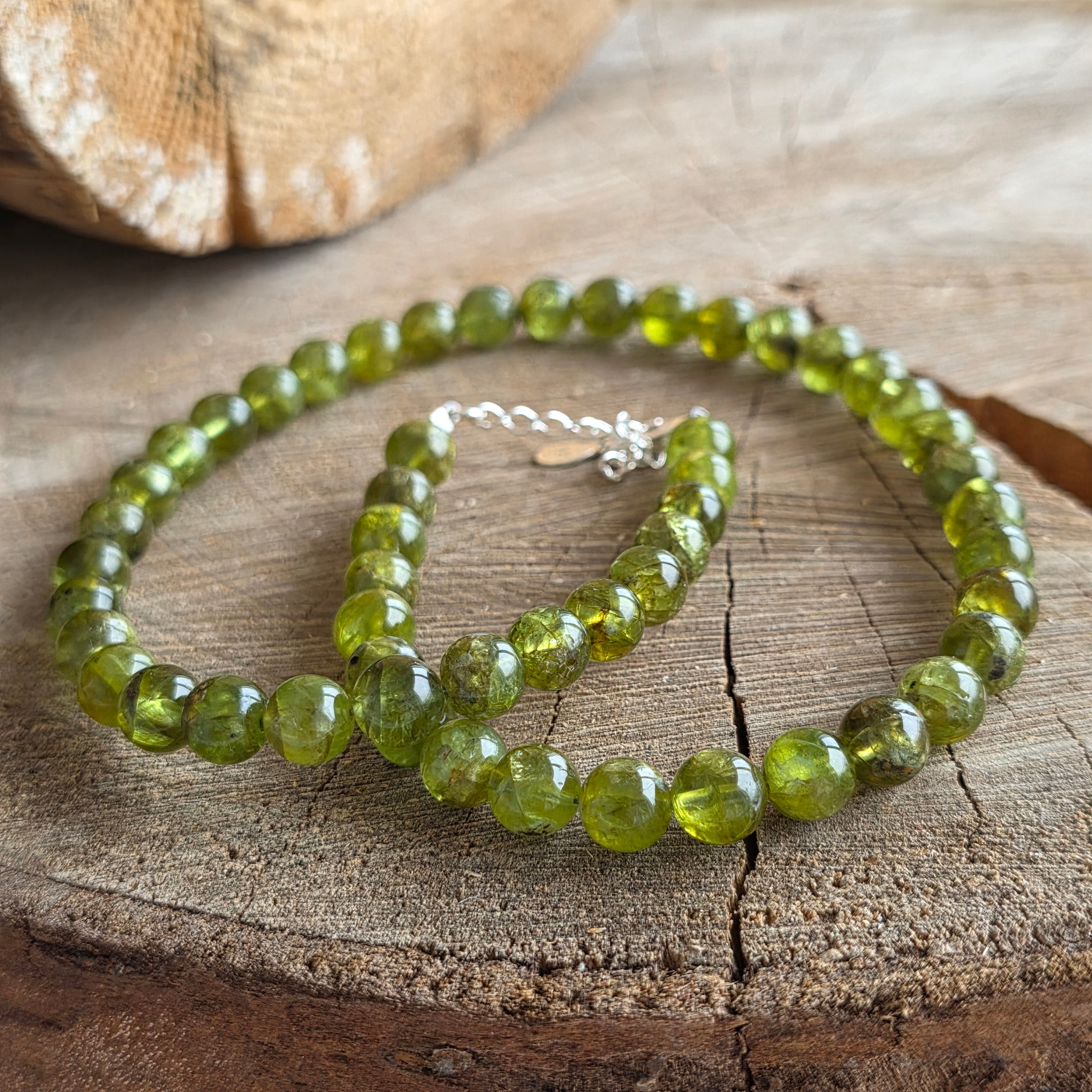 Materiale: peridot natural, calitate AAA, sfere 8 mm, argint 925