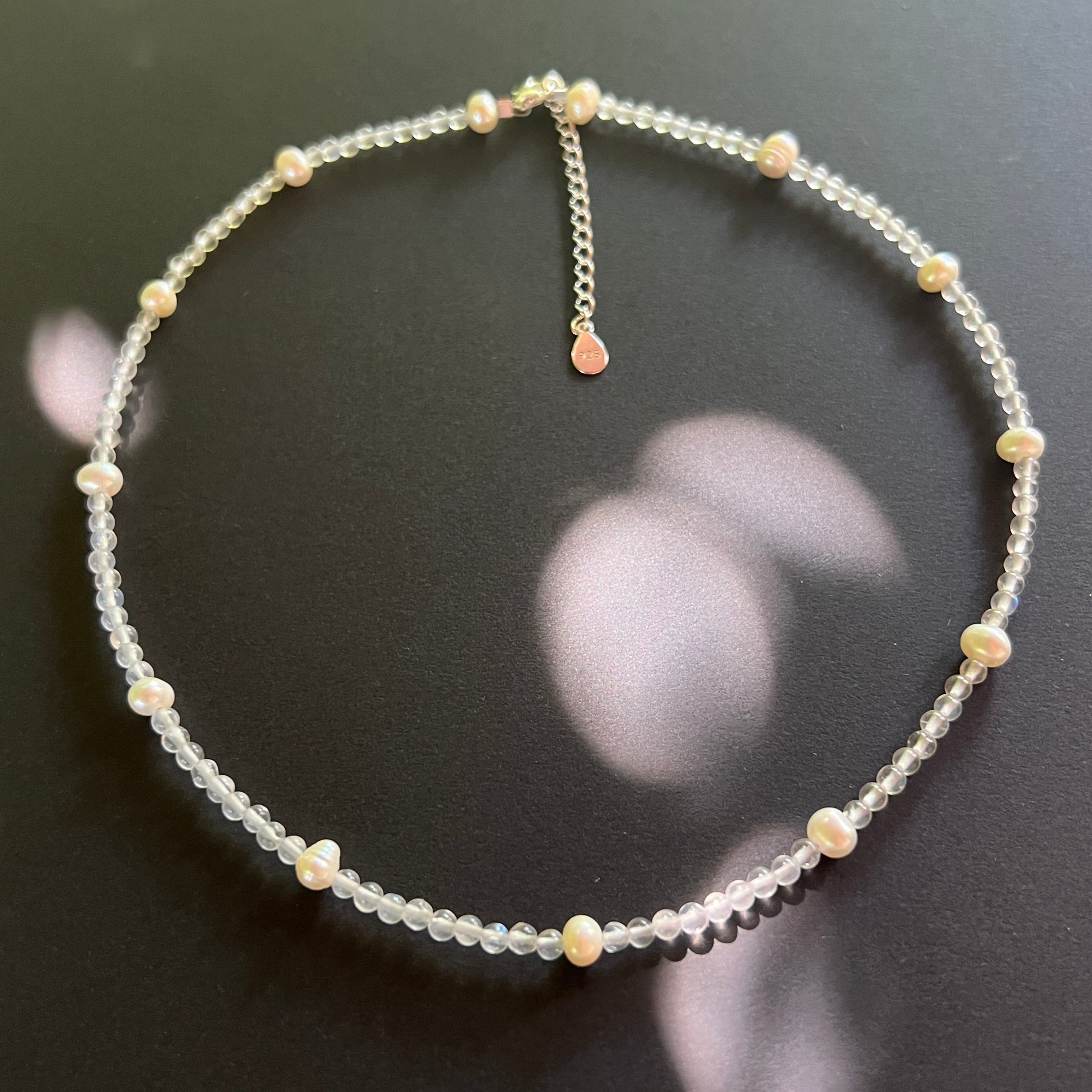 Ένα κολιέ σαν ένα ημιδιαφανές ψίθυρο - λεπτό, ήρεμο και γεμάτο εσωτερικό φως.