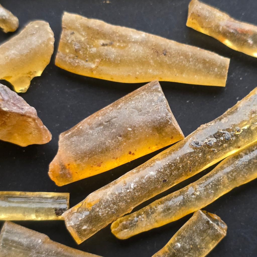 Copalul, adesea numit și rășină subfosilă, este forma timpurie a chihlimbarului – o rășină naturală care și-a păstrat lumina solară și transparența, înainte de a intra în adevărata fosilizare geologică. Provenit din arbori tropicali, acest material delicat poartă în el memoria câtorva secole sau milenii, captând fragmente din viața pădurii așa cum existau cândva. Este mai ușor, mai cald la atingere și mai luminos decât chihlimbarul matur, iar aspectul său suav îl face ideal pentru colecționari, creatori de bijuterii și iubitori de piese naturale cu poveste. În copal, timpul nu este încă piatră – este încă lumină, încă mișcare, încă promisiune.