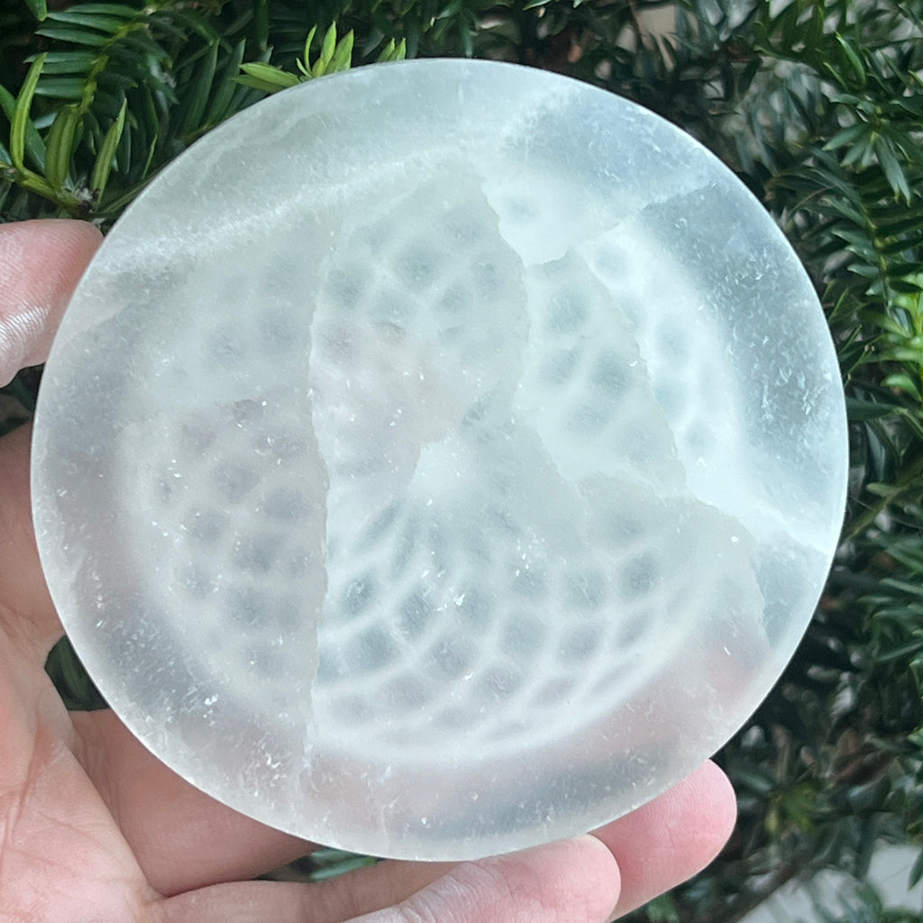 Discul Thorus din selenit natural este o reprezentare armonioasă a energiei sacre a vieții. Forma sa circulară, ce evocă simbolul toroidal, reflectă fluxul continuu al energiei universale – curgerea fără început și fără sfârșit dintre lumină și materie.