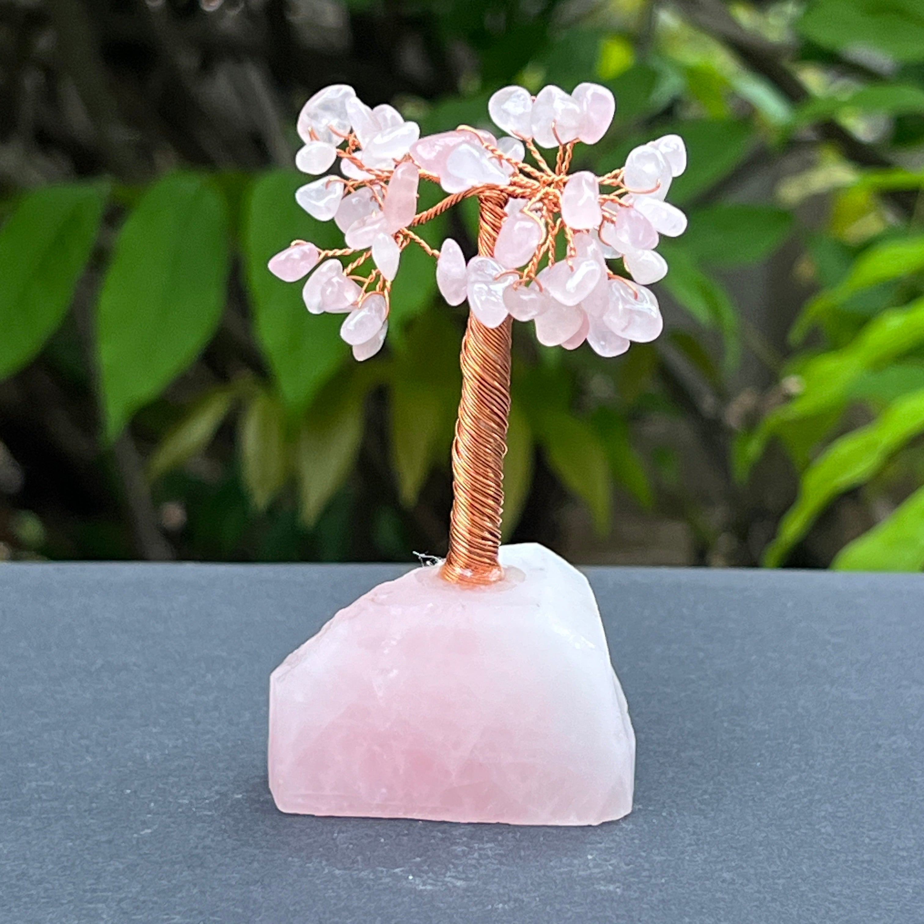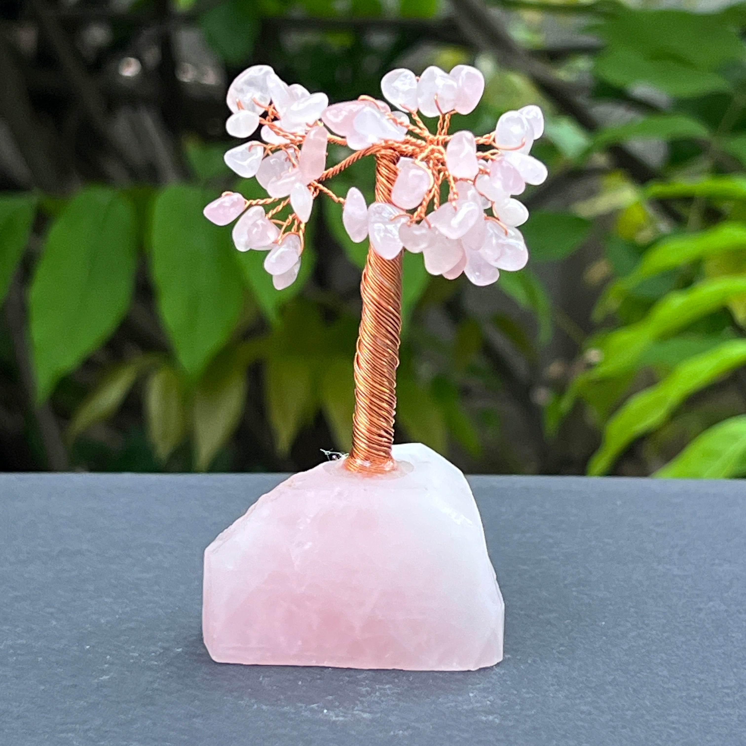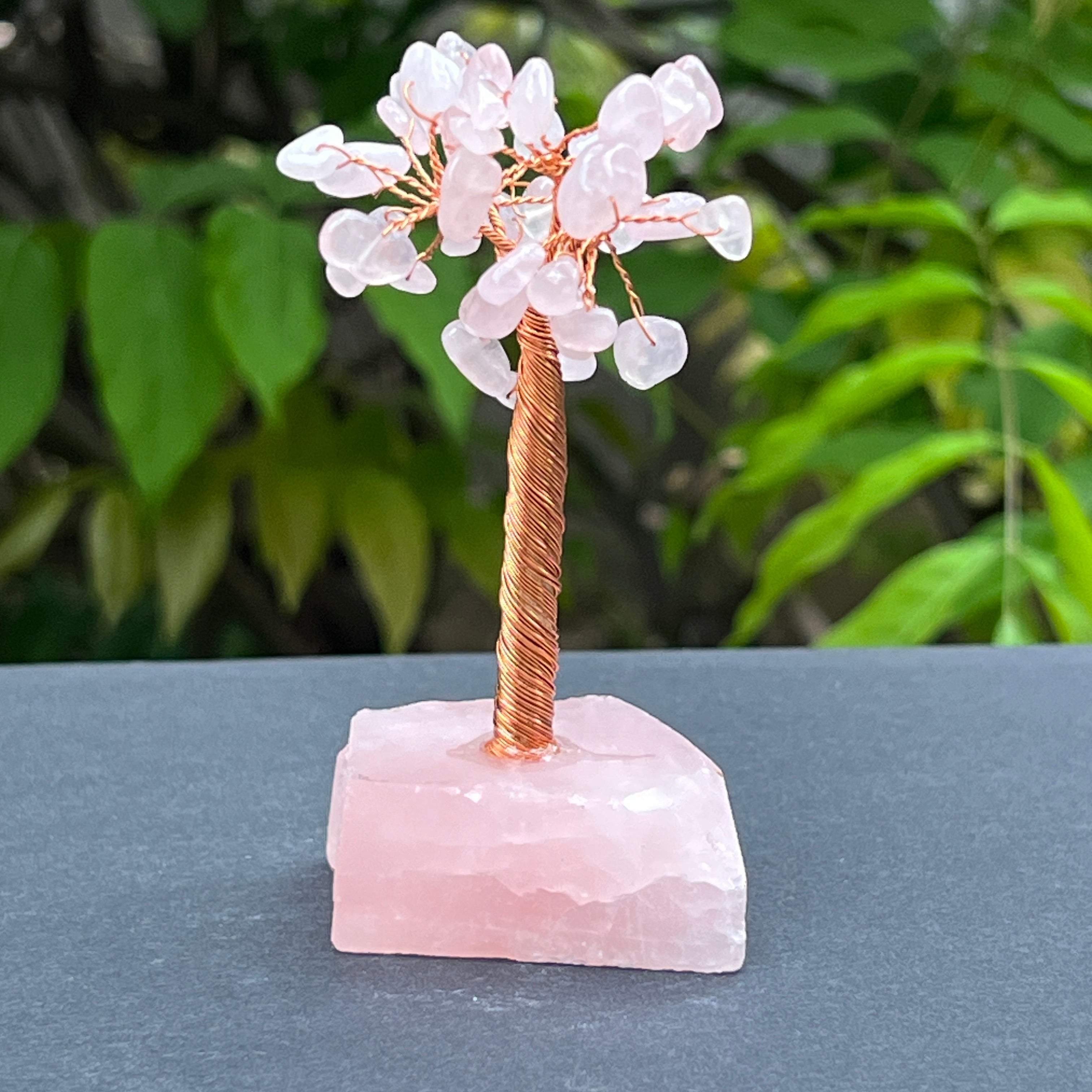 Ένα λεπτό σύμβολο της αγάπης, της ευγένειας και της συναισθηματικής ισορροπίας, αυτό το δέντρο Feng Shui είναι χειροκίνητα κατασκευασμένο από φυσικούς κρυστάλλους ροζ χαλαζία, τόσο στα φύλλα όσο και στη σταθερή βάση του. Τα κλαδιά στριμμένα από χαλκός Συμπληρώνει αρμονικά τη σύνθεση, ενισχύοντας τη λεπτή ενέργεια της πέτρας και φέρνοντας μια επιπλέον οπτική και ενεργειακή ζωτικότητα.