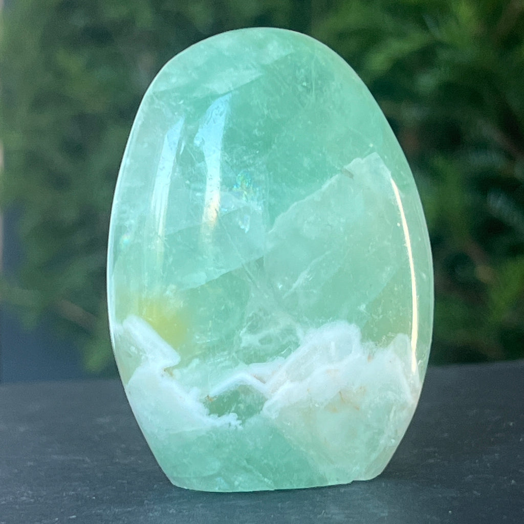 Fluoritul curcubeu ajuat la echilibrarea si armonizarea energiei din jur si este de multe ori folosit pentru a vedea situatiile din mai multe unghiuri de vedere si a ne extinde perspectivele.