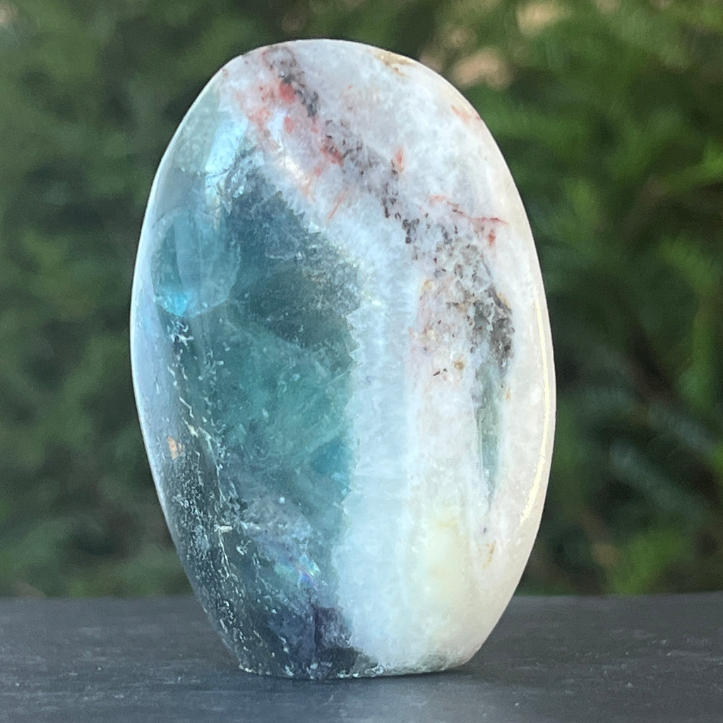 Fluoritul curcubeu ajuat la echilibrarea si armonizarea energiei din jur si este de multe ori folosit pentru a vedea situatiile din mai multe unghiuri de vedere si a ne extinde perspectivele.
