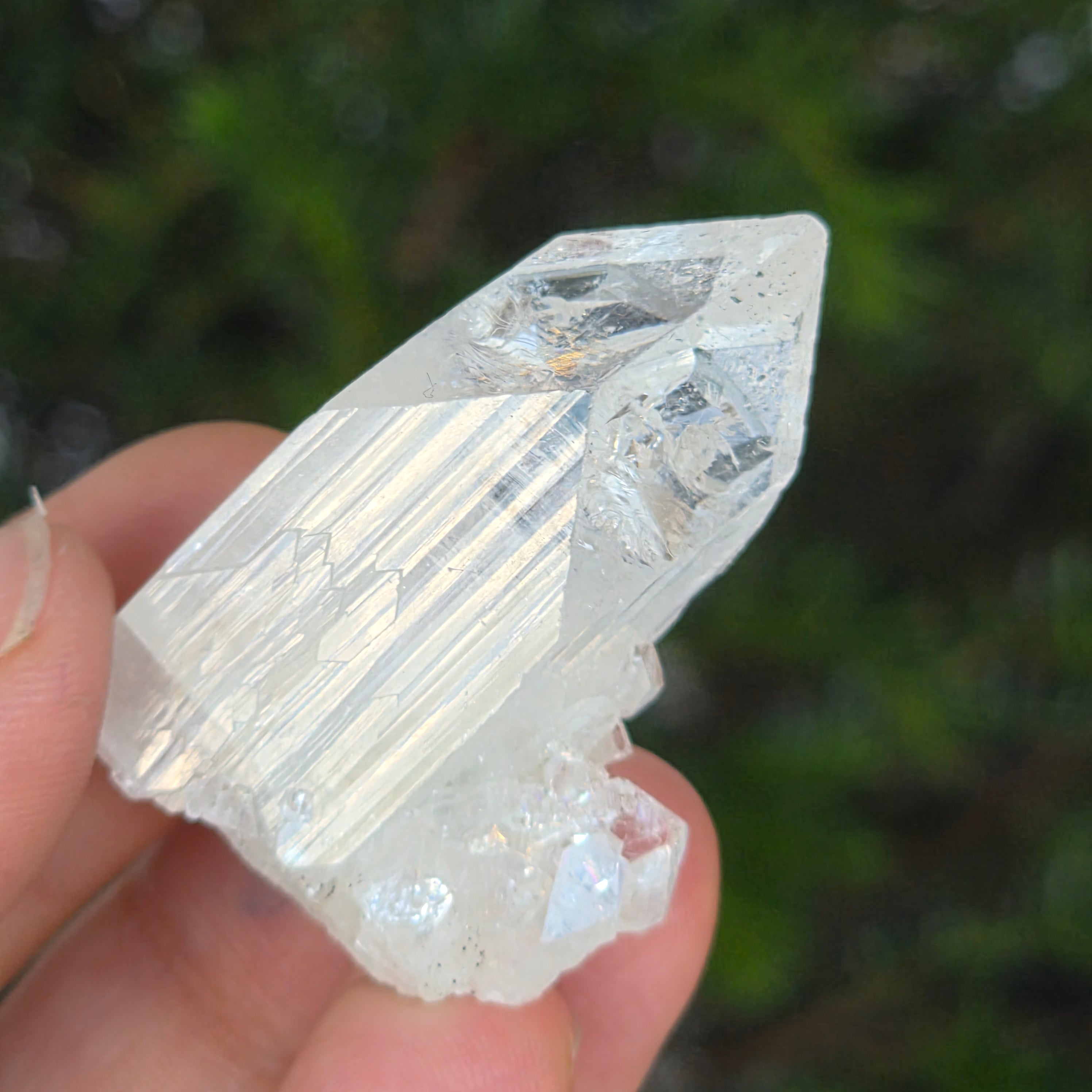 • Culoare: transparent-alb, cu reflexii lucioase și ușoare irizații verzi