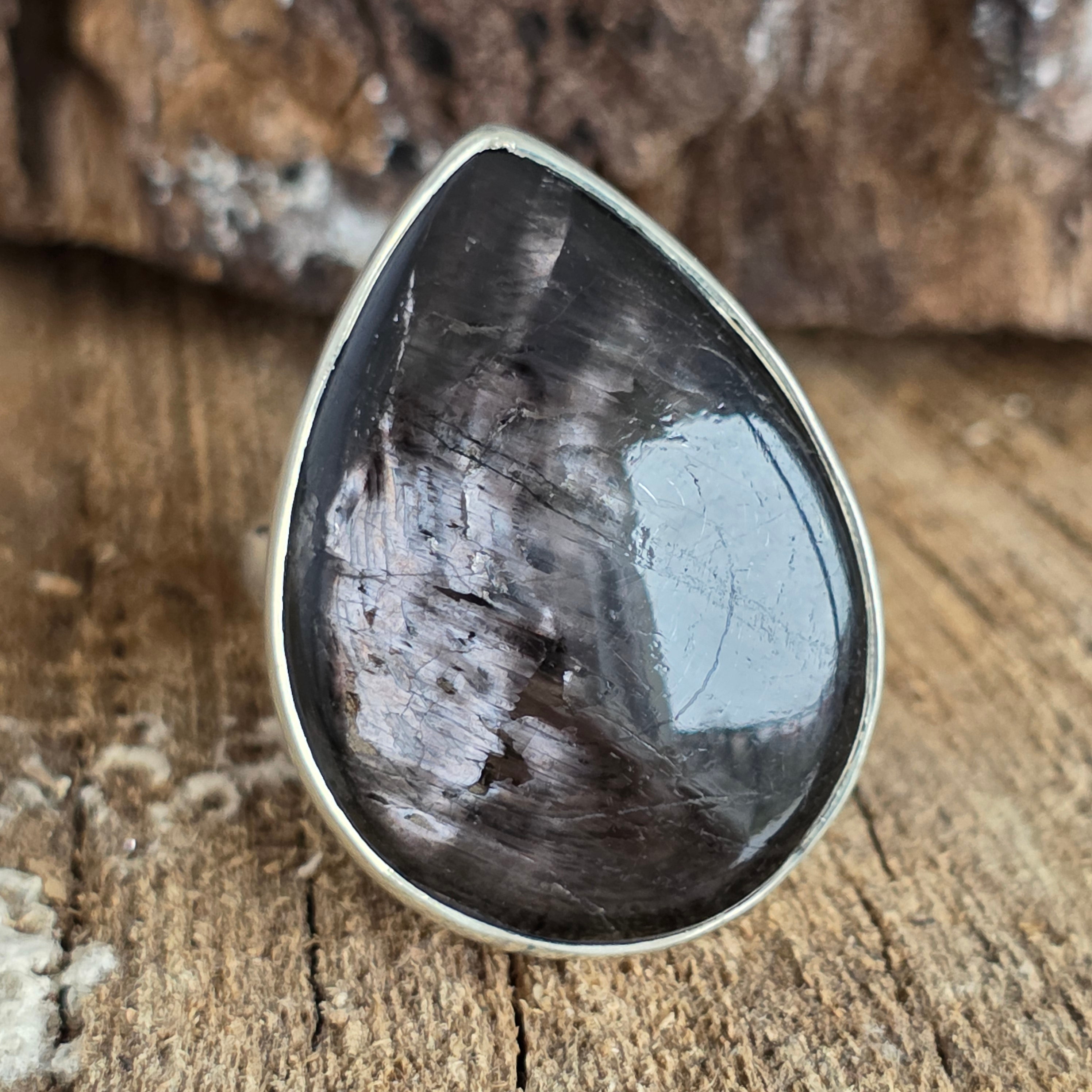 Επιλέξτε αυτό το φυσικό δαχτυλίδι υπερσθένης για να έχετε μαζί σας ένα σύμβολο διαύγειας και εσωτερικής δύναμης – ένα μοναδικό κόσμημα, δημιουργημένο από τη φύση και φινιρισμένο σε ασήμι.