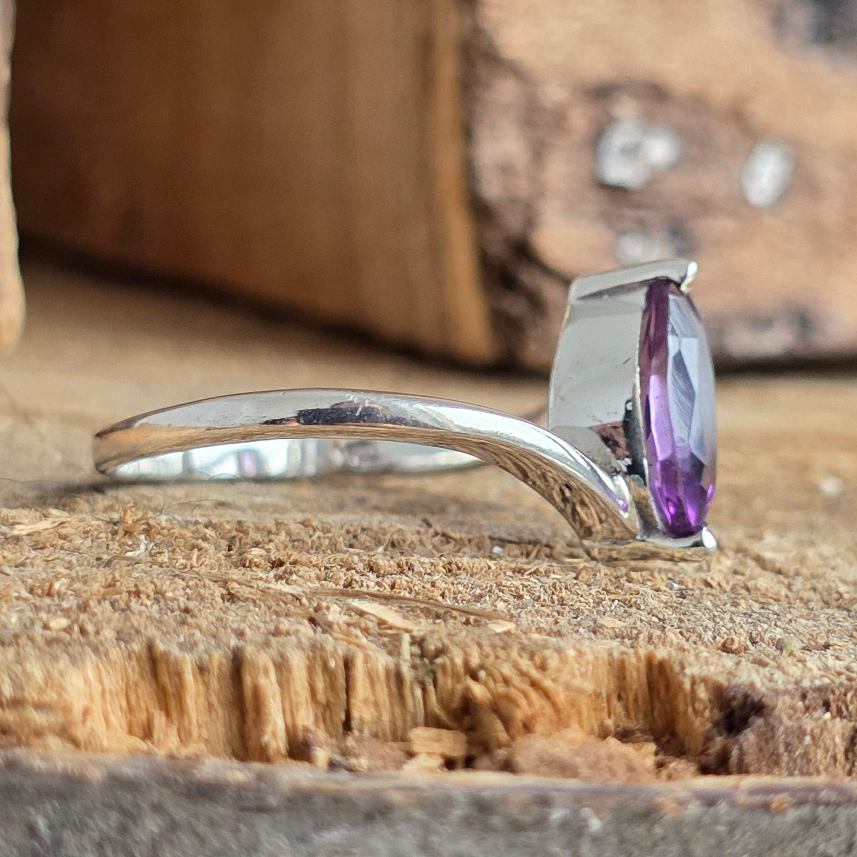 Simbol al clarității și al înțelepciunii interioare, ametistul strălucește în această montură rafinată din argint 925, sculptată pentru a sublinia puritatea formei.