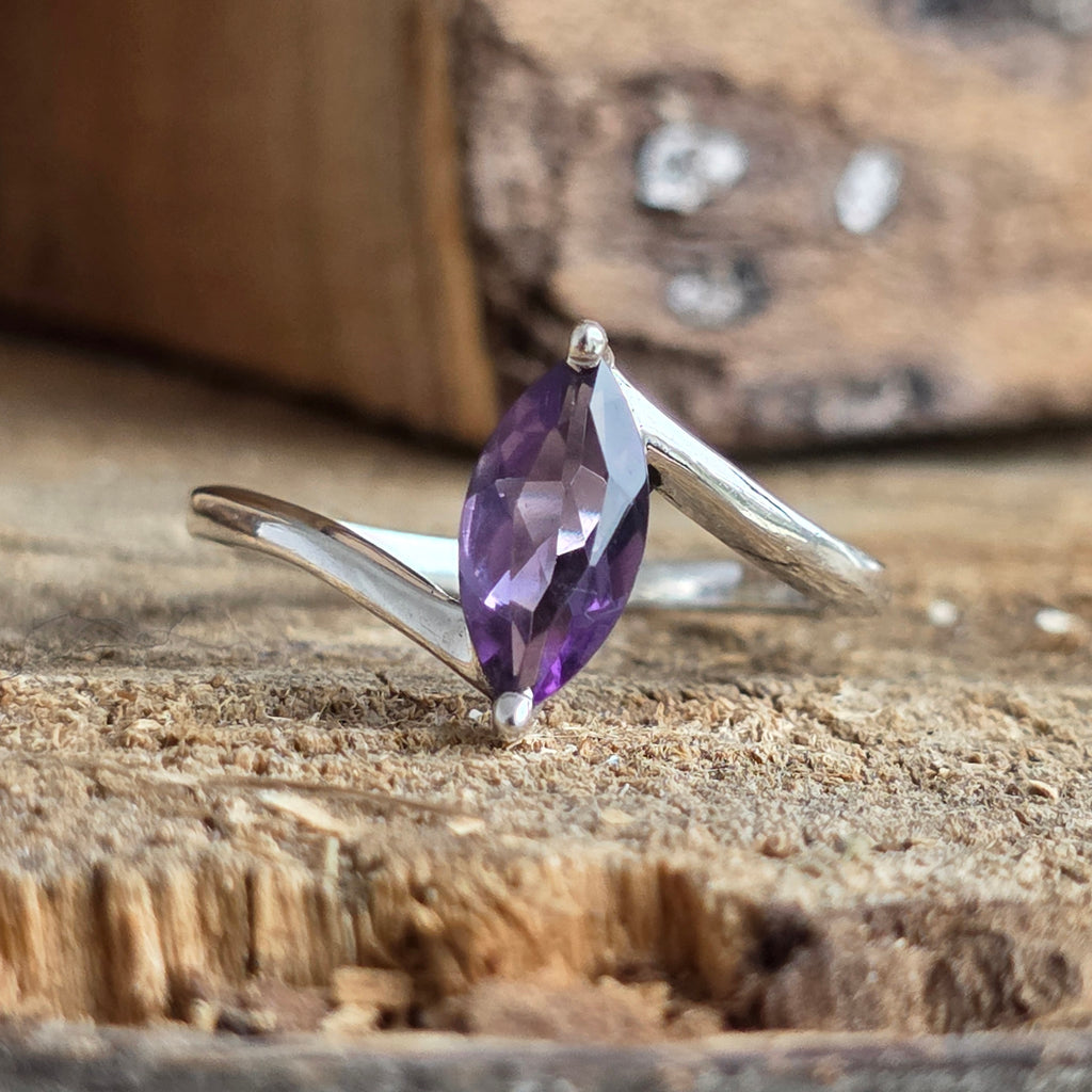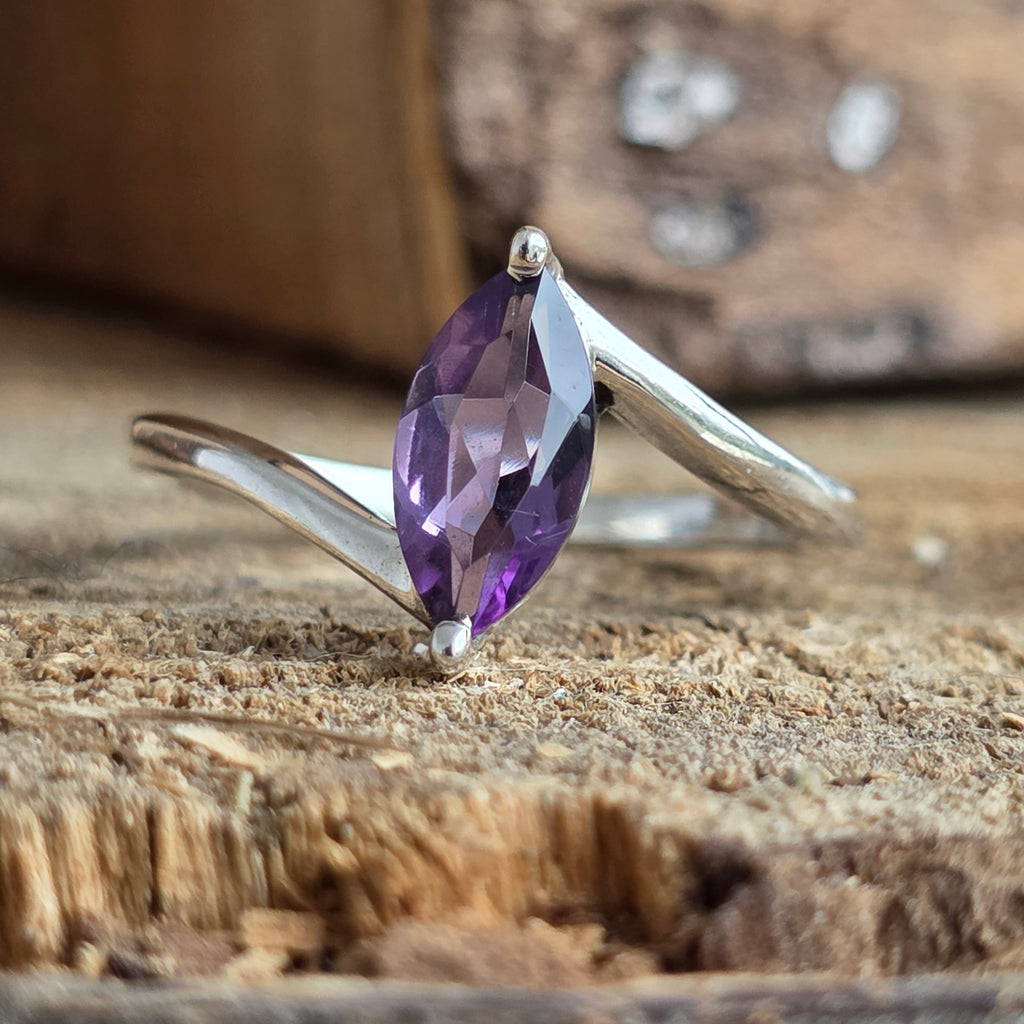 • Piatră: ametist natural, tăietură marquise, fațetat