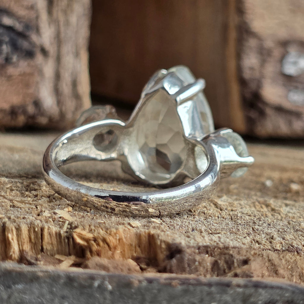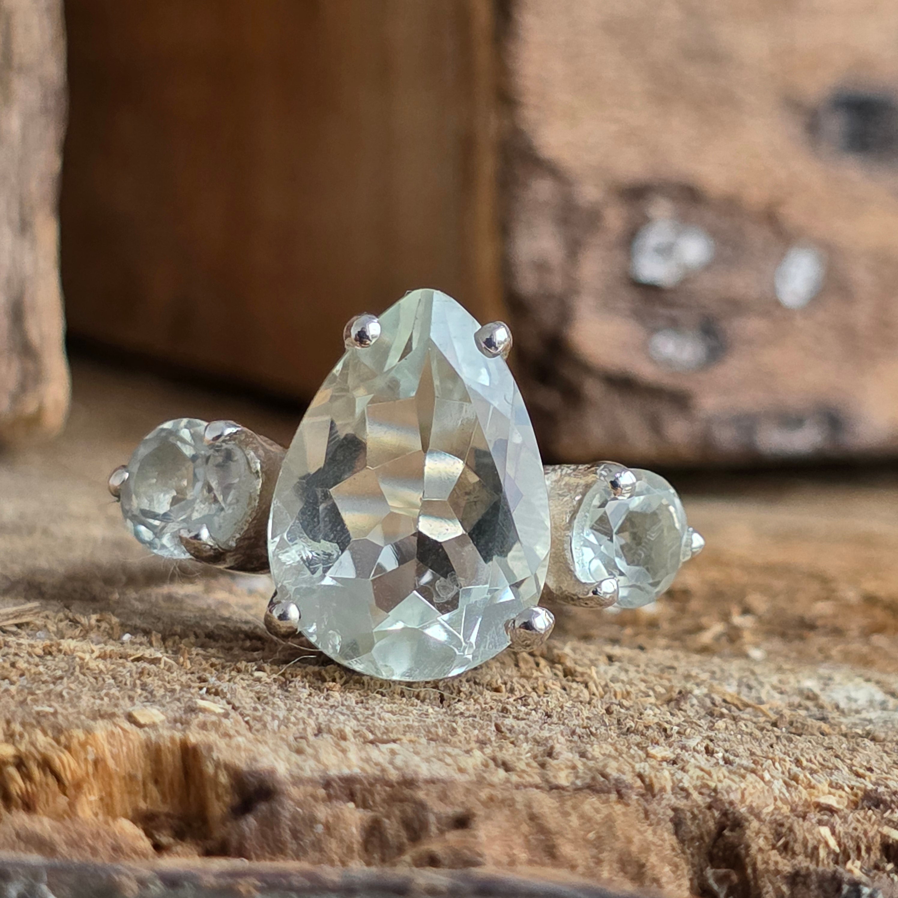 Un inel care respiră echilibru și prospețime — Green Amethyst, sau prasiolitul, aduce o notă subtilă de lumină și calm interior. În montura elegantă din argint 925, piatra își dezvăluie nuanțele pale de verde cristal, amintind de roua dimineții și de claritatea unei minți liniștite.