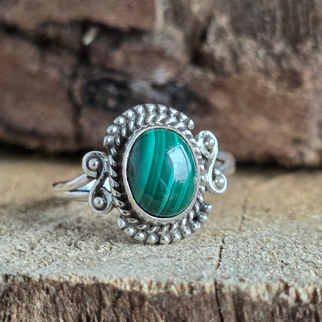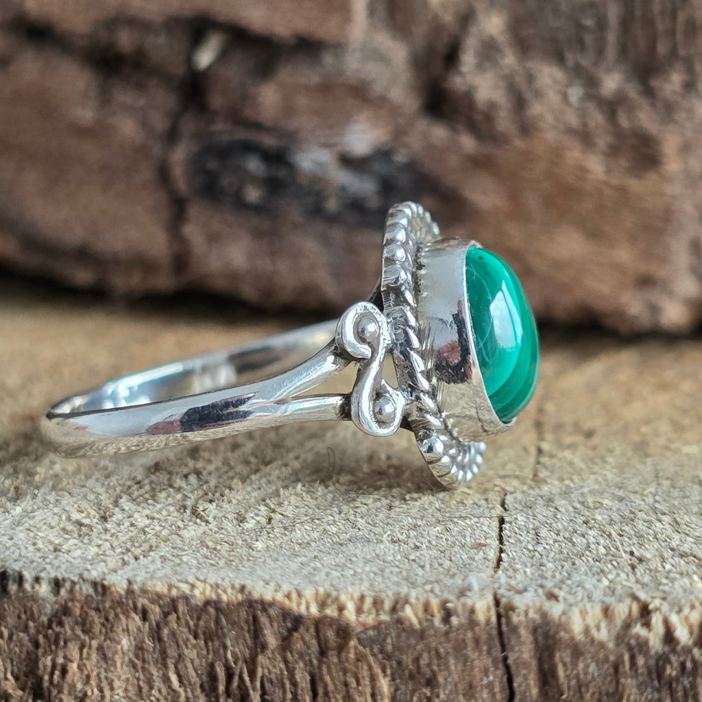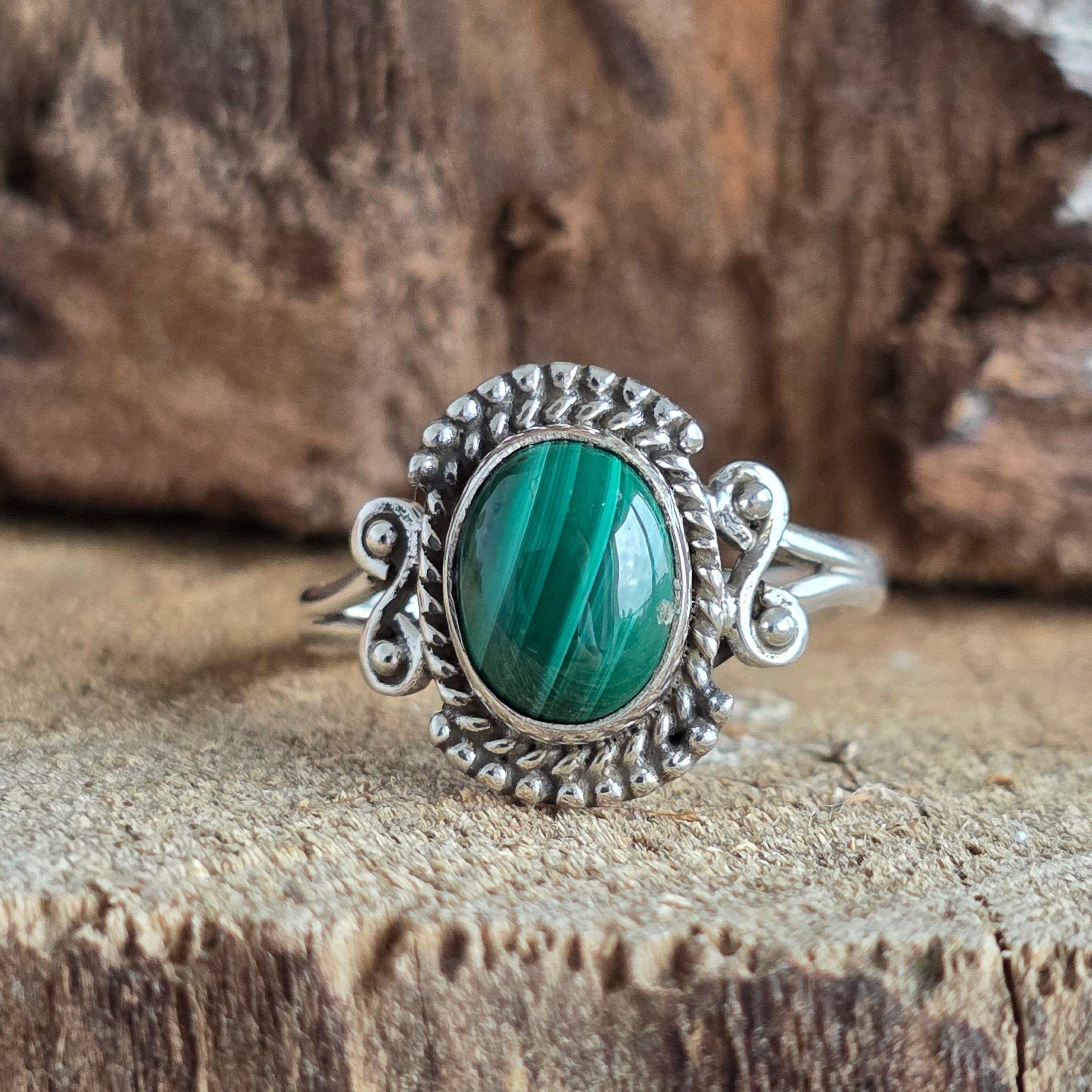 • Piatra: malachit natural, tăietură ovală (oval shape)