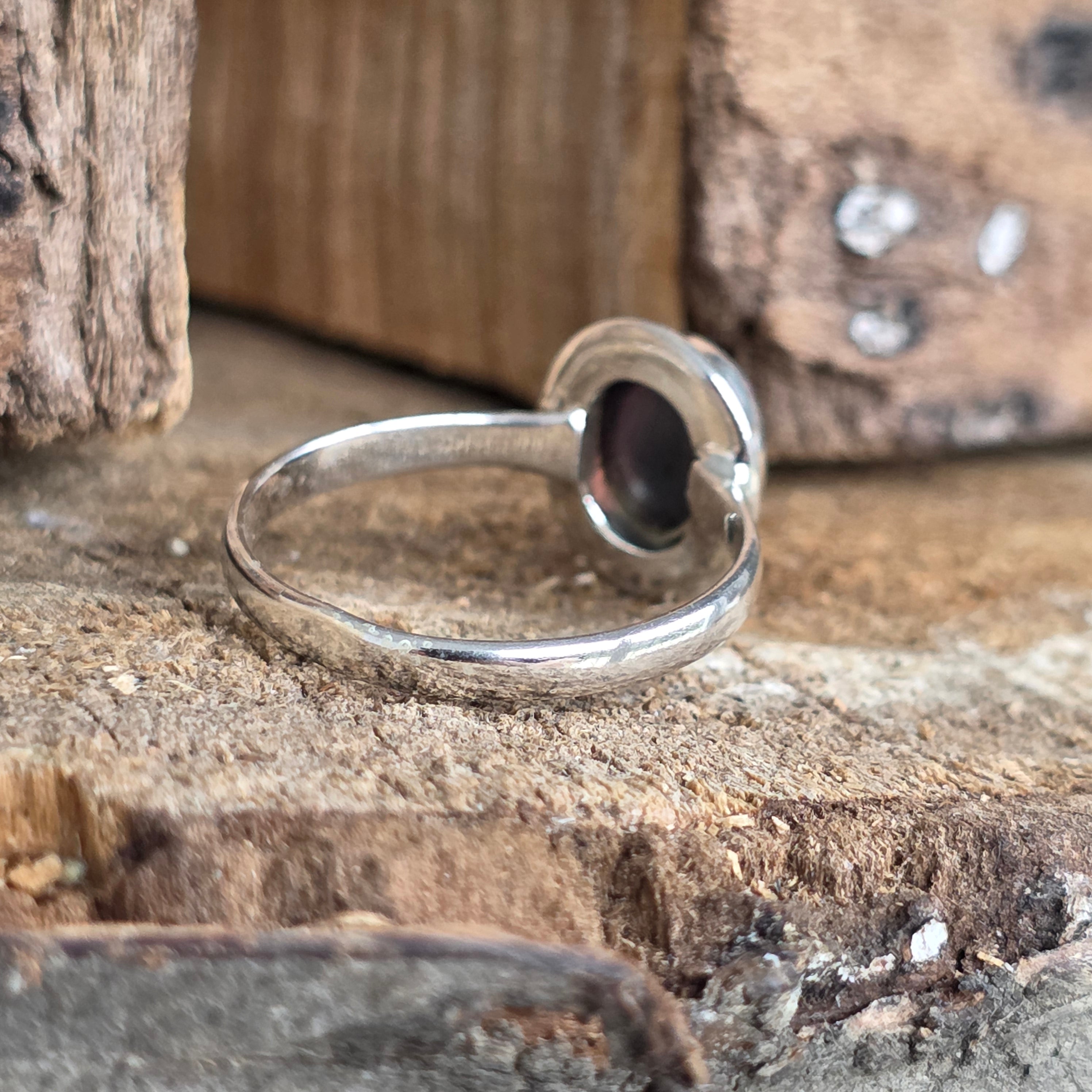 Un inel elegant și rafinat, realizat din argint 925, cu o piatră naturală de opal etiopian, cunoscută pentru reflexele sale irizante în nuanțe de verde, roșu și albastru. Designul minimalist plain wire setting permite pietrei să fie în centrul atenției, captând lumina din orice unghi.